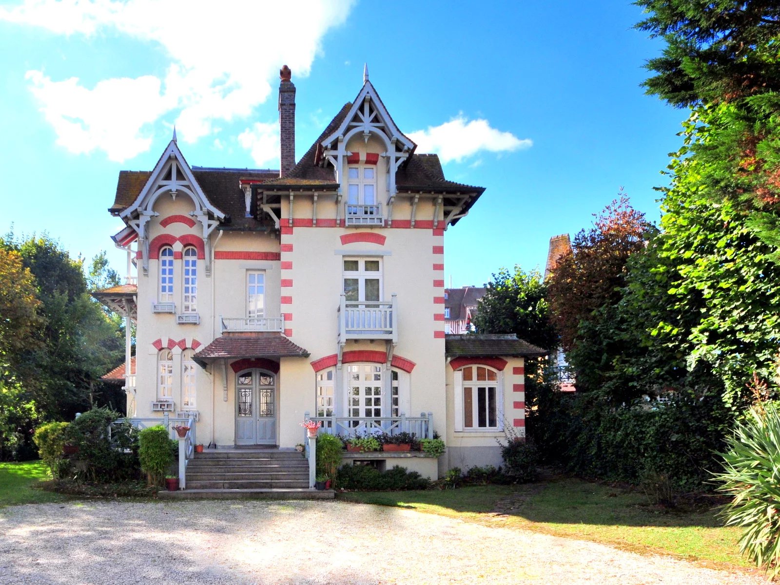 In Normandy, in Deauville, in the heart of the golden triangle and in a particularly sought-after area close to the sea and shops, exceptional Anglo-Norman-style seaside villa in excellent condition with large garden and terraces.