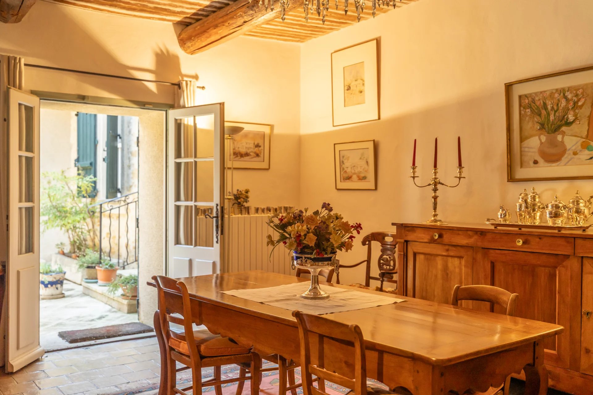 The property captivates from the moment you arrive with its authenticity, period materials, and atmosphere. Built around a superb old patio, the building exudes history and the Provençal art of living.