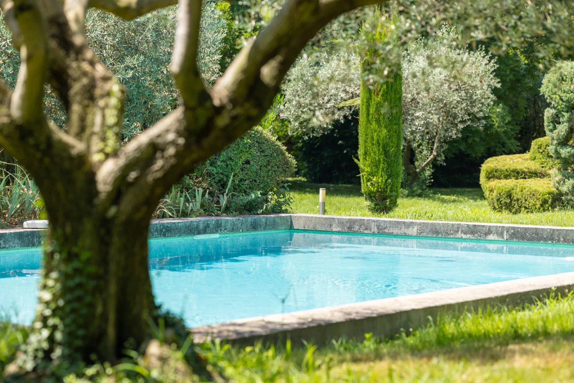 Outside, the setting is enchanting. The vast green garden houses a heated swimming pool, perfectly integrated into the landscape, to fully enjoy the mild climate of the Luberon, from spring to autumn.