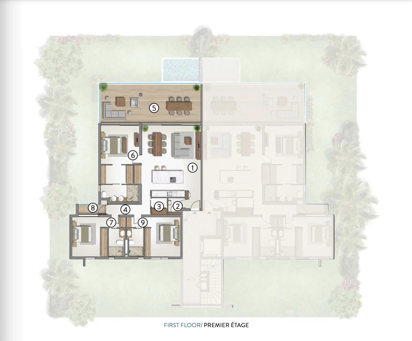 La Réserve Balaclava is a selection of 28 apartments and 8 full-floor penthouses, each with sea view. Spread across 8 buildings, the residential units harmoniously blend within the surrounding tropical flora. These are complemented by a large common swimming pool and superb lounging areas where family members, friends and residents can gather anytime. The common spaces, where no details have been left unthought of, also include a wellness centre, a restaurant and a private lounge on the beach.