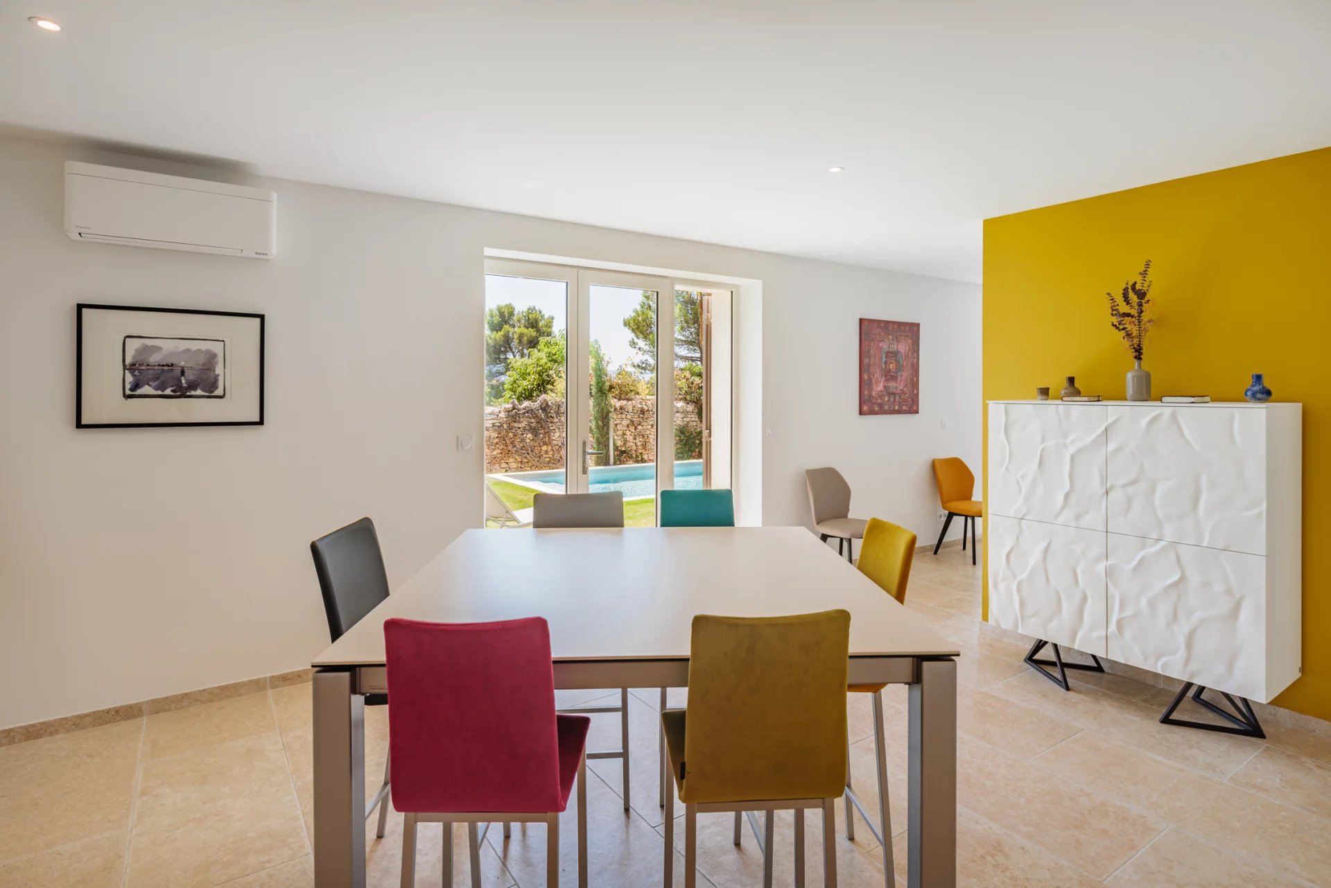 Close to the center of the village of Gordes at less than 15 minutes walking distance, beautiful typical Gorde's stone house with a panoramic view. Lovely 8 x 4 m swimming pool with grassed area and beautiful pool house awaits you for long moments of idleness.
