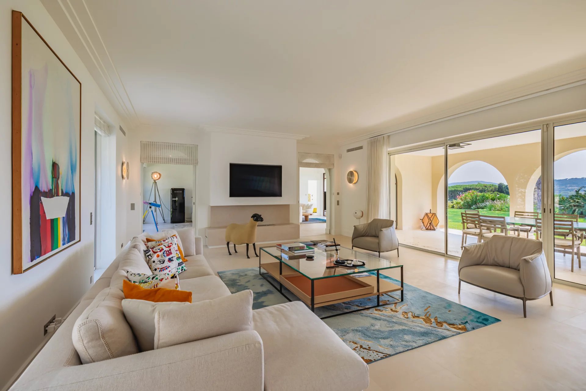 Nestled in the heart of the prestigious and secure domain of Les Parcs de Saint-Tropez, this contemporary property captivates with its elegance and idyllic setting. Facing the setting sun and offering a panoramic view of the Canoubiers Bay, it sits on a beautifully landscaped flat plot of approximately 5,000 m² — a true haven of greenery.