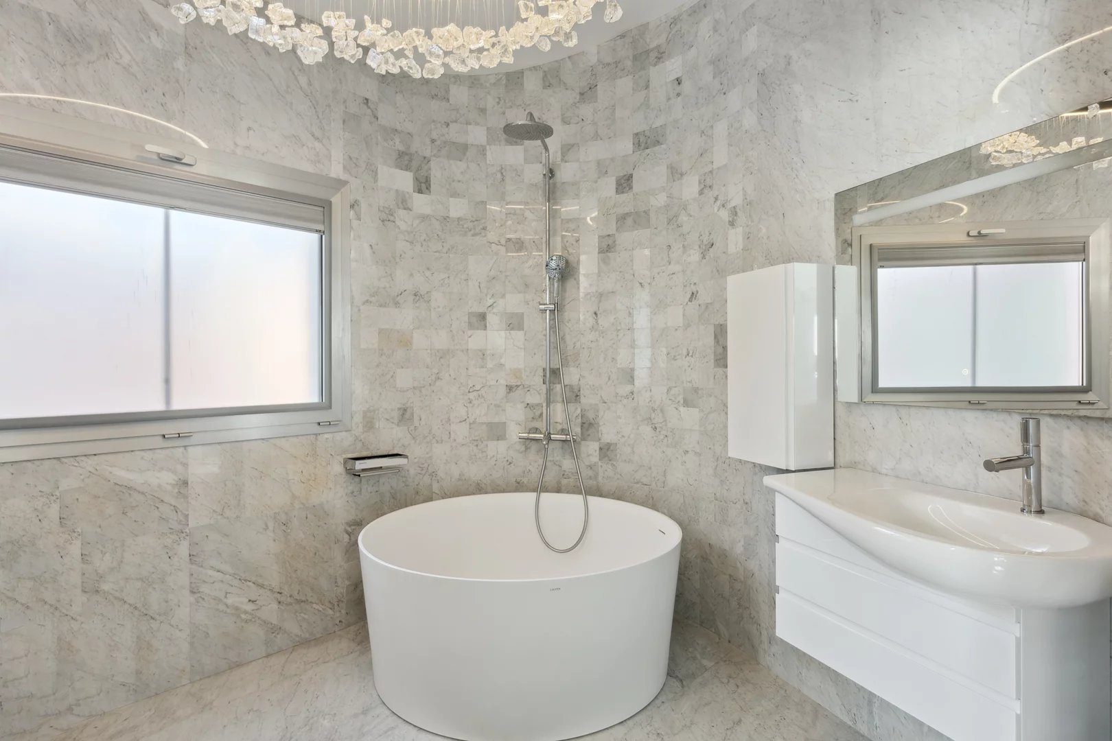 Set on a flat plot of approximately 2,000 sqm, the property enjoys a heated swimming pool (17m x 7m), perfect for relaxing while taking in the breathtaking sea views. With its south-facing exposure, the villa benefits from optimal sunlight all year round, enhancing its exceptional living environment.