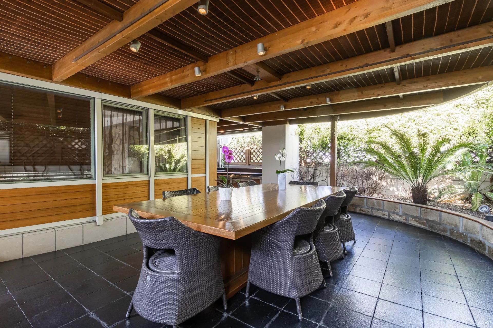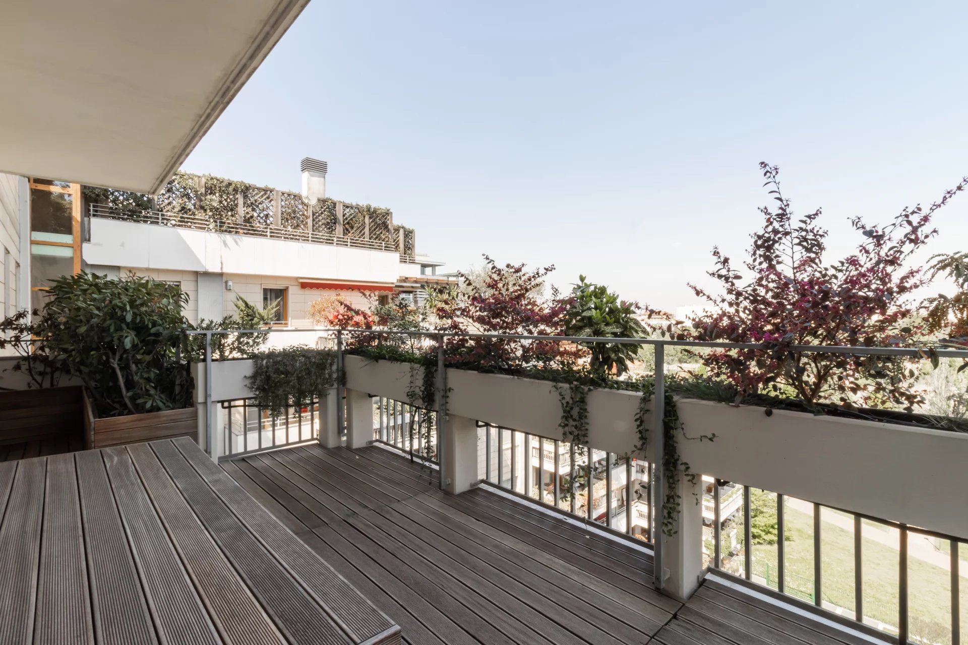 On the ninth floor, which is accessible through a beautiful internal staircase, we find a 90m2 reception hall, a dining area with a table for ten people, and a huge terrace with a swimming pool and barbecue area.
