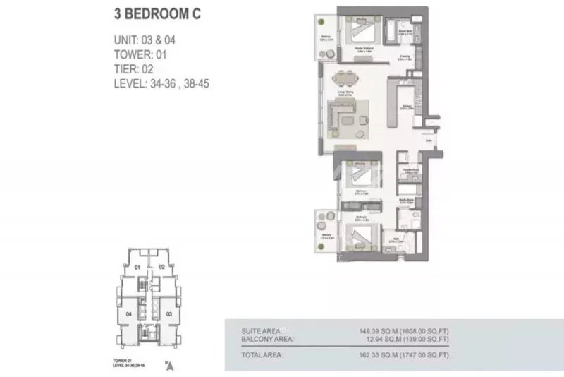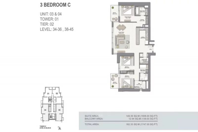 We present this amazing full sea view high floor 3 bedrooms + Maid's room luxurious apartment in 5242 Tower - for sale.