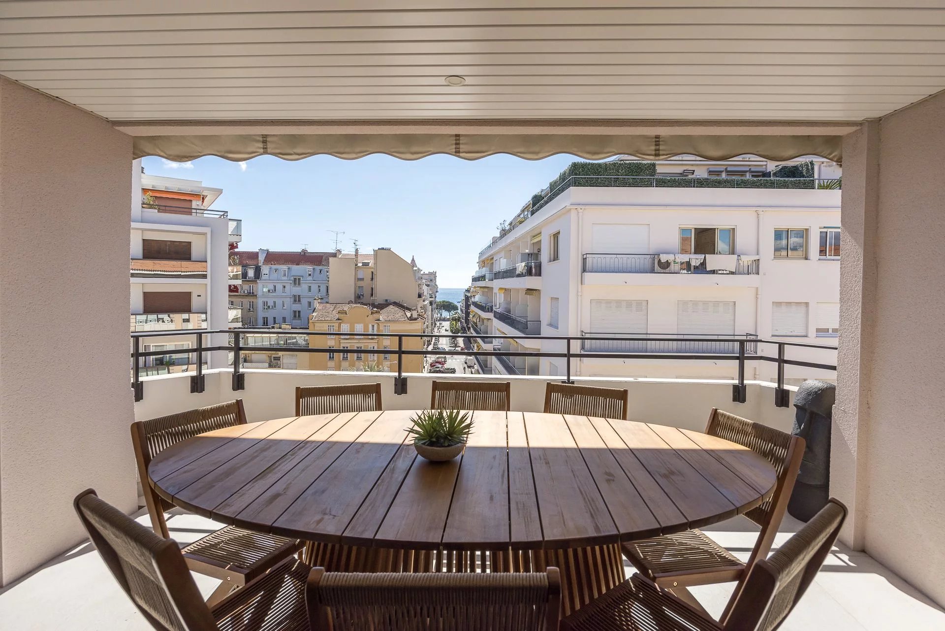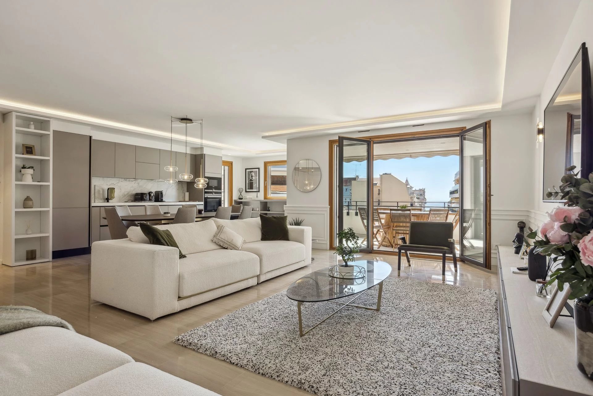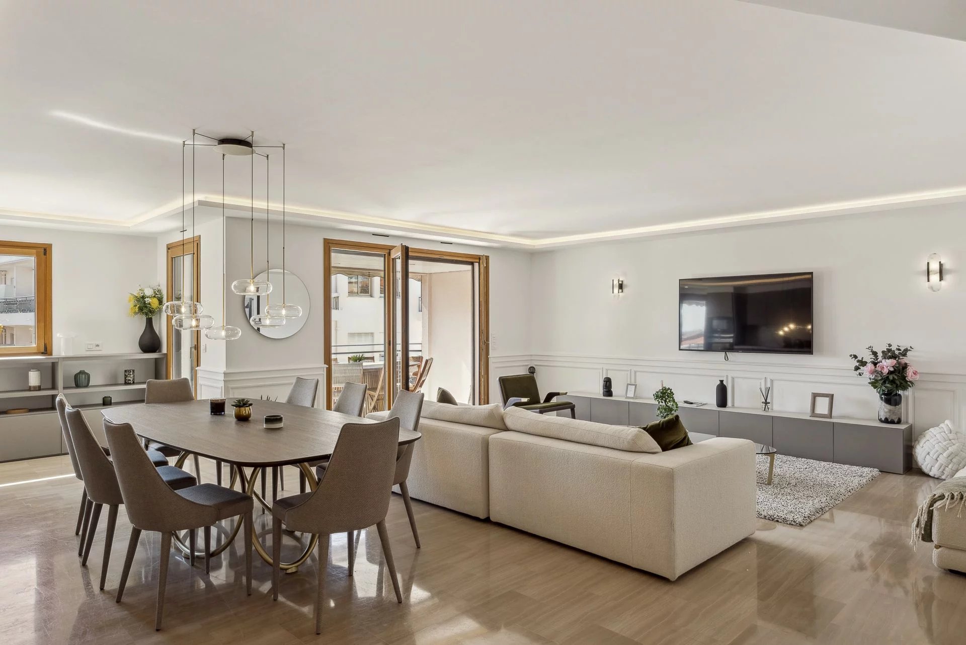 Ideally located near the Croisette, very beautiful apartment of approximately 134m², comprising: a spacious entrance, living room with fully equipped kitchen, dining room, 4 en-suite bedrooms, two of which are duplex.