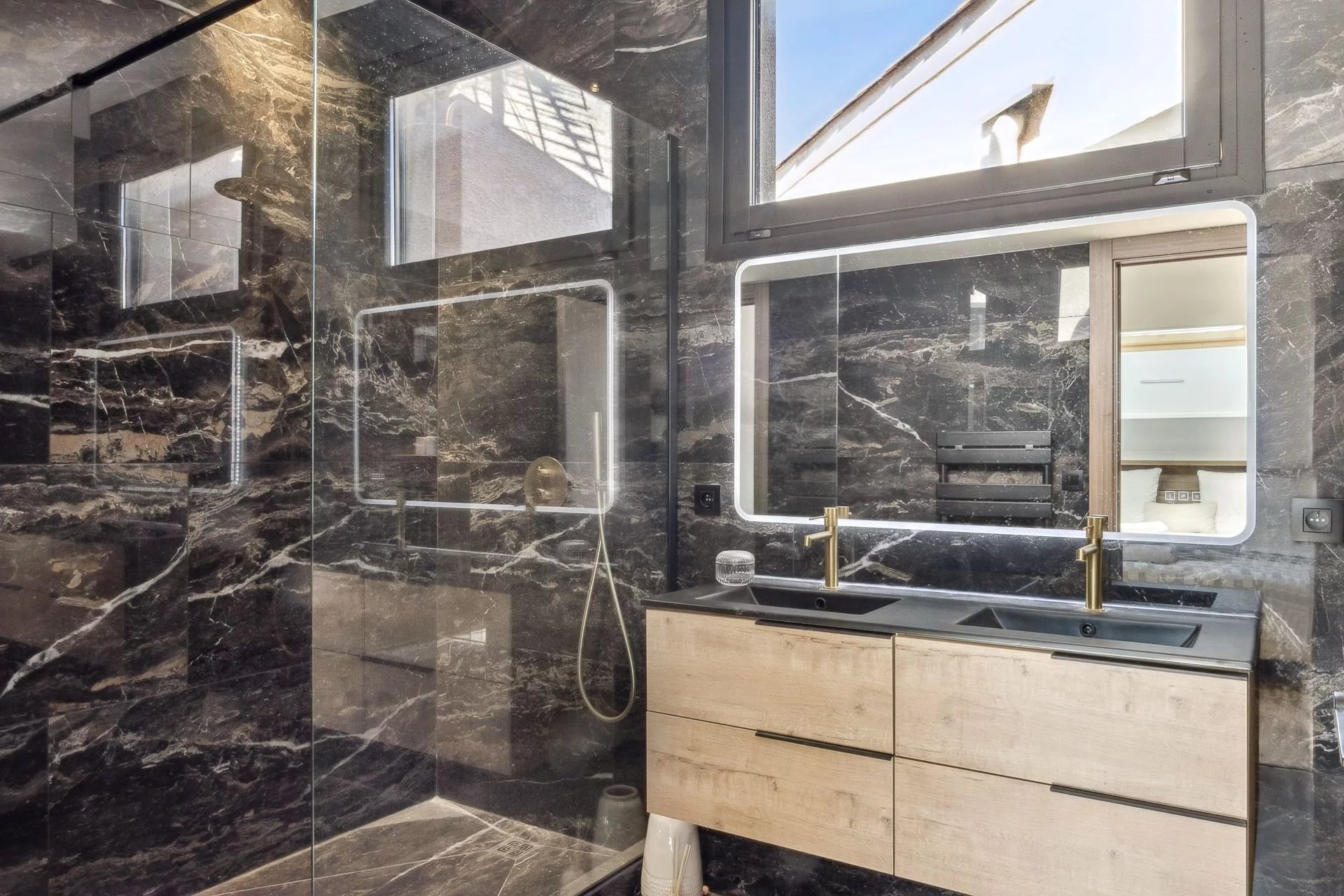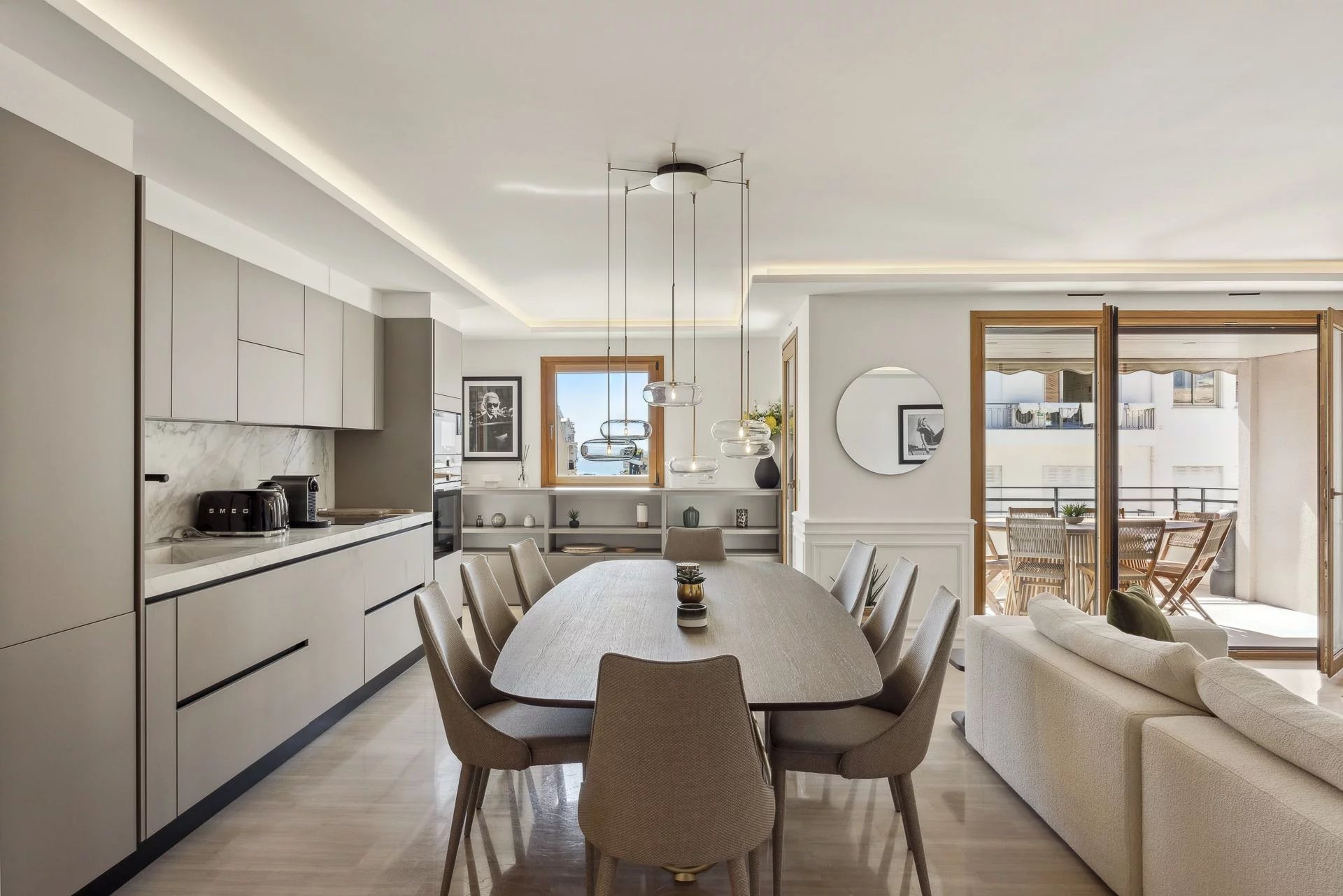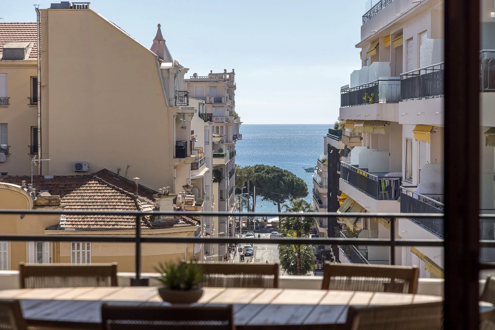 Ideally located near the Croisette, very beautiful apartment of approximately 134m², comprising: a spacious entrance, living room with fully equipped kitchen, dining room, 4 en-suite bedrooms, two of which are duplex.