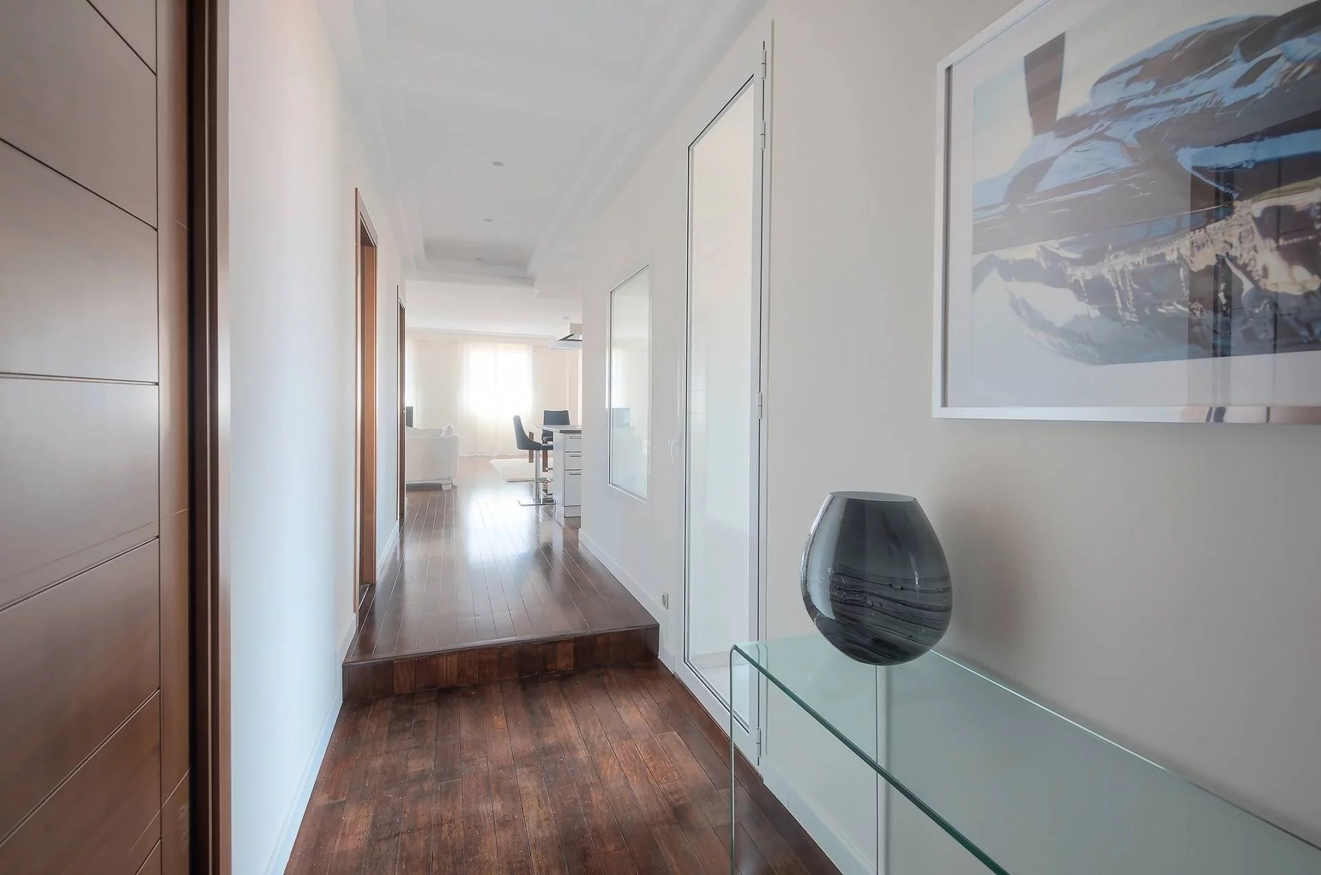 Magnificent apartment in a luxury bourgeois style building with high quality fixtures and fittings of approx. 130 sqm. Entirely renovated, quiet, open view over the sea, high ceilings, equipped kitchen, living room with sea view, master bedroom with bathroom and dressing room, 2 bedrooms with shower room and a terrace. Possibility of a garage.