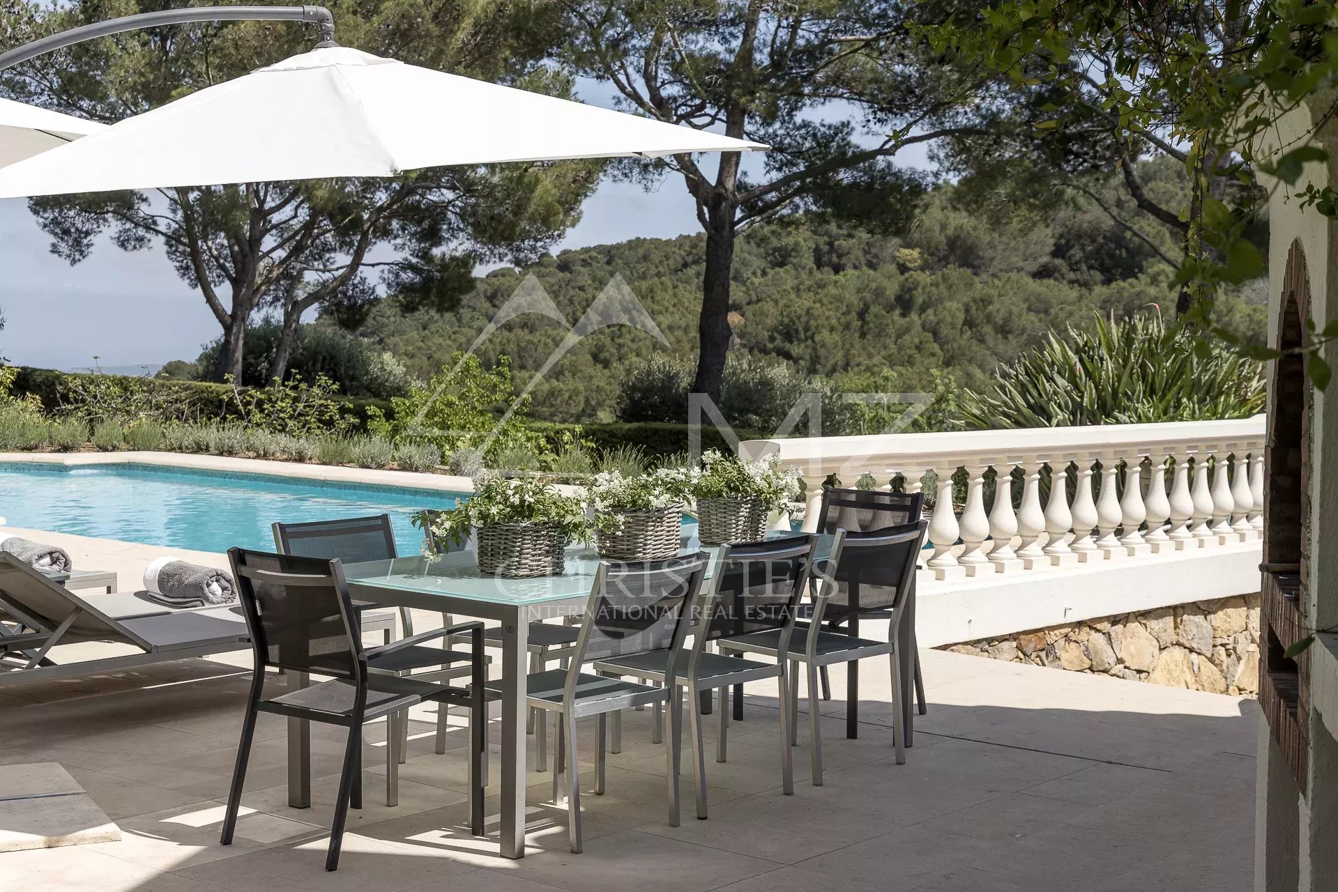 Splendid 300 sq. m villa with a spectacular sea view, 4 bedrooms with individual bathrooms, a vast living room and a fitted kitchen. A heated swimming pool, a garage for two cars, a nice garden.