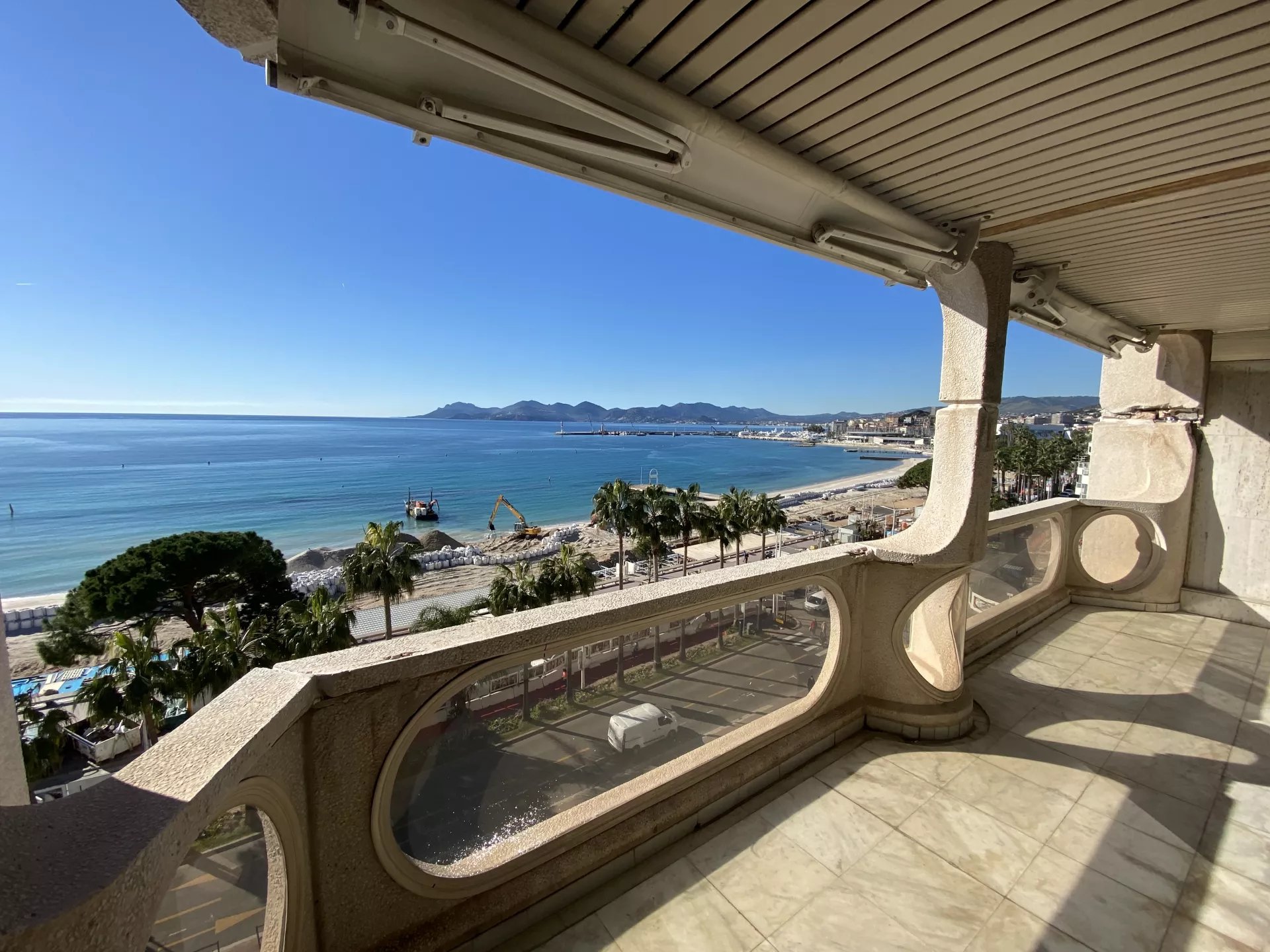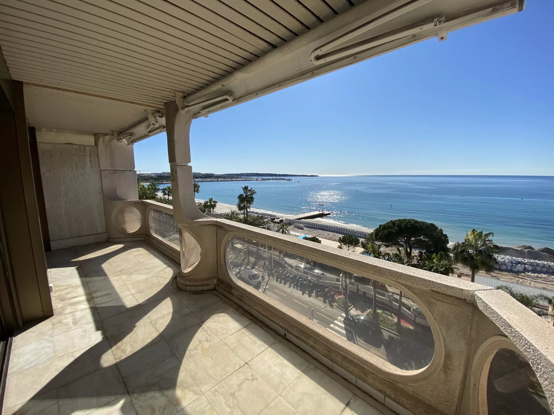 Ideally situated on the Croisette, this apartment of approximately 100m² with a sea view and large terrace includes: a living room with terrace access, a fully equiped kitchen, two bedrooms with shower room. Parking space. Luxury services.