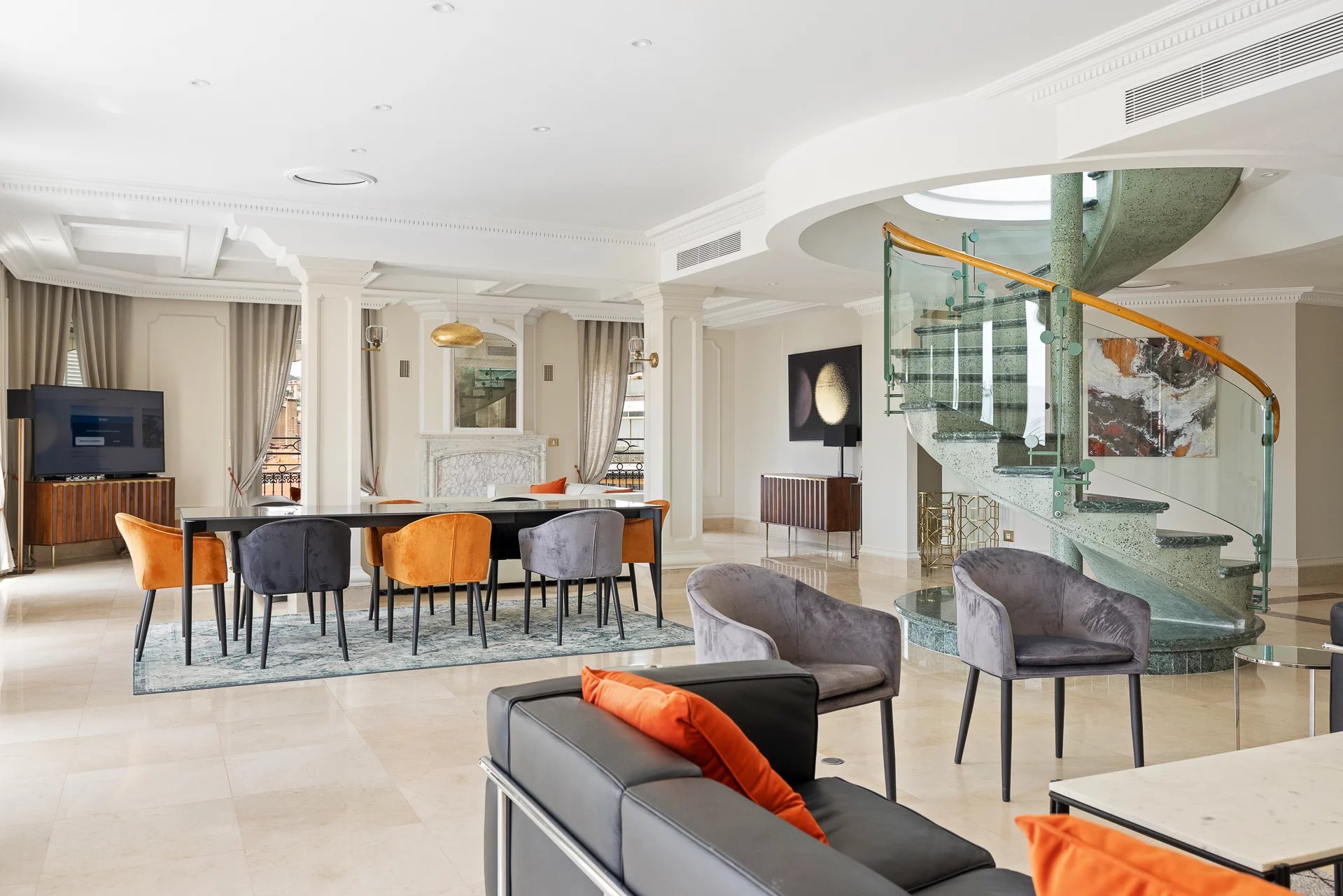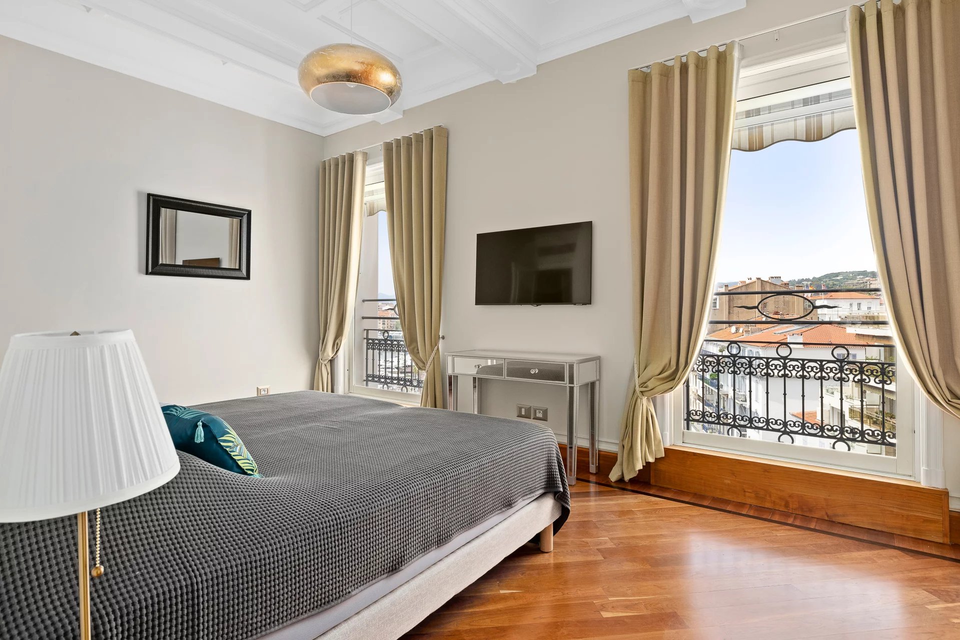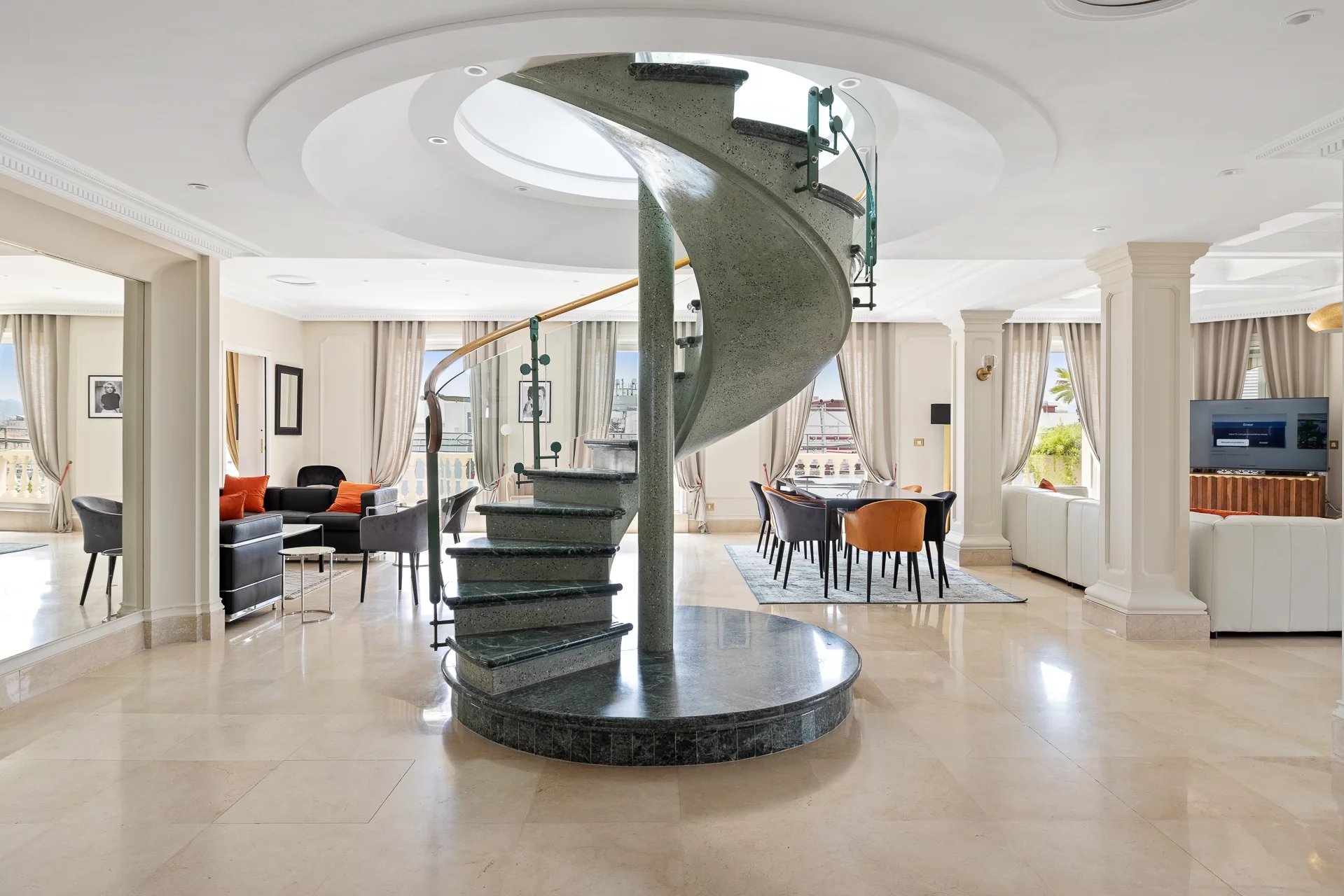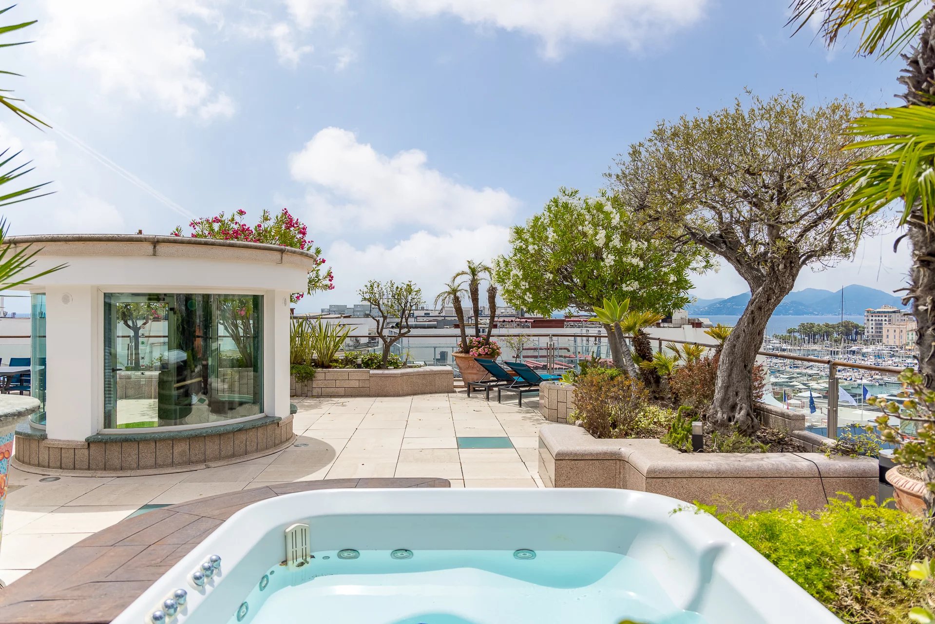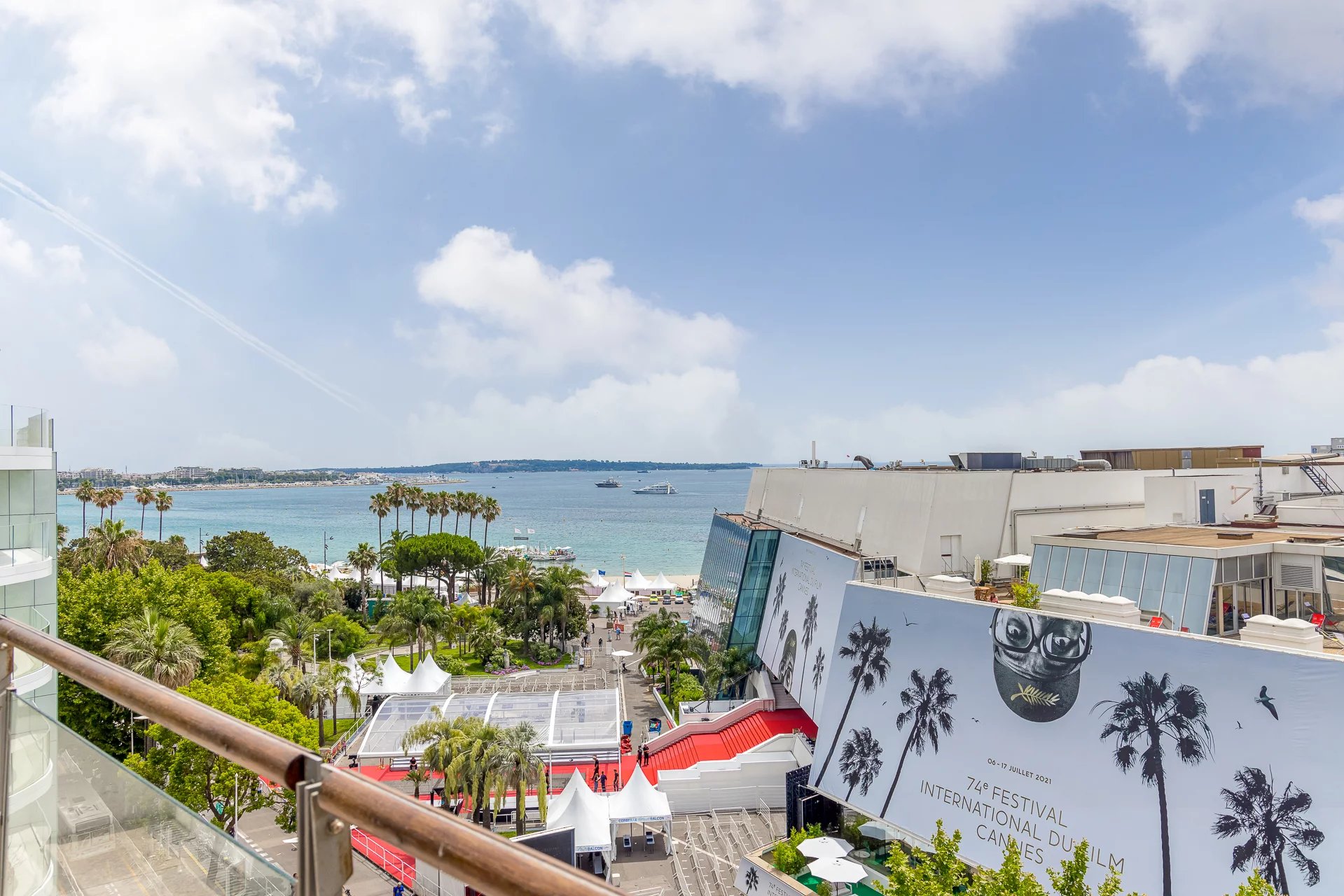 Penthouse ideally situated on the Croisette, in front of the Palais des Festivals and benefiting from a 183m² terrace and roof garden with a panoramic sea view. This exceptional property is also composed of a spacious living room, a kitchen, three bedrooms with bathrooms and a bedroom with shower room.