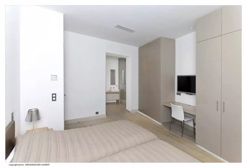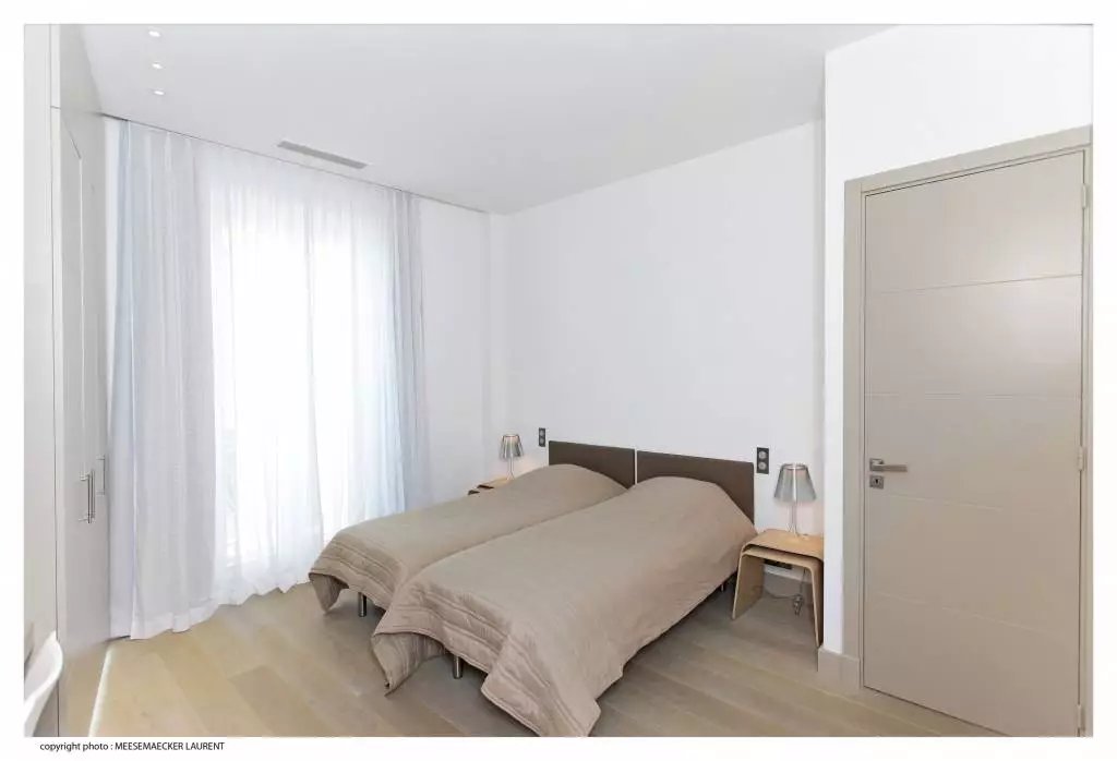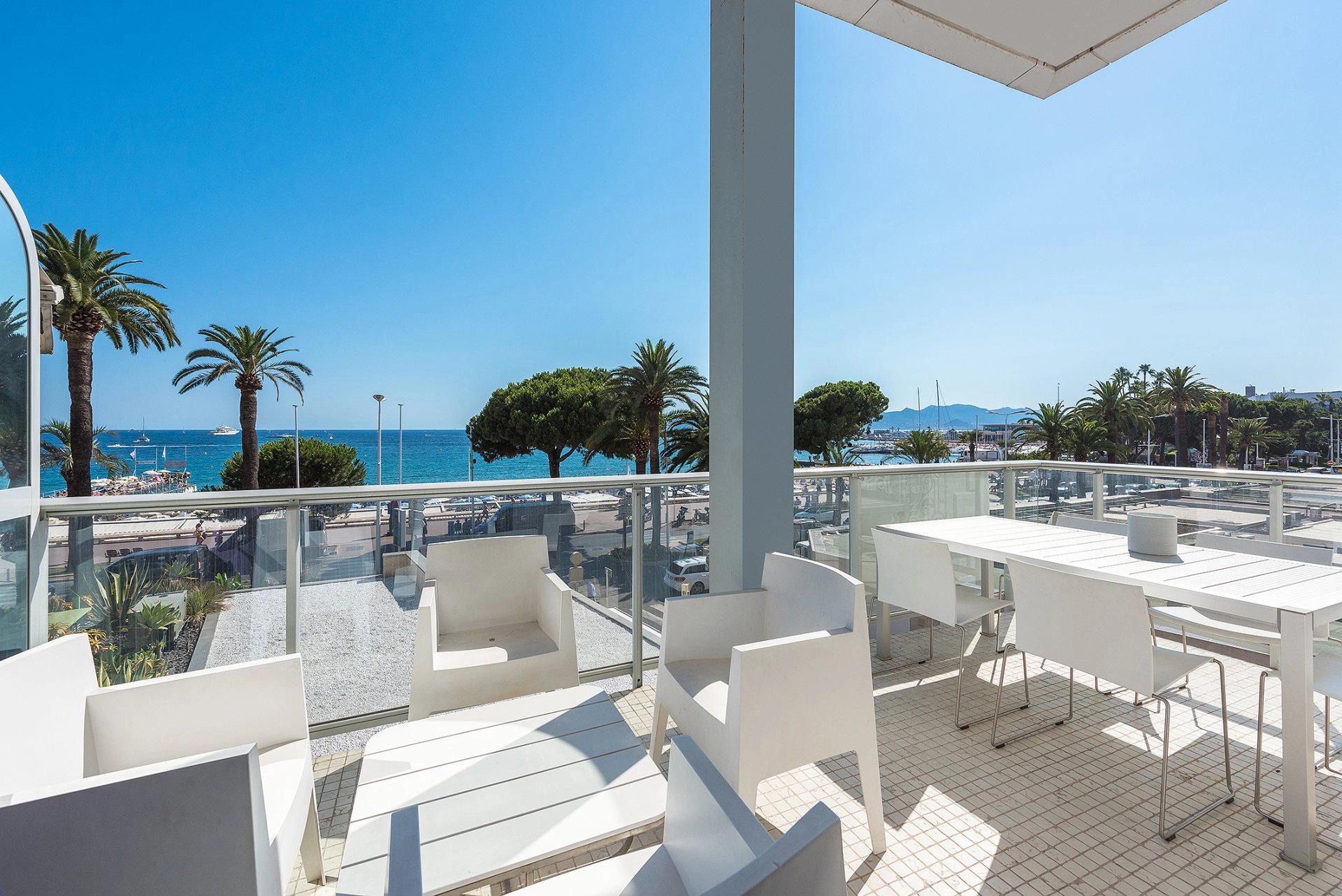 Luxury apartment perfectly located on the Croisette and 2 min away from the Festival Palace with a panoramic view over the Bay of Cannes. It has been fully refurbished with high quality materials. The apartment is located on the 1st floor, offers an entrance, one living room with fitted kitchen and dining room, 2 master bedrooms with double beds (possibility 2 single beds) each with a shower and a dressing room, a study with a sofa bed, a guest toilet and a terrace with panoramic sea view. Declaration N° : 06029001808SB