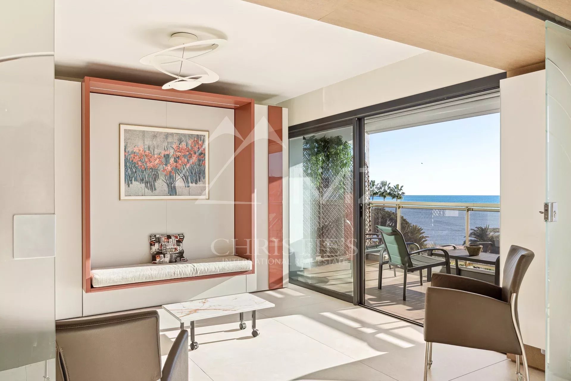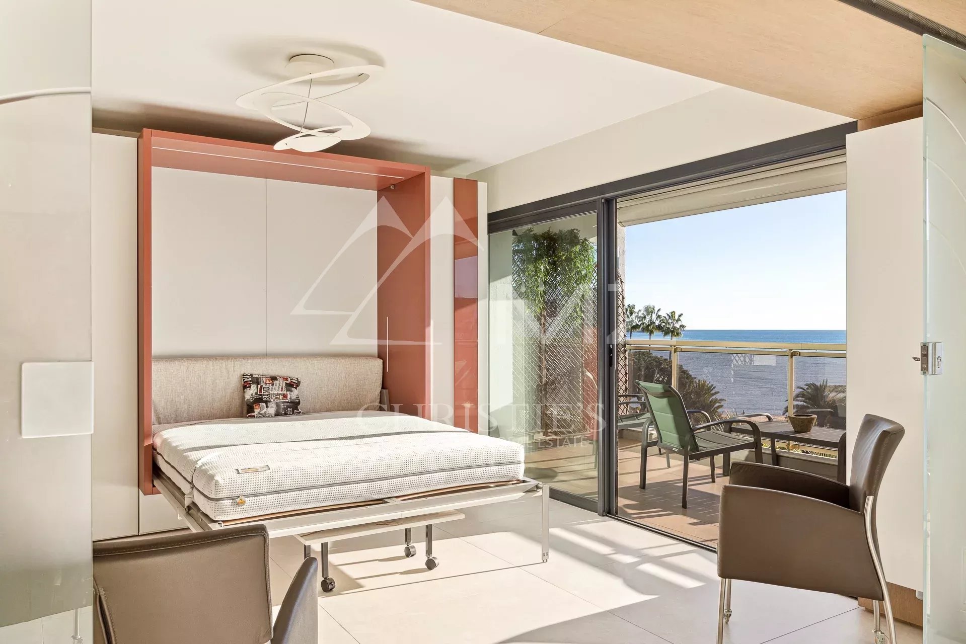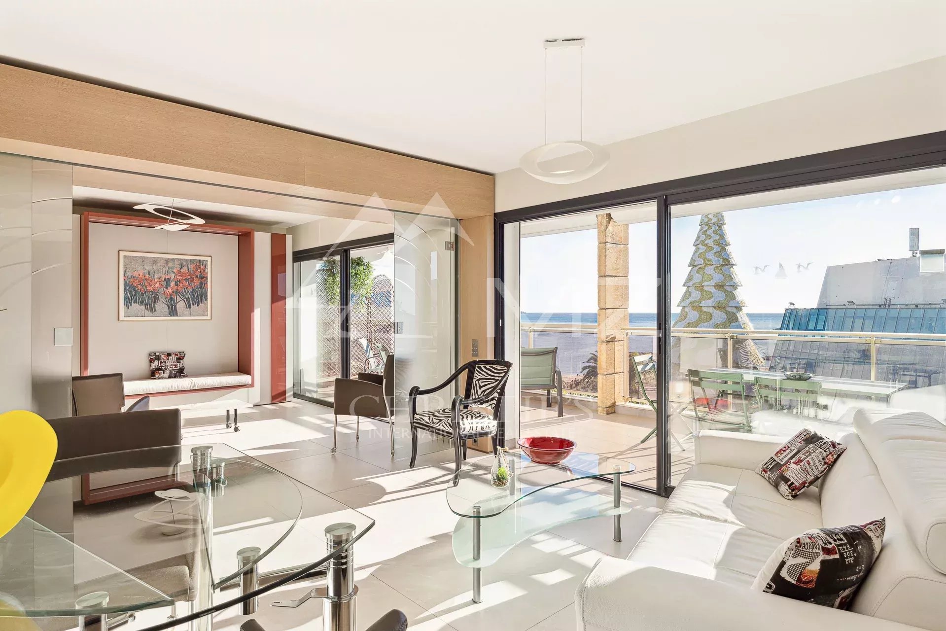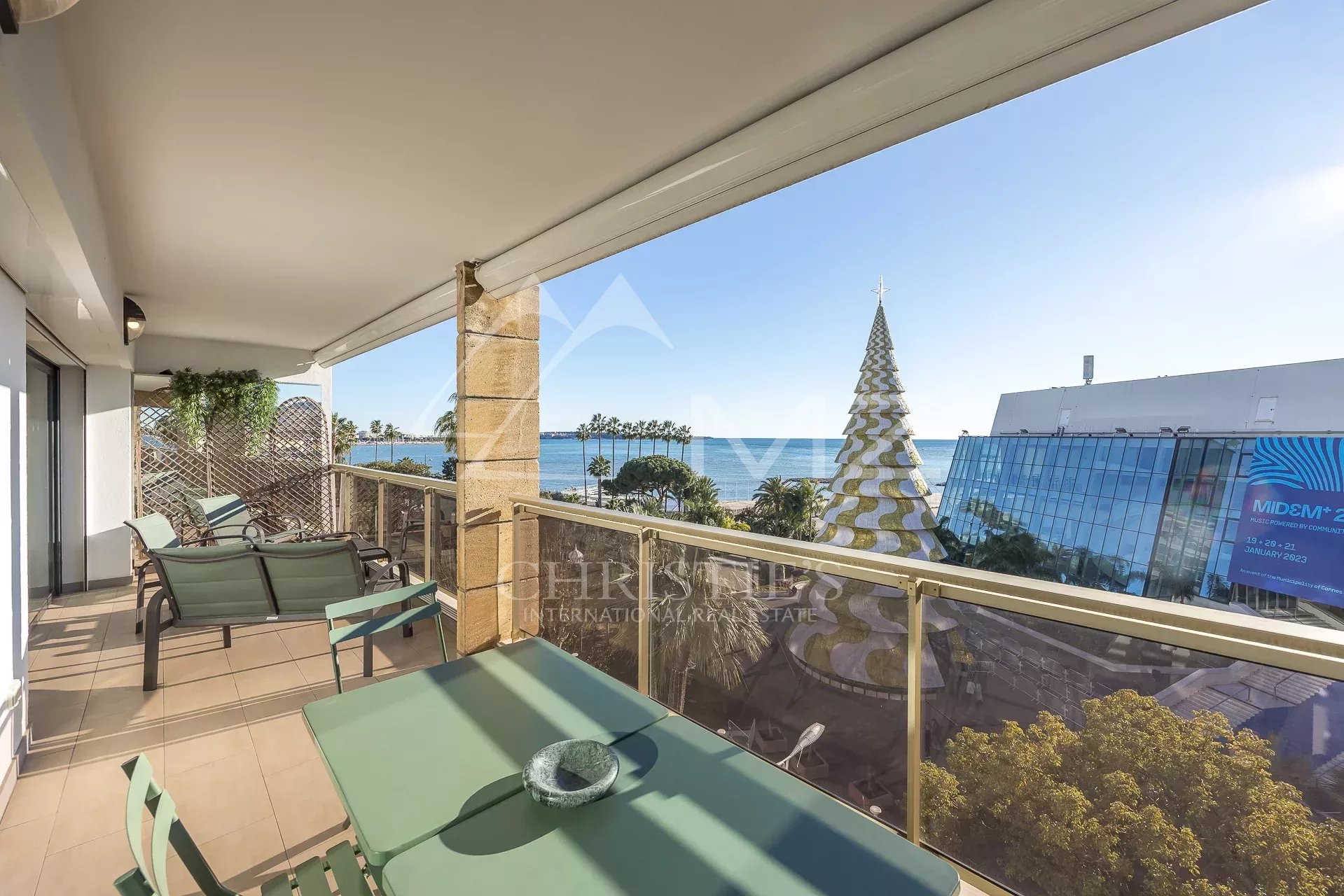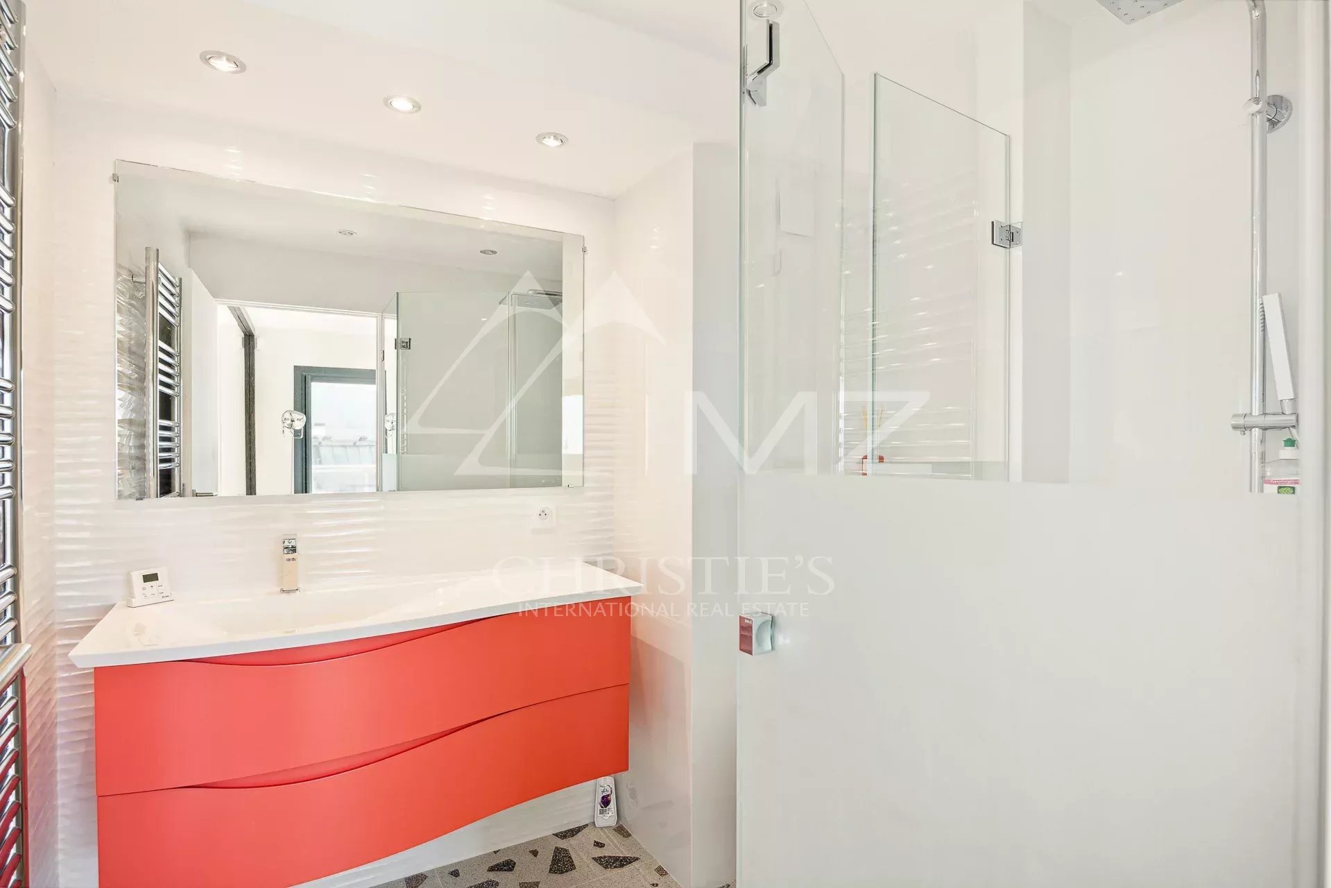 On the most beautiful street in Cannes, apartment of around 72 m2, comprising: an open fitted kitchen, a living room, lounge/, a bedroom, a shower room, a master bedroom en suite with a shower room. Laundry room. Terrace facing the Festival Palace. A box.