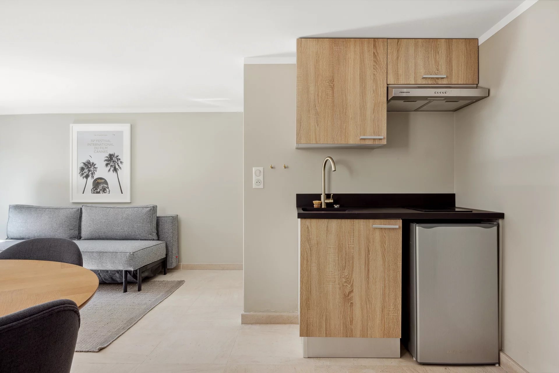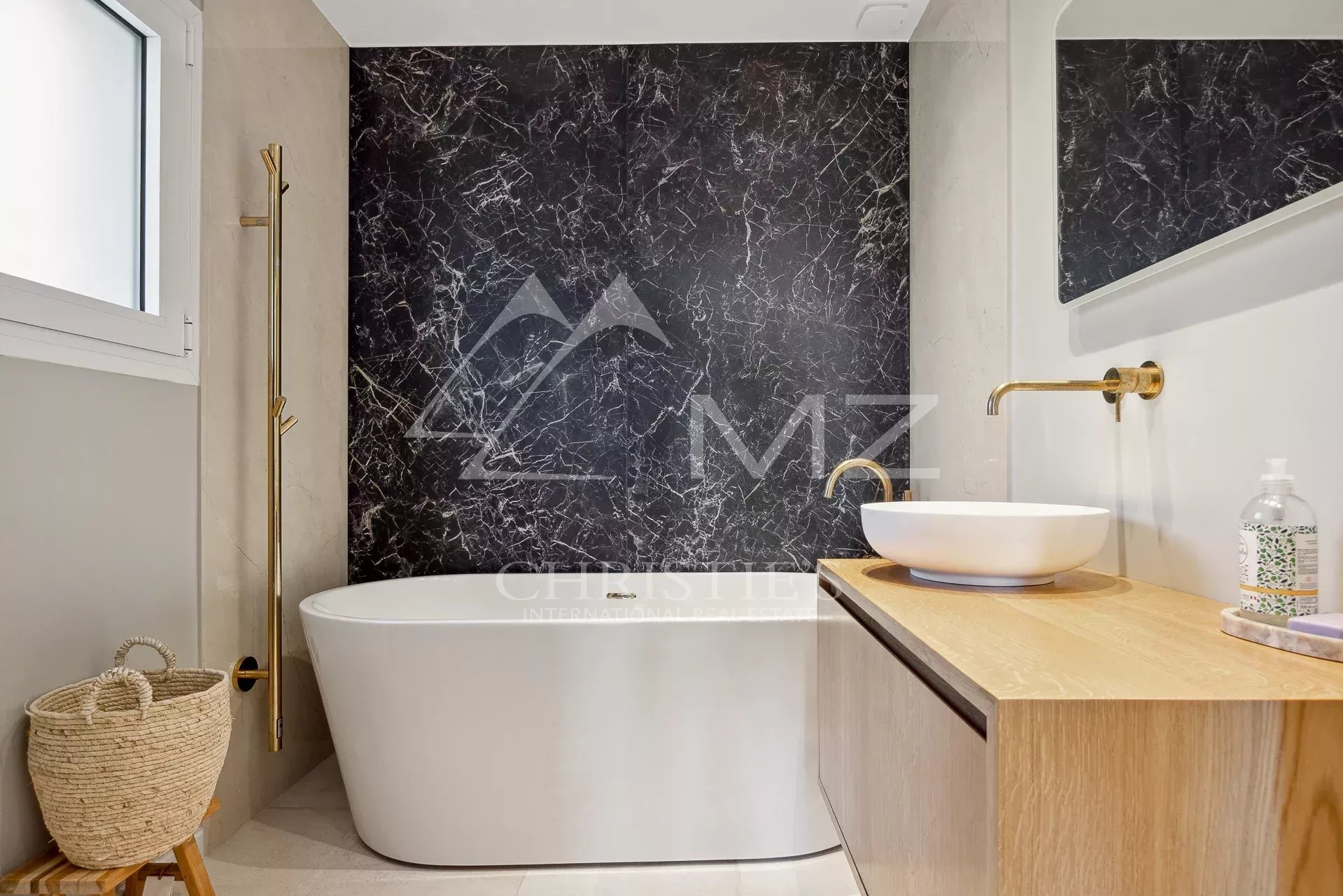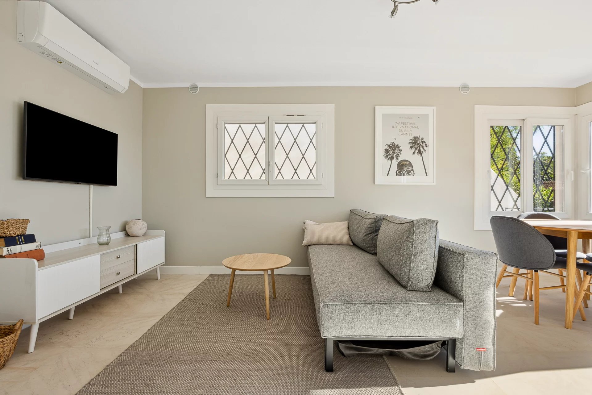 In the town center, very nice apartment completely renovated, approximately 72 m², including a living room with open fitted kitchen, two bedrooms with shower room. On foot from the Croisette.