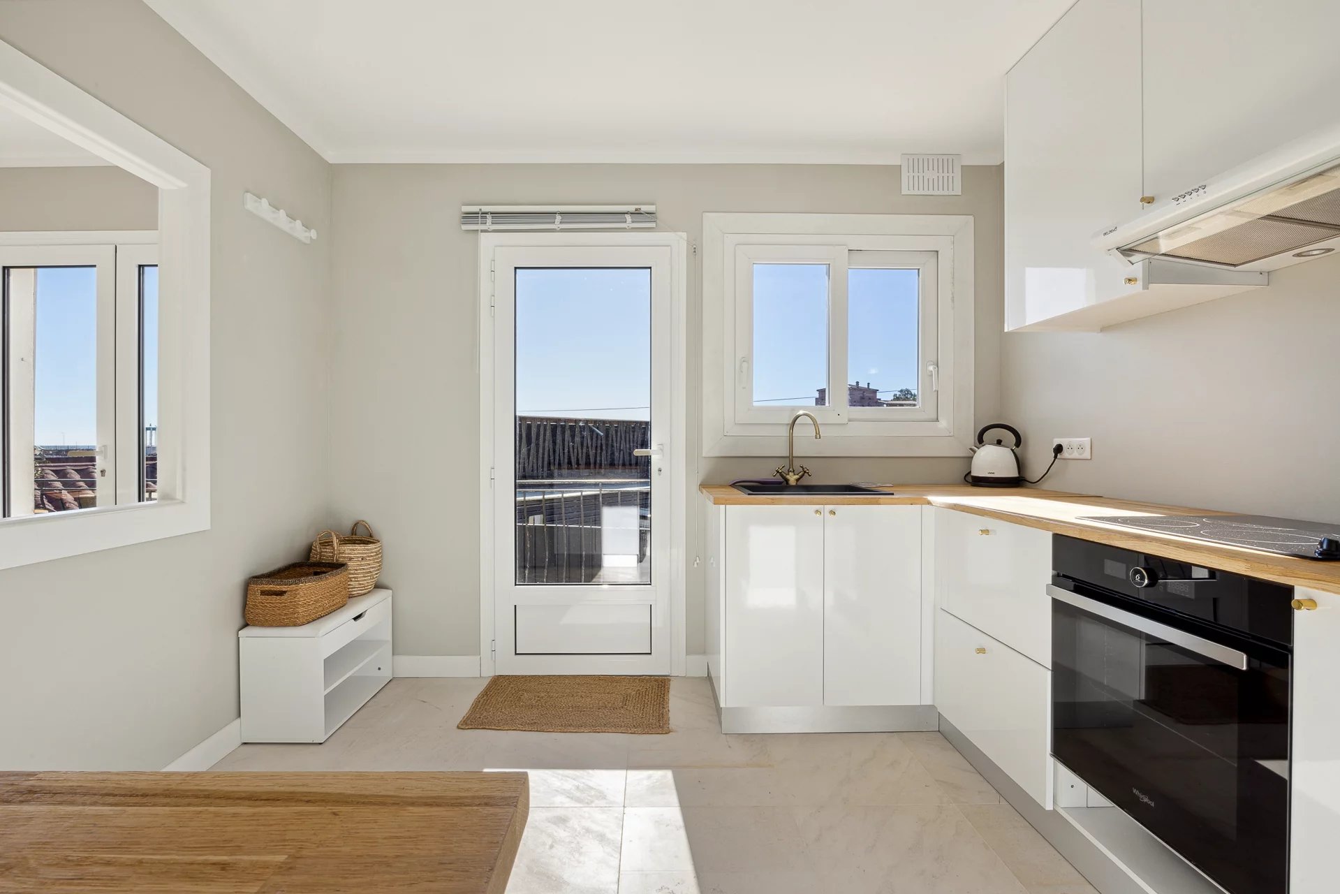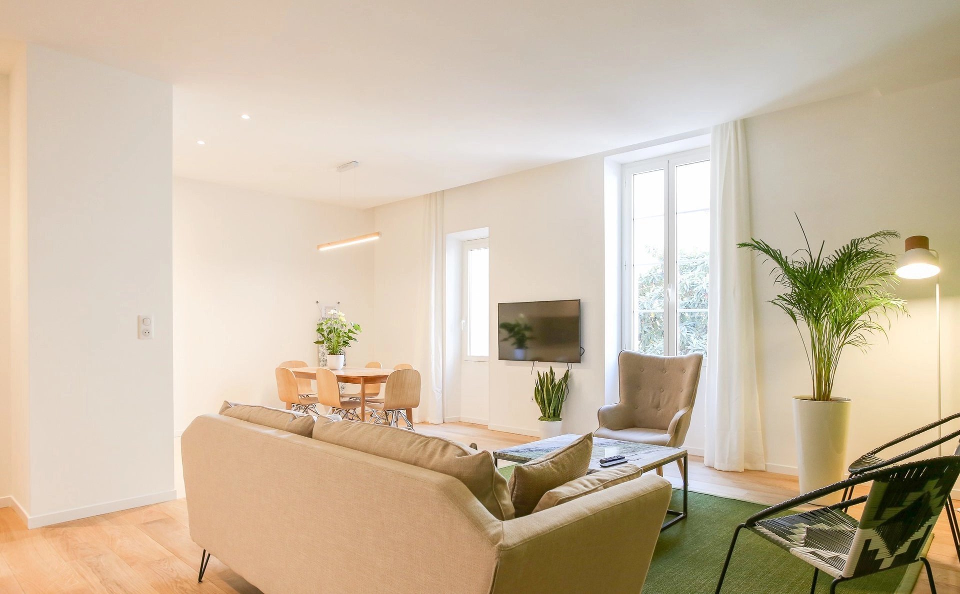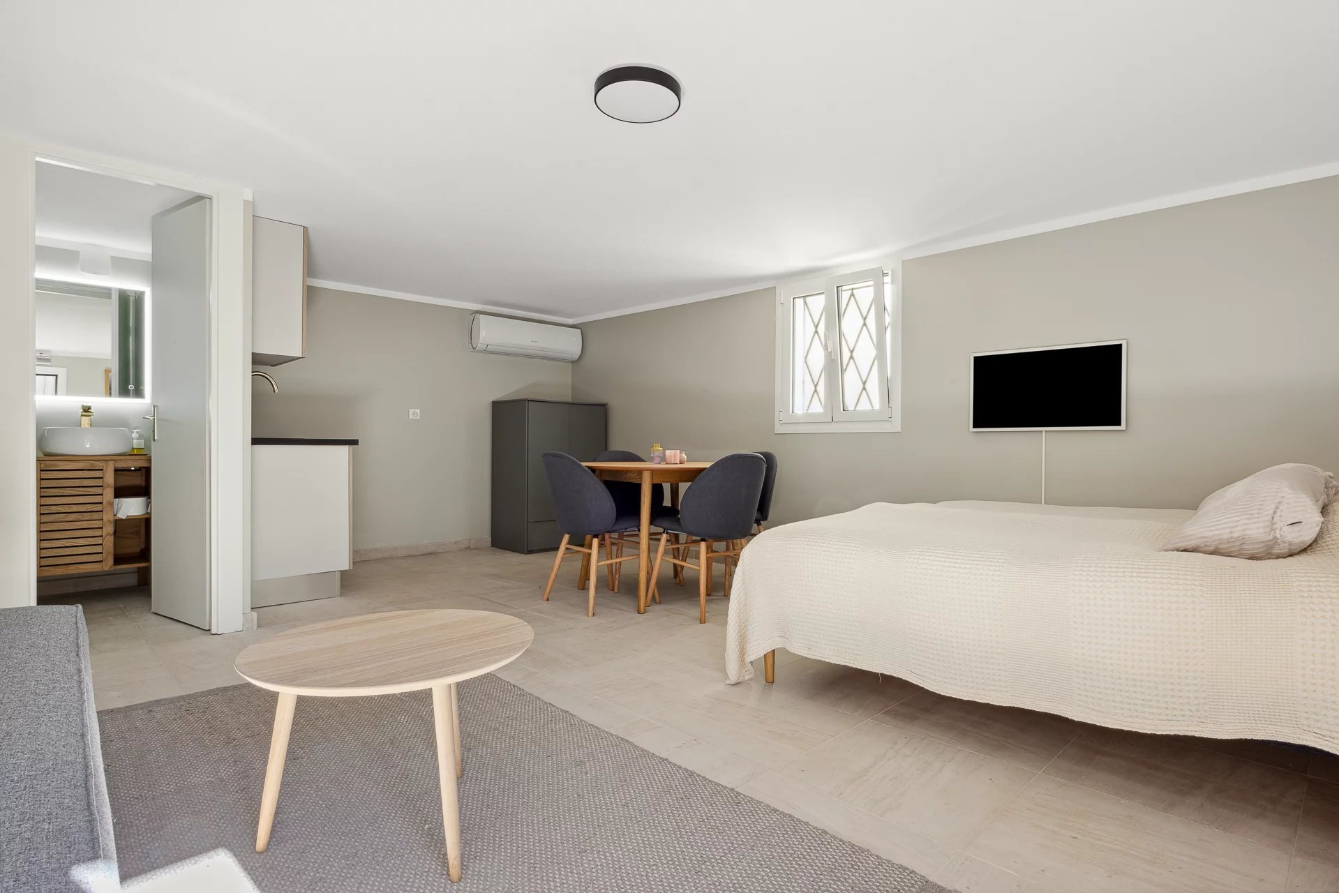 In the town center, very nice apartment completely renovated, approximately 72 m², including a living room with open fitted kitchen, two bedrooms with shower room. On foot from the Croisette.