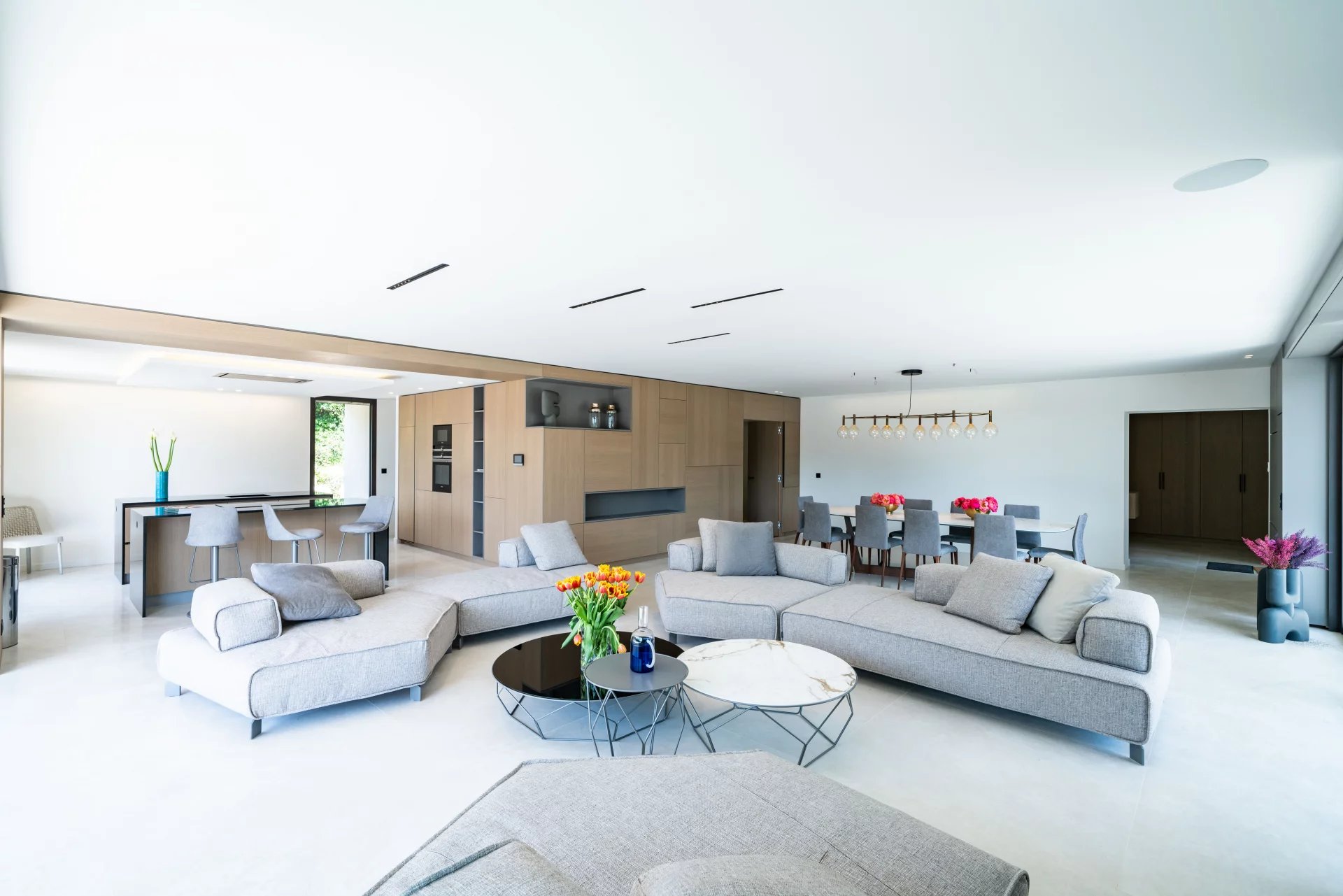 Contemporary villa located in the heart of a quiet and residential area, very close to the center, of approximately 450 m², comprising: on the ground floor a living room with terrace access, an open equipped kitchen, a dining room, a bedroom Next. Upstairs, two en-suite bedrooms with shower room, a bedroom with a bathroom and a master bedroom with dressing room and shower room. On the mezzanine floor, a gym, a spa, an apartment including a kitchen, a living room, and two en-suite bedrooms. Laundry room. Pool. Beautiful fully landscaped land of 2500m².