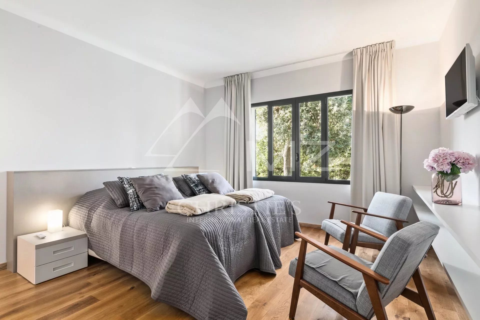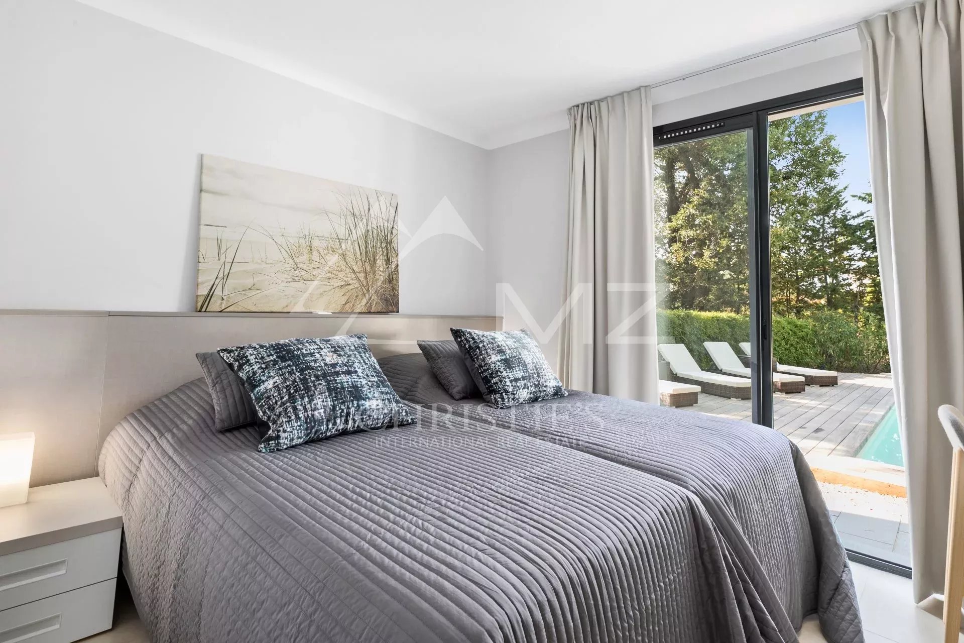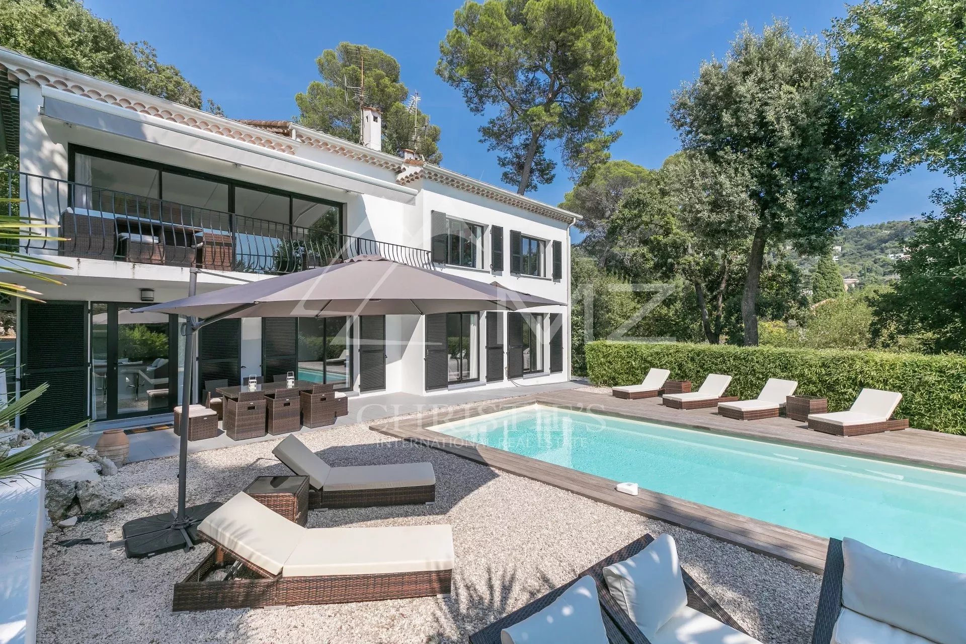 Superbe villa located in Cannes, offering modern services. The villa of 250 m² consists on the first floor of a large living/dining room, a kitchen, a TV lounge and a master bedroom with desk, dressing room and bathroom shower. On the ground floor, four bedrooms with shower rooms, a pool house with kitchen. Heated pool of 9x4 on a plot of 1300 m².