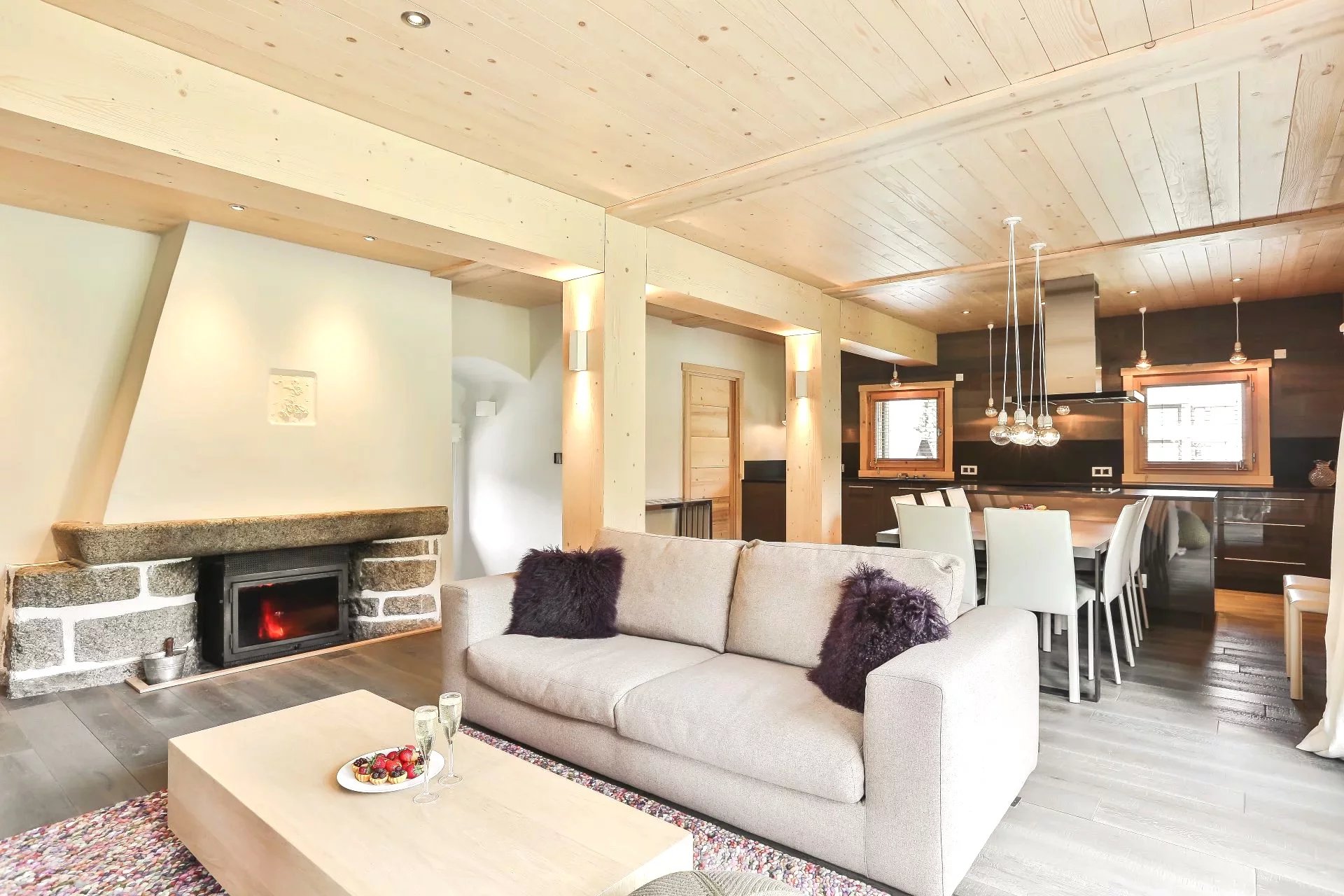 Michaël Zingraf Real Estate Megève offers this four-bedroom chalet, with a large living/dining room and open kitchen, opening onto a terrace, with a living area of 141 m2 (158 m2 in total).