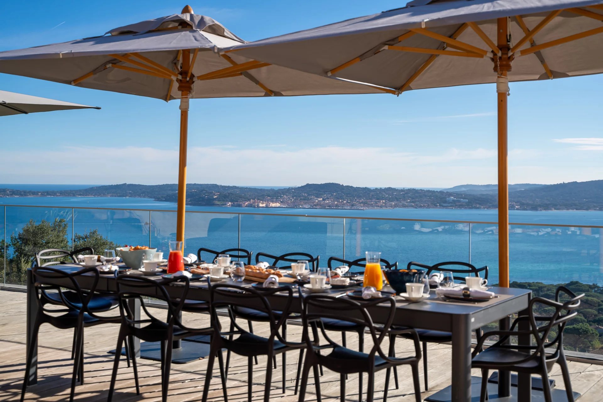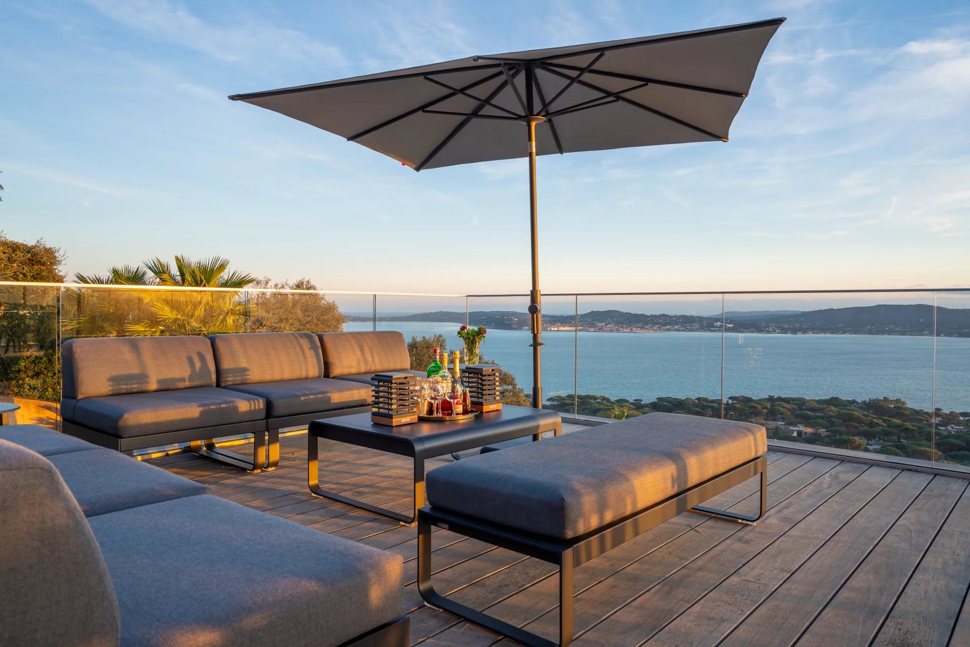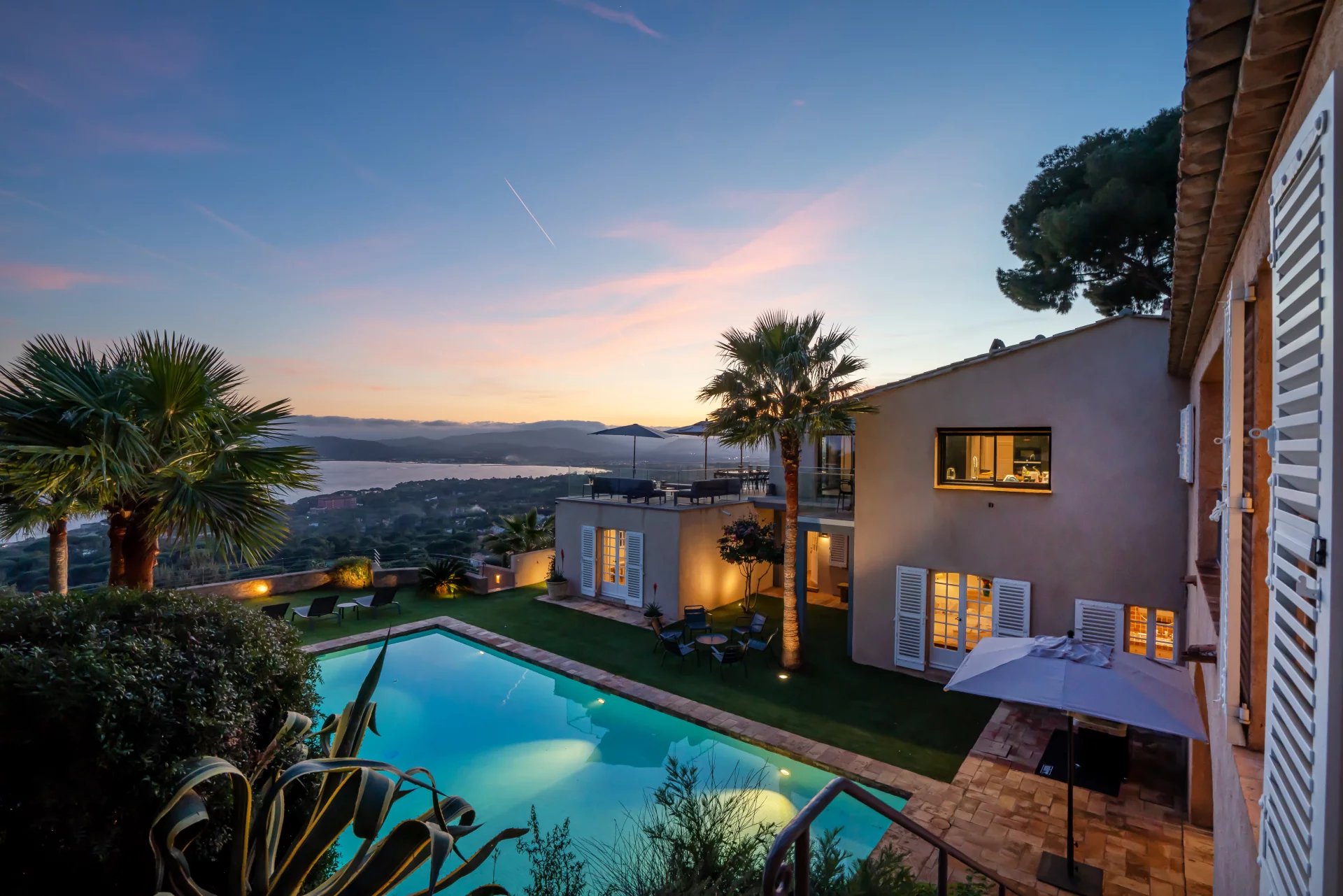 The villa overlooks the entire Gulf of Saint-Tropez, offering breathtaking panoramic views of the sea, the surrounding hills, and the legendary village of Saint-Tropez.