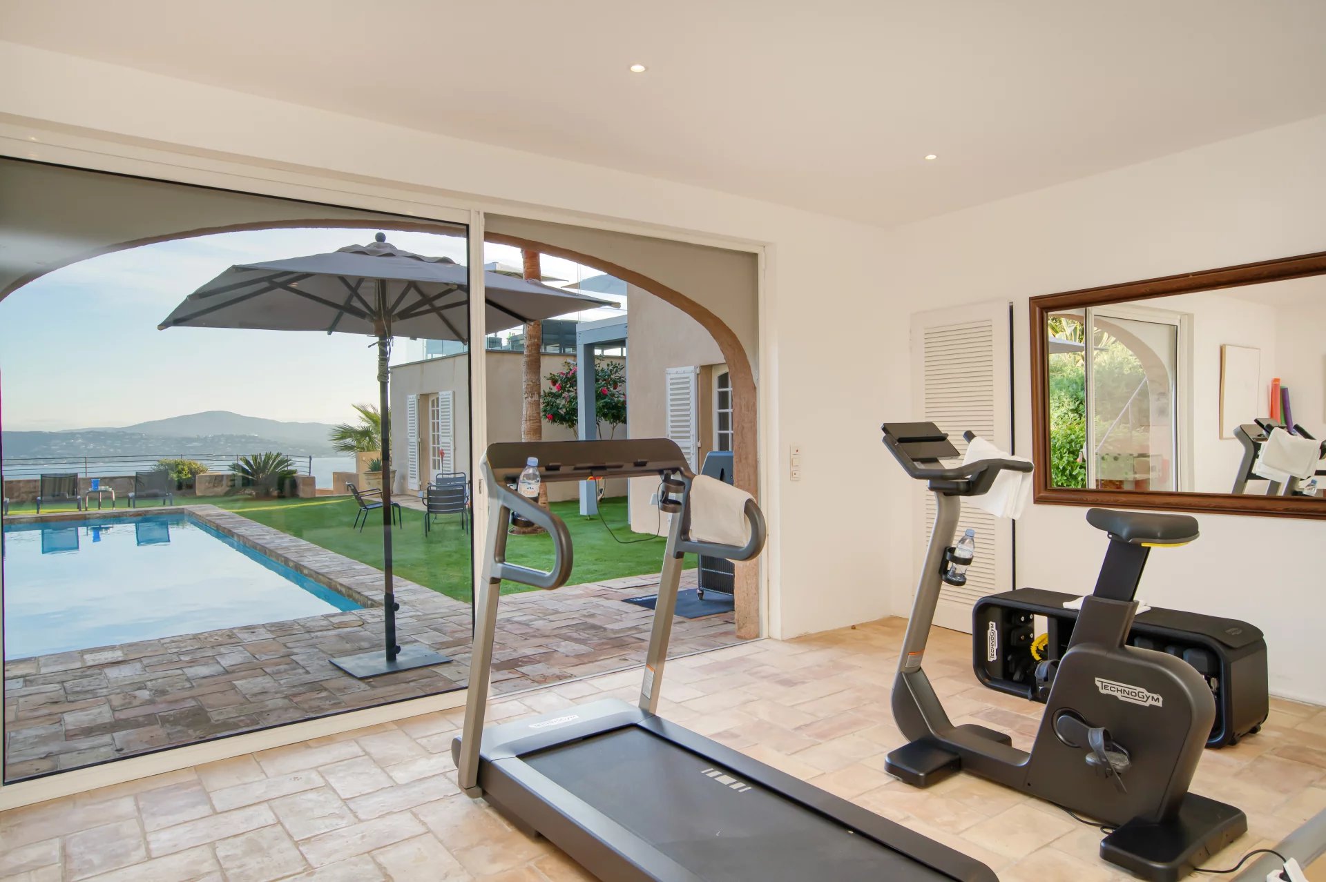 Sports enthusiasts can enjoy the ping-pong table, foosball table, heated swimming pool, and gym equipped with TechnoGym equipment.