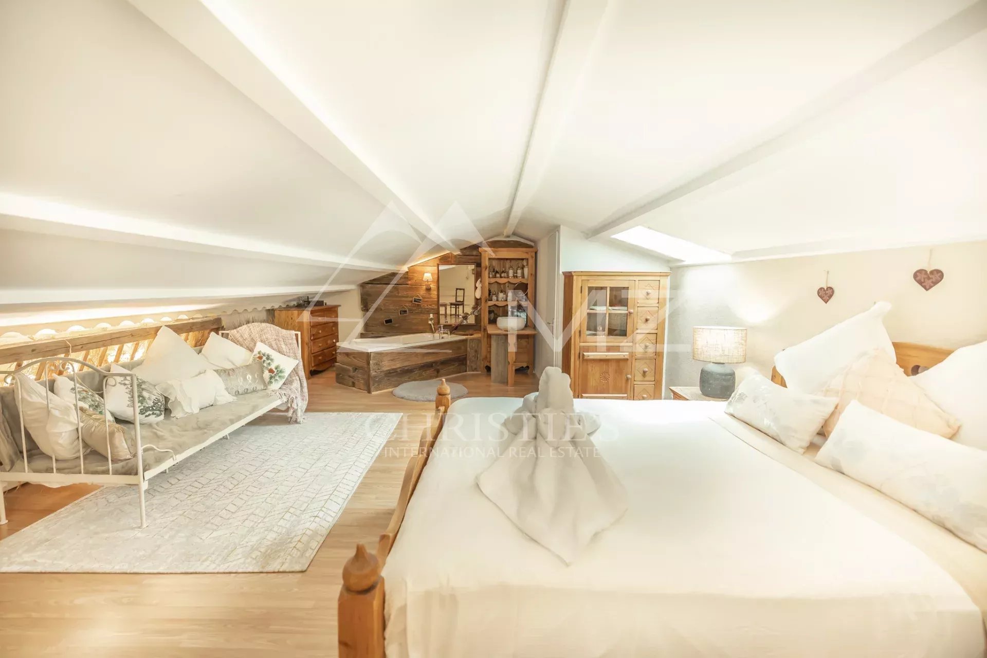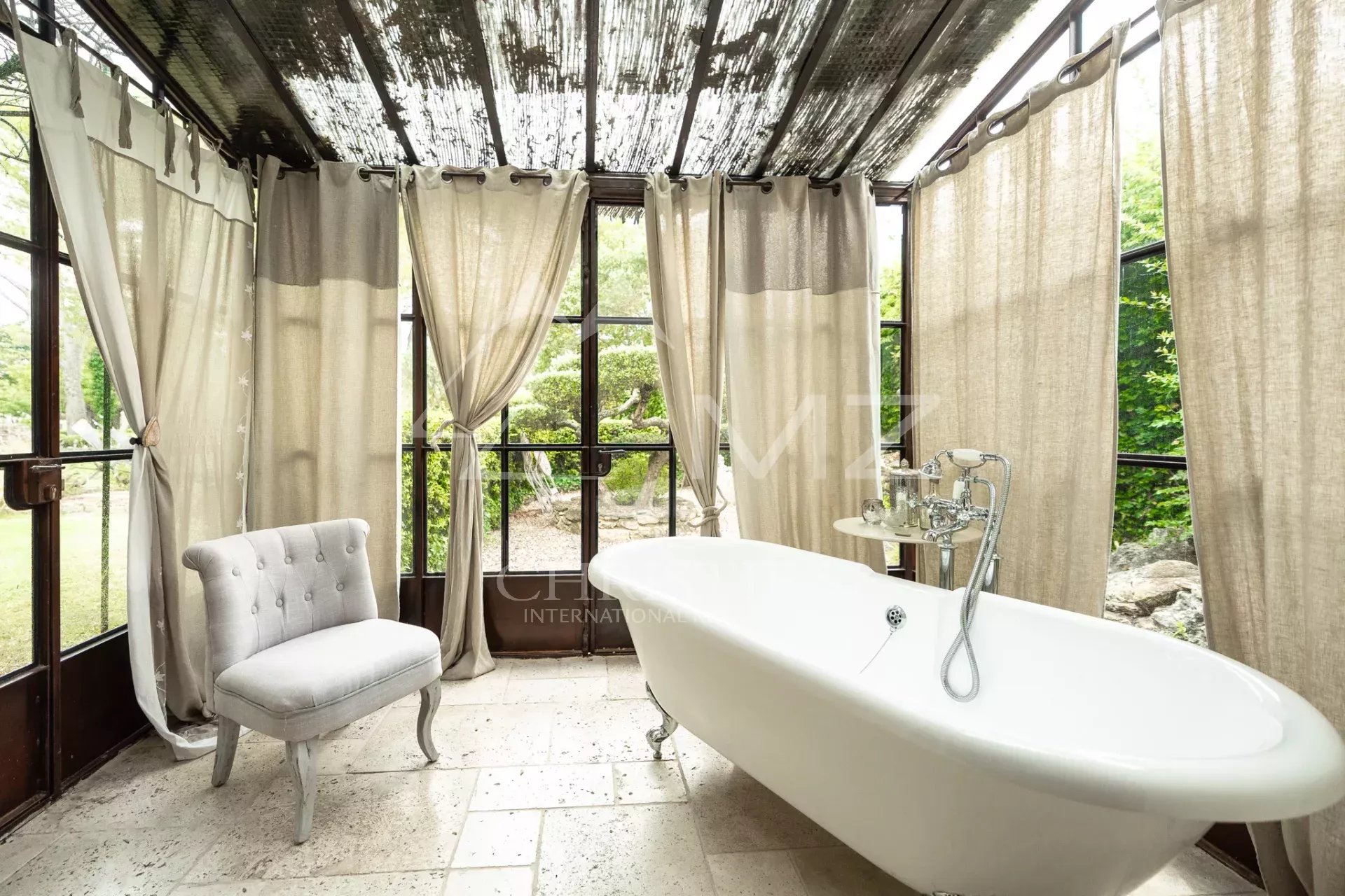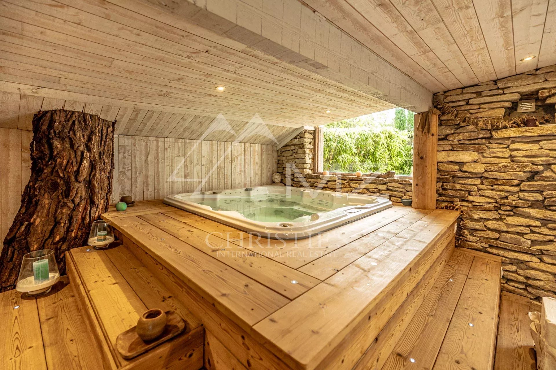 Outside, a magnificent wooded garden with a large swimming pool area and pool house will ensure you a peaceful vacation. You can also relax in the spa area with its jacuzzi and sauna.