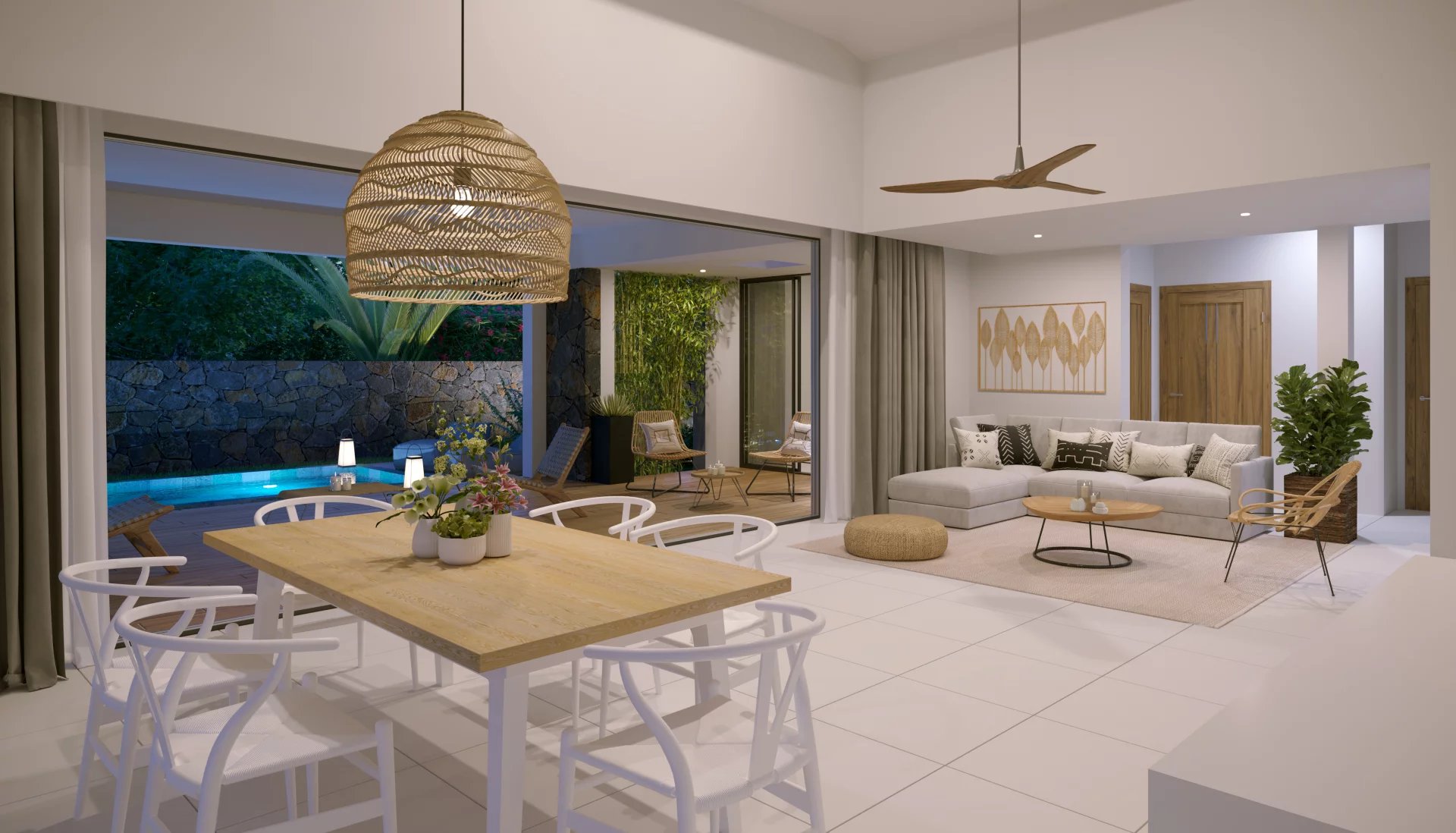 This magnificent villa of 325 m2 on a plot of 600m2 will seduce you. Nestled in one of the most preserved areas of the west coast of Mauritius, between sea and mountains in the heart of nature, combining the comfort and elegance of tropical interiors and the softness and well-being of exteriors with Mauritian influences.