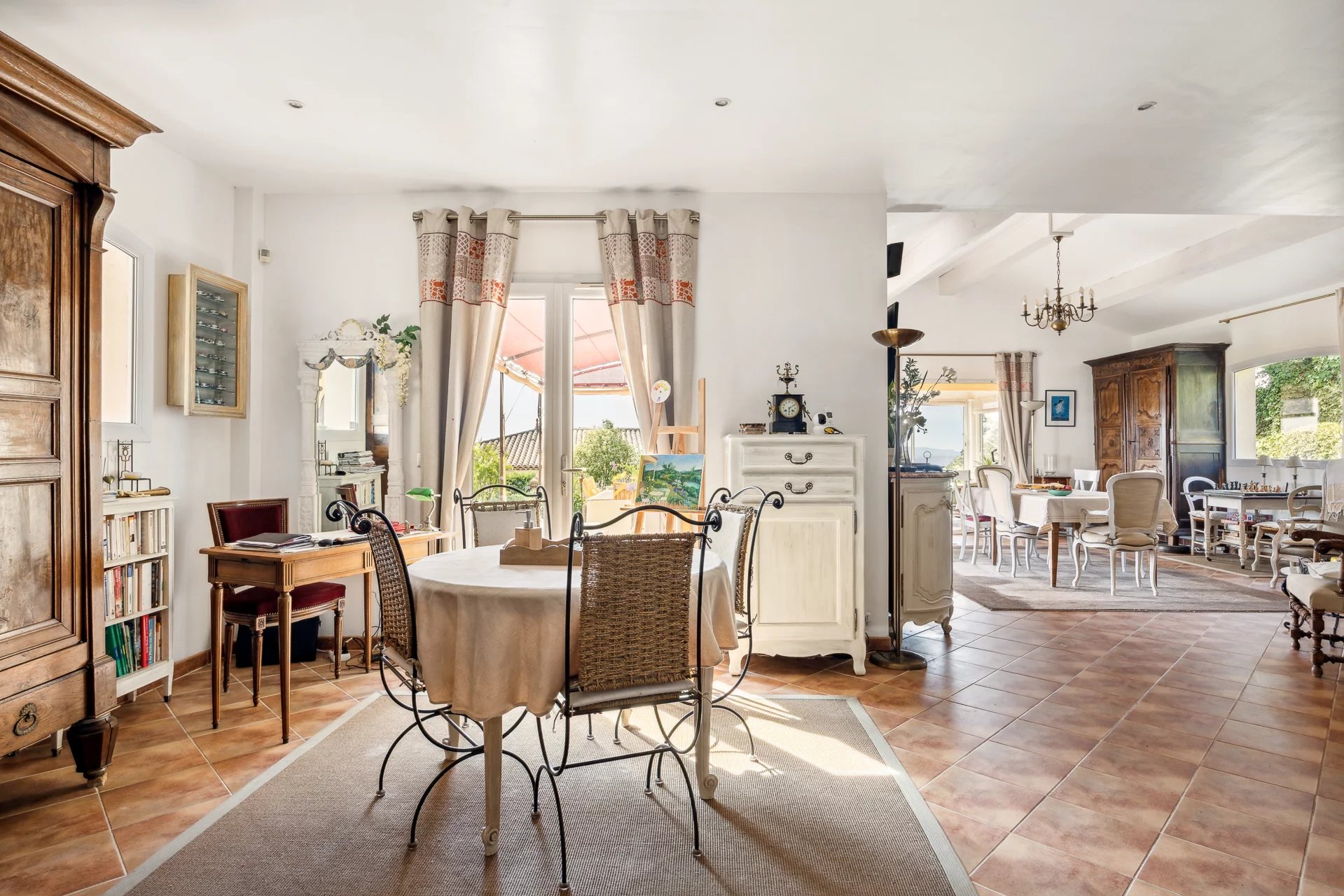 Just a few minutes walk from Tanneron Village, in a quiet estate in a dominant position, this Provencal property of around 170 sqm features a vast, bright living/dining/kitchen area, opening onto a warm terrace, a planted garden and a saltwater swimming pool with counter-current. A master bedroom and bathroom are on the ground floor, while 3 bedrooms and 2 bathrooms make up the upper floor. A 2-car garage and workshop complete the amenities of this family home. Facing east-southwest, the house offers a clear view of nature and the mountains, to the sea, from sunrise to sunset, with colors and perspectives changing at every time of year.