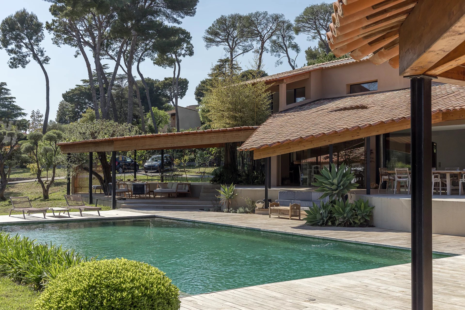 In a confidential and residential area, in Antibes, in a dominant position, in a green, calm and private setting, this marvellous Sauzet architect's property marvellously combines luxury and refinement.