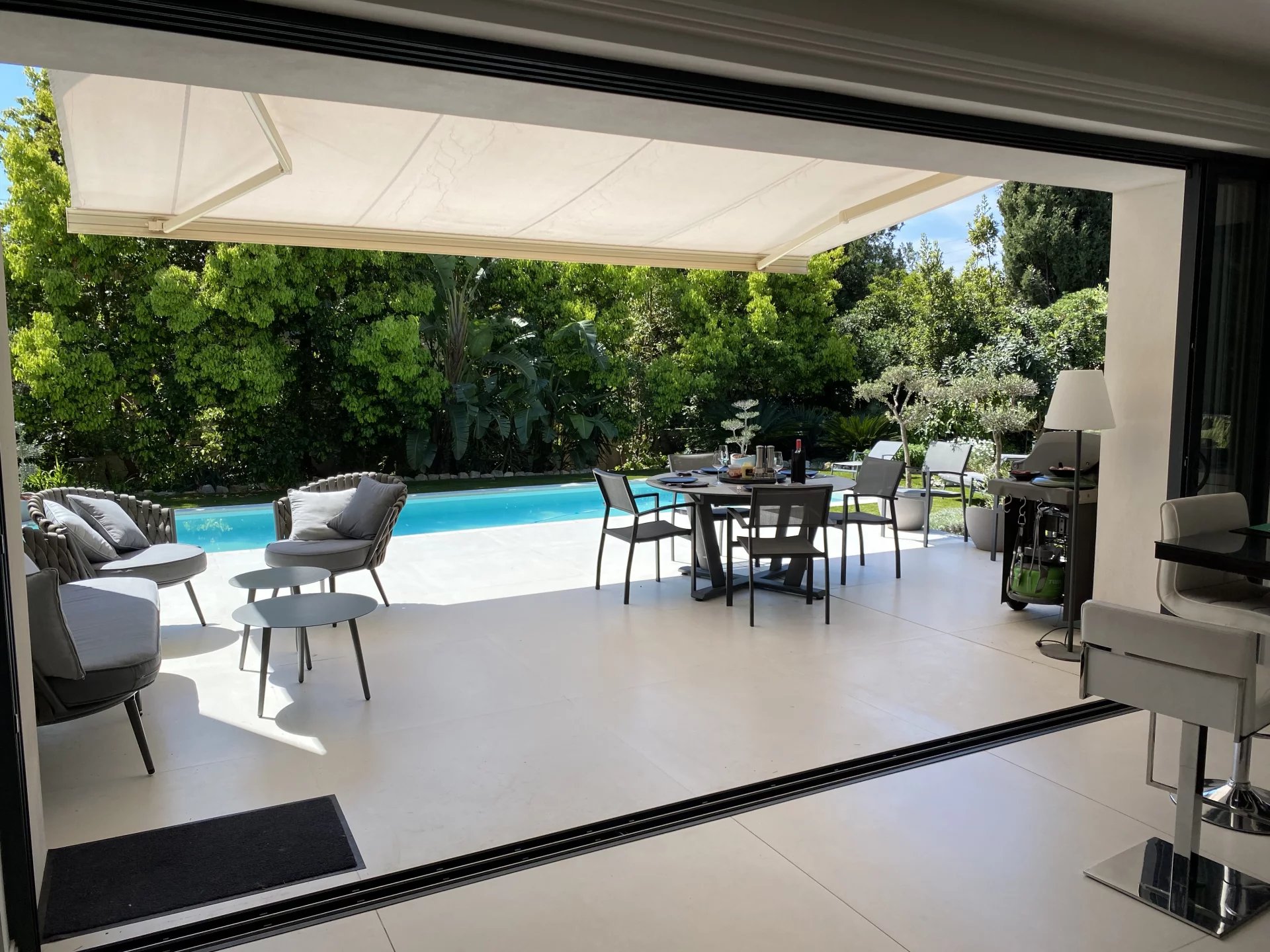 Nestled in a privileged setting, within a gated estate, in peace and quiet, within walking distance of beaches and shops, this modern-style villa was completely renovated in 2017. Luxurious, timeless and elegant, with a total surface area of around 247 sqm, on a plot of around 1,066 sqm, it offers a bright living room with open-plan kitchen, an entrance hall and study area, three en-suite bedrooms upstairs including a very beautiful Master Bedroom. In the mezzanine, you'll find a bedroom, a bathroom with toilet and a large space that could be converted.