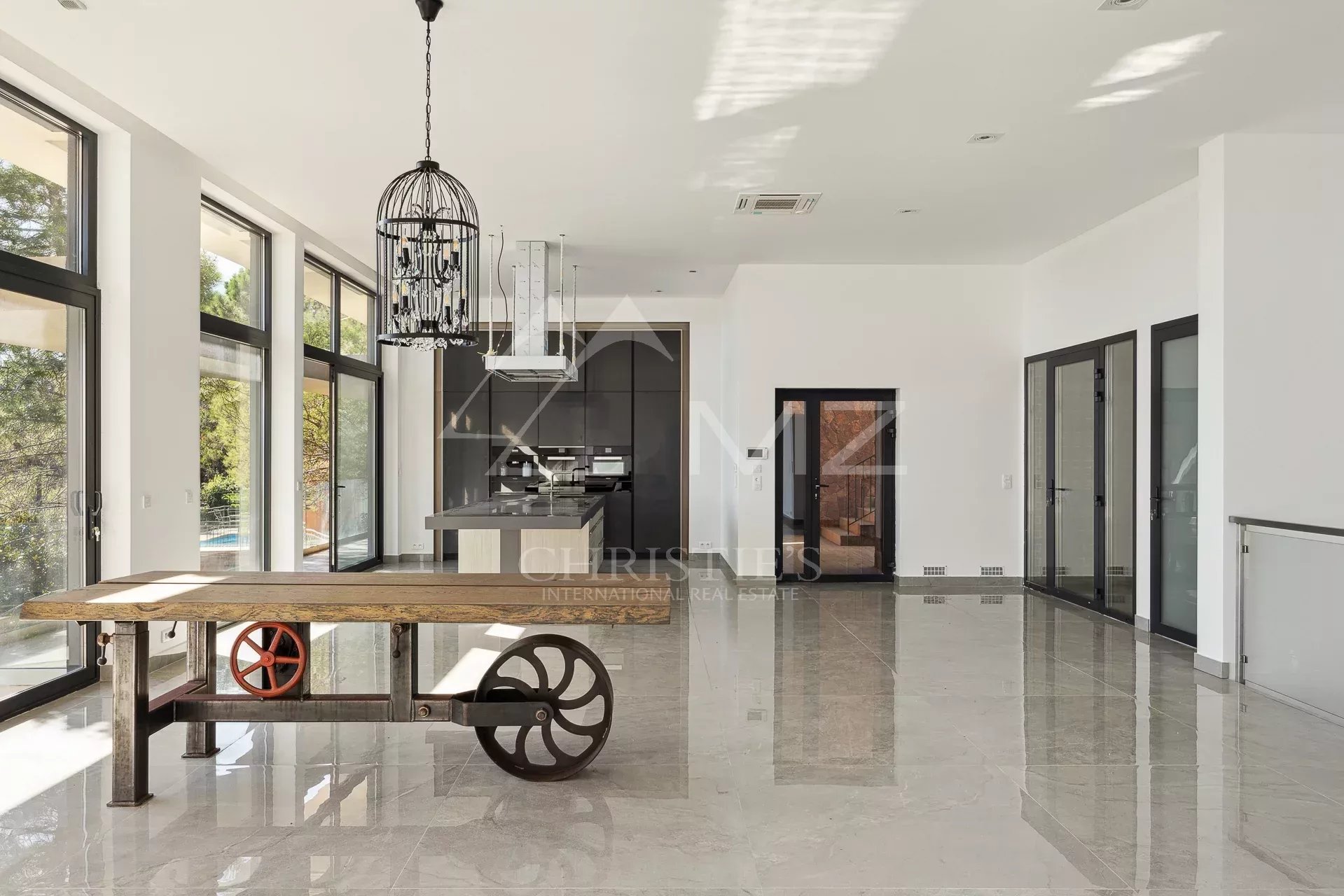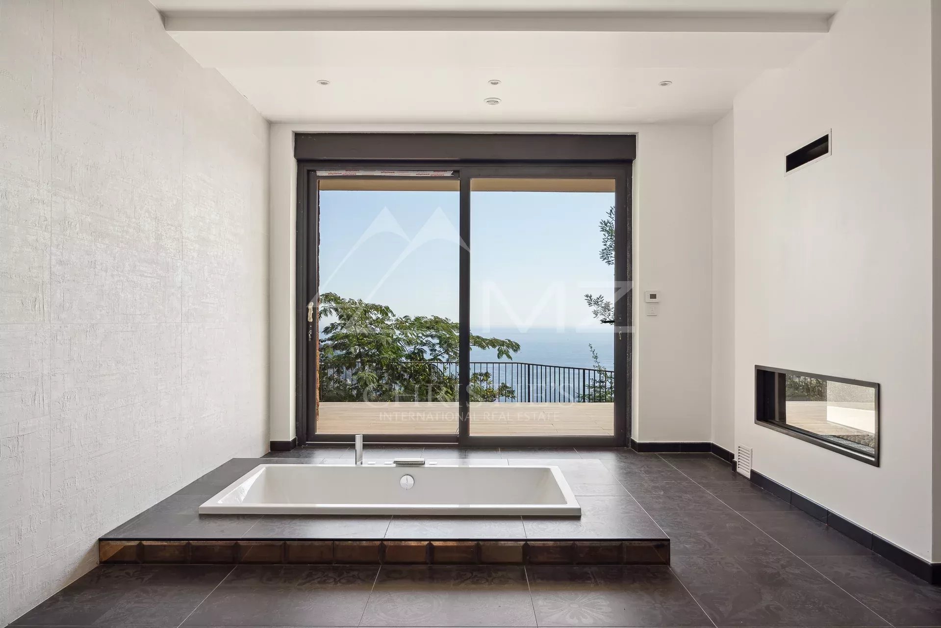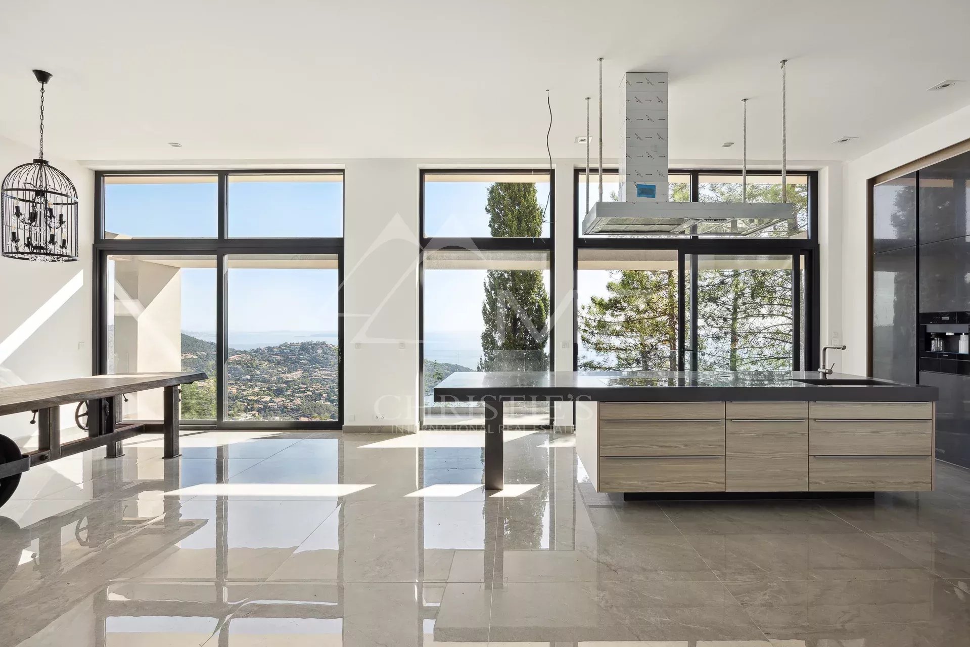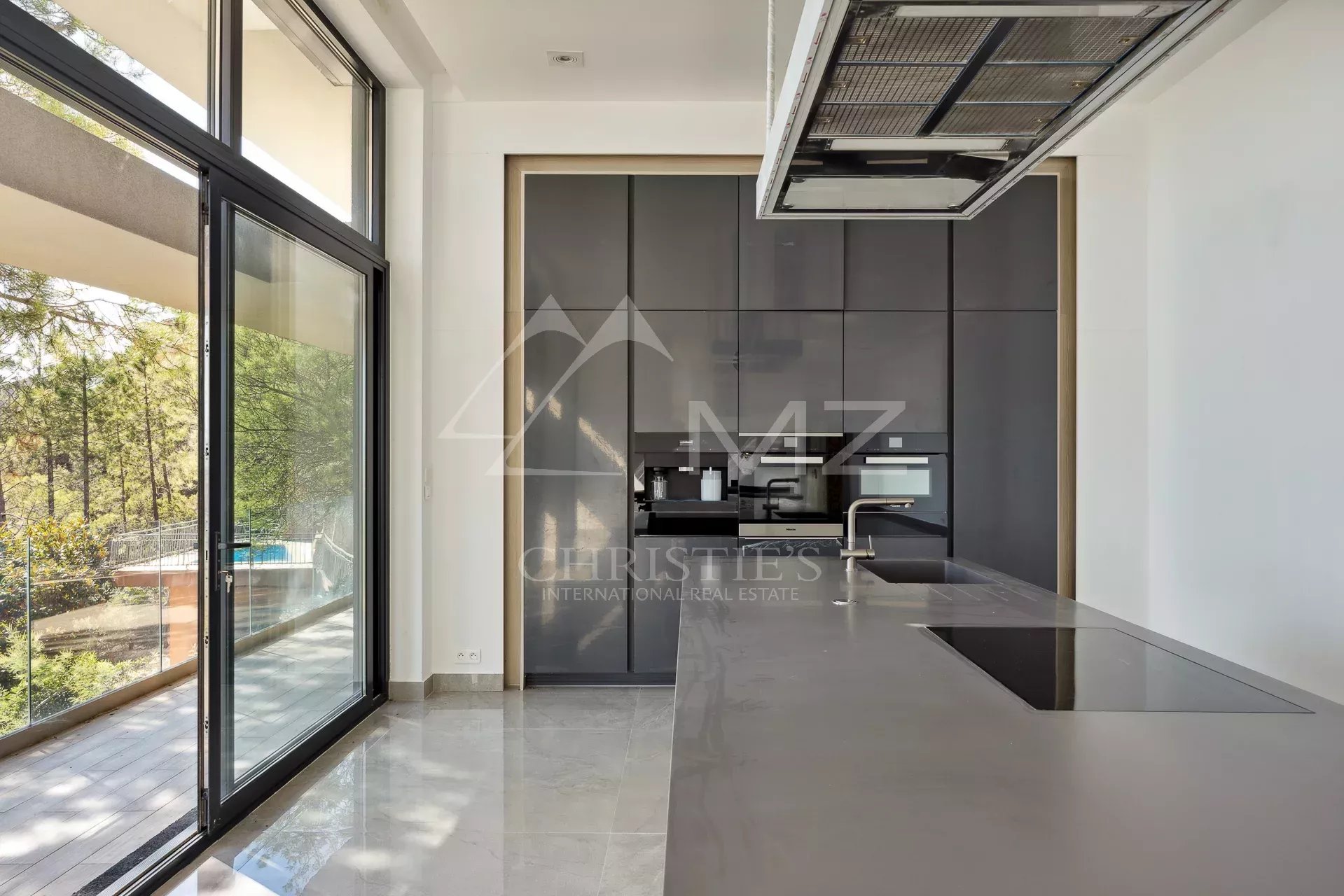 In a gated, secure estate overlooking the bay, this contemporary new villa, designed by a renowned architect, blends perfectly into the landscape. Built on 2 levels, it spans more than 300 sqm with its annexes. Quiet and out of sight, this 2-storey villa boasts 255 m2 of living space, including a very large living room with open kitchen and bedroom on the first floor and 4 other bedrooms, including a master bedroom and another bedroom with an independent access, on the garden level. The roof terrace boasts a swimming pool with breathtaking sea views. Three large garages complete this property located 5 minutes from the beaches and restaurants of Port de La Figueirette, 10 minutes from Théoule town center, 35 minutes from Cannes Croisette and 45 minutes from Nice airport.