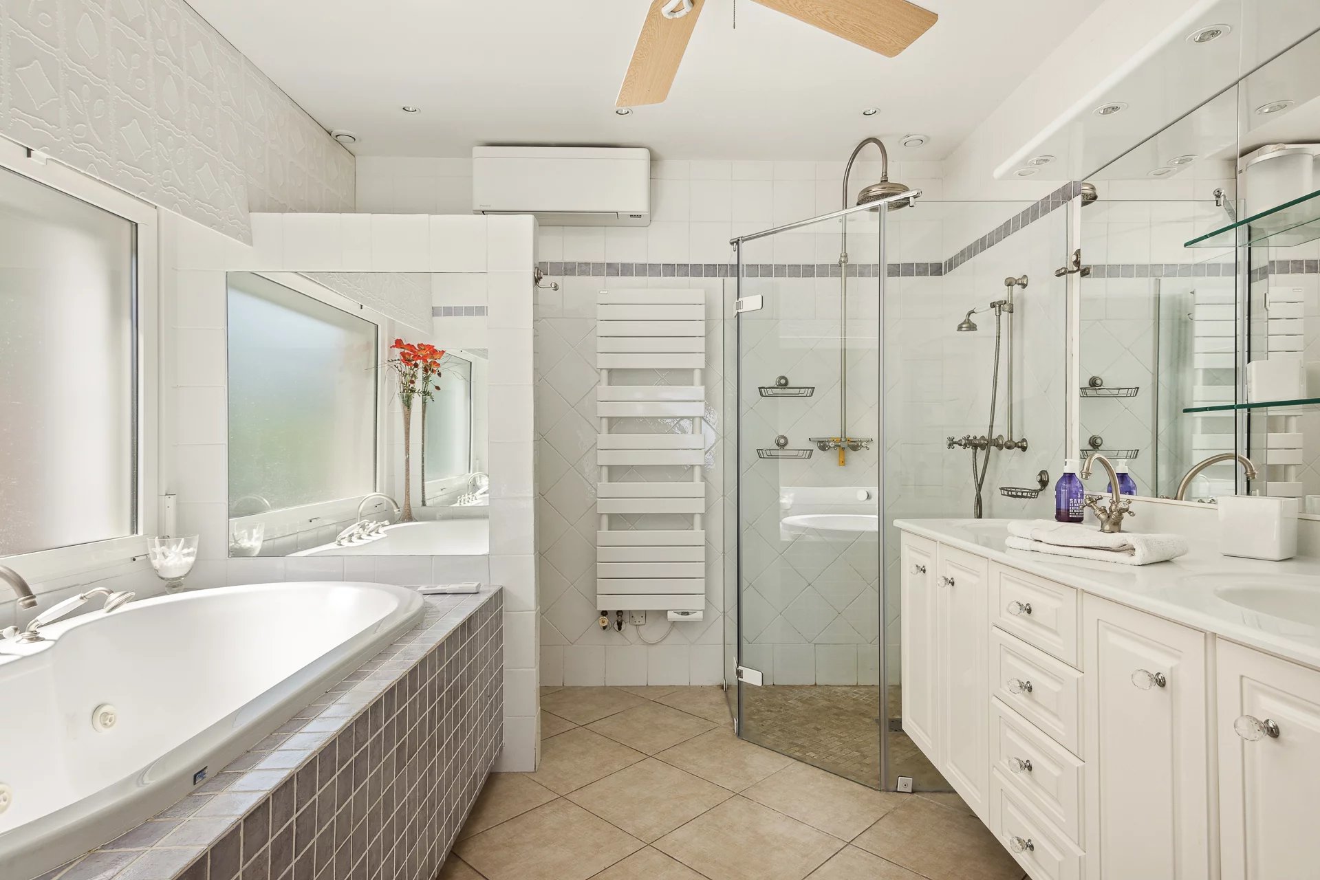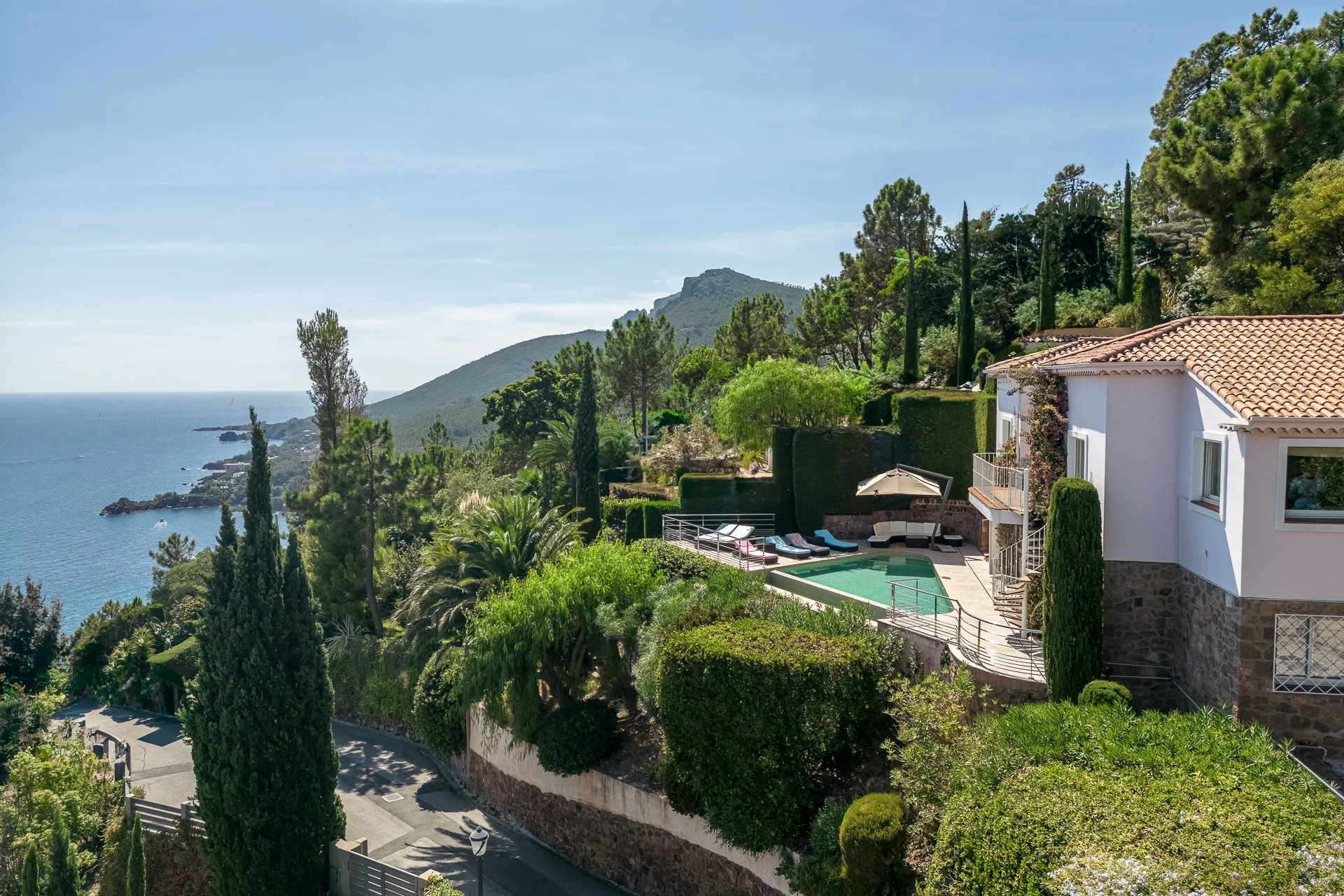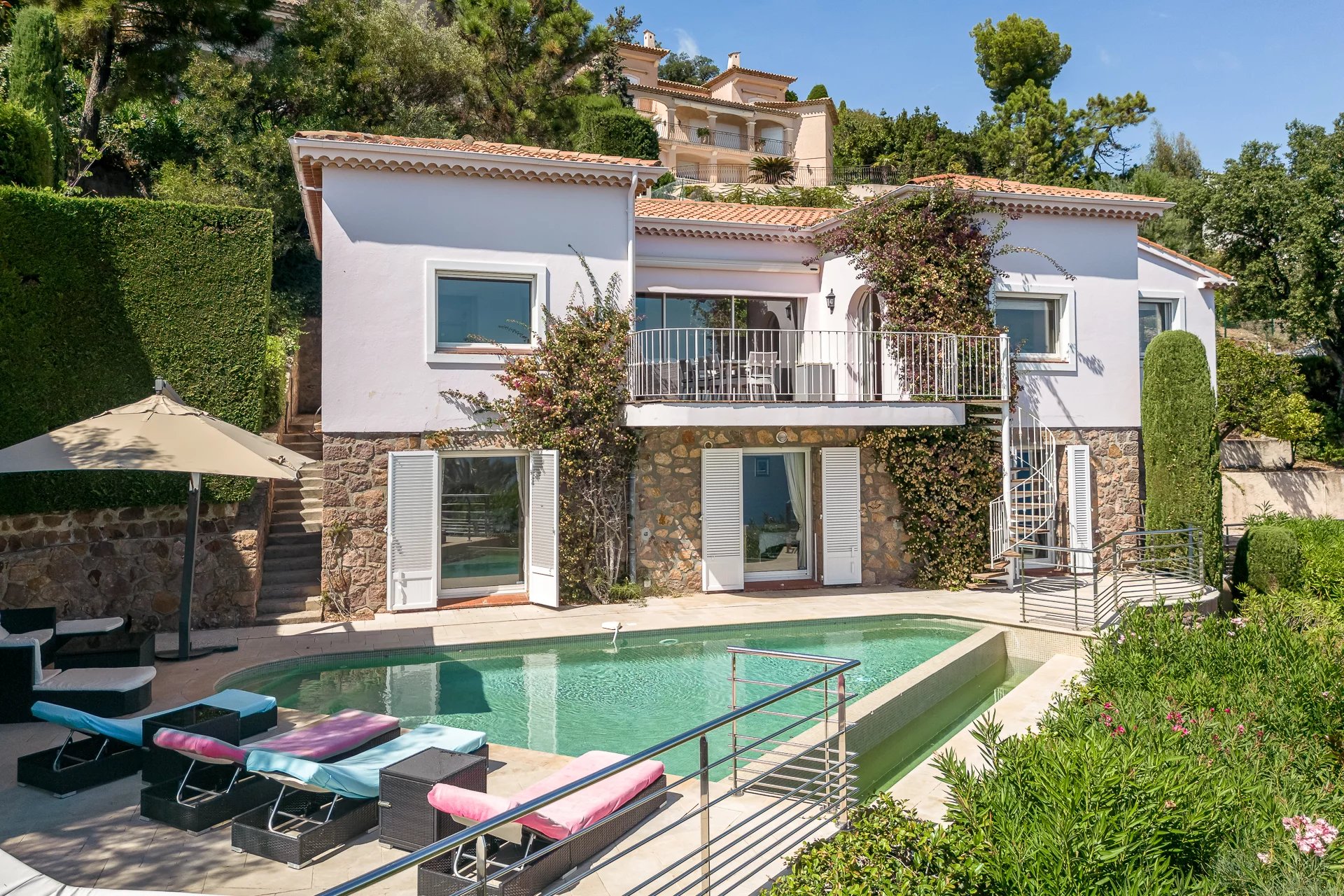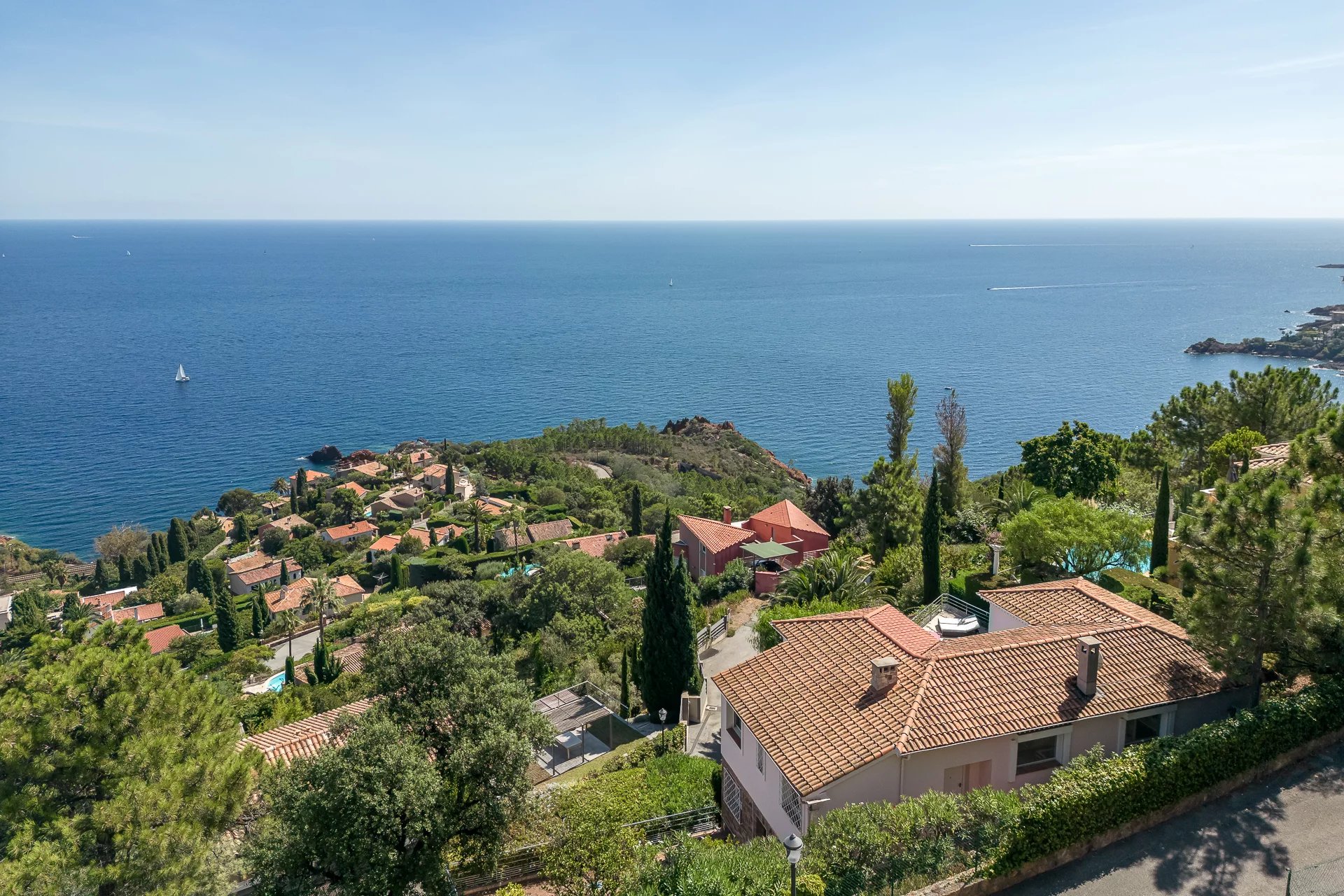 Located at the exit of Théoule-Sur-Mer and at the entrance to the Estérel, in a secure gated domain overlooking the bay, renovated villa on 2 levels, with a total living surface area of approximately 231 sqm set in a plot of land of approximately 1,050 sqm, offering splendid sea views. Quiet and south-facing, it has 4 bedrooms, including 1 master bedroom, and many terraces. With a spacious garage. The beaches and restaurants of the Port de La Figueirette are 5 minutes away, Théoule centre 10 minutes, La Croisette 35 minutes and Nice airport 45 minutes.