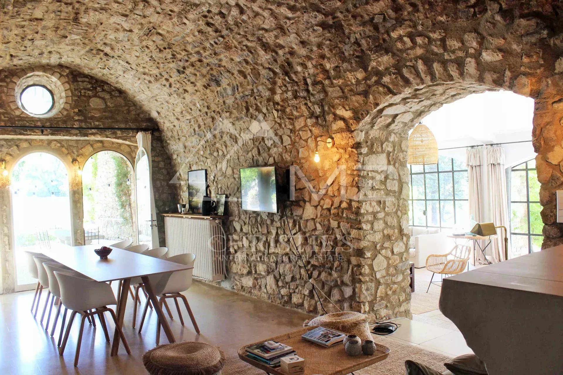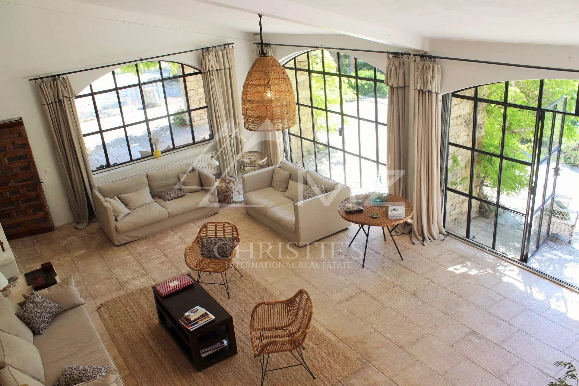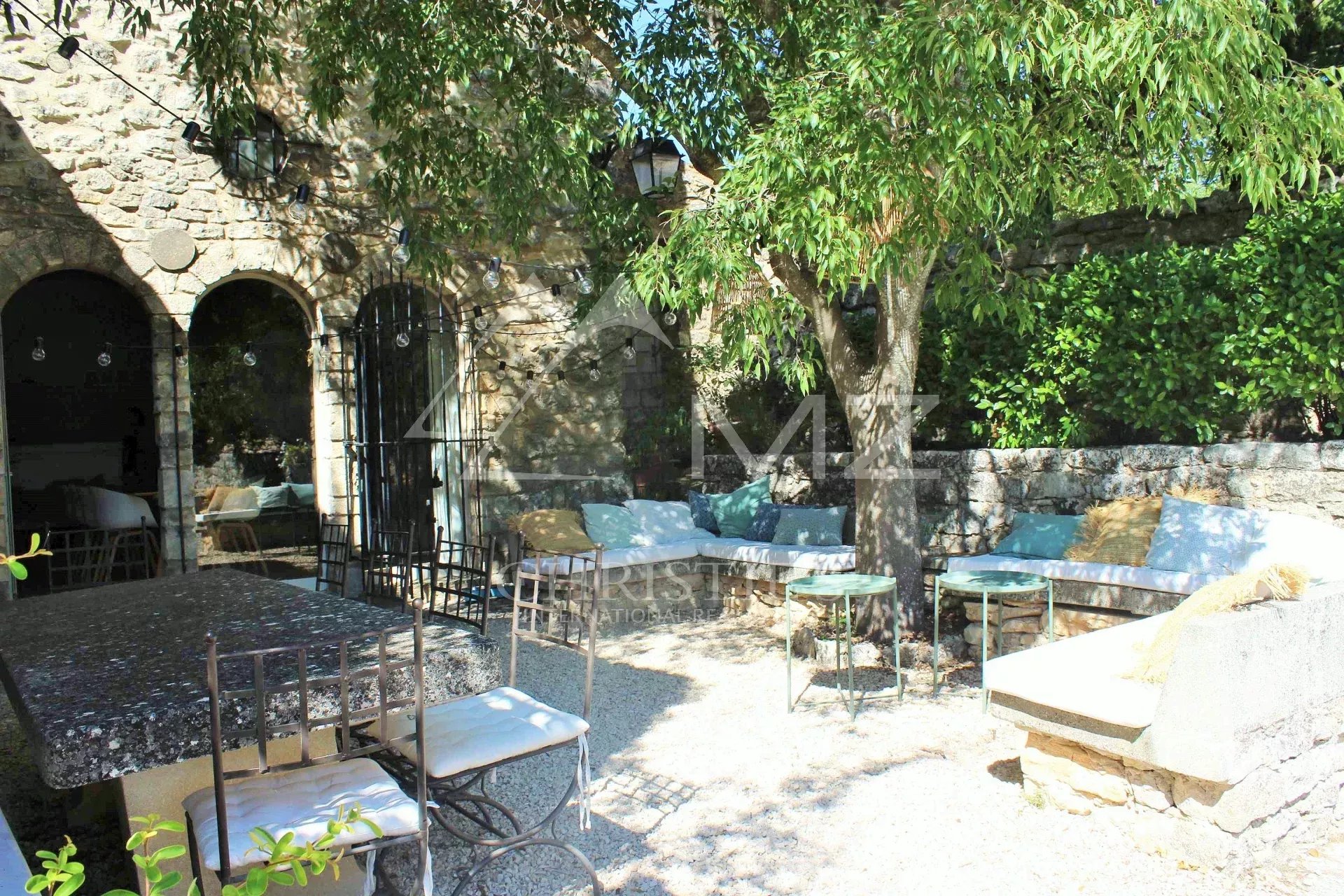 The interior offers a spacious, very bright living room with a kitchen / dining-room in a long vaulted stone room. 5 bedrooms and 3 bathrooms are spread over the different levels, whose thick walls keep the freshness and offer a very Provençal way of life...