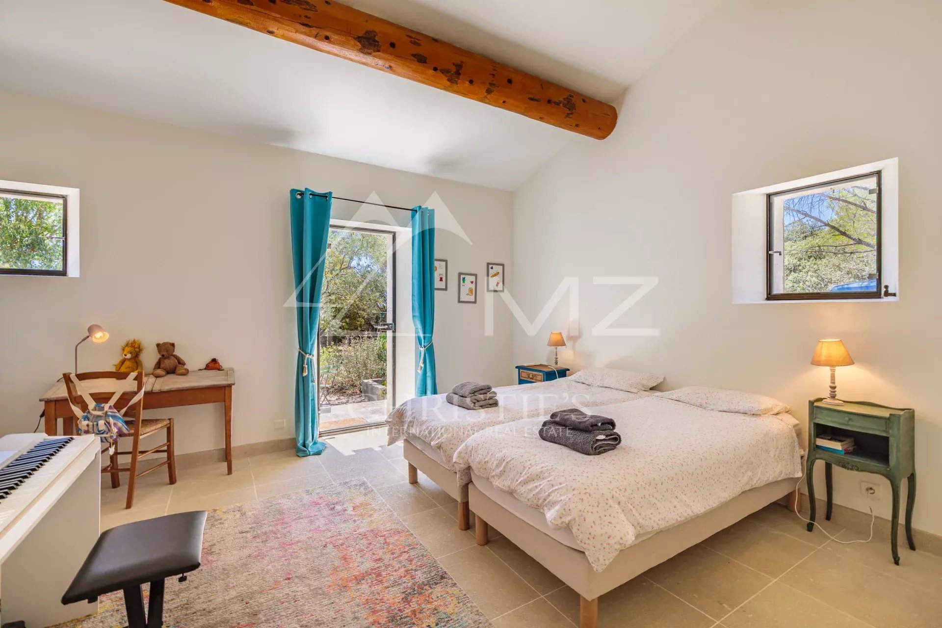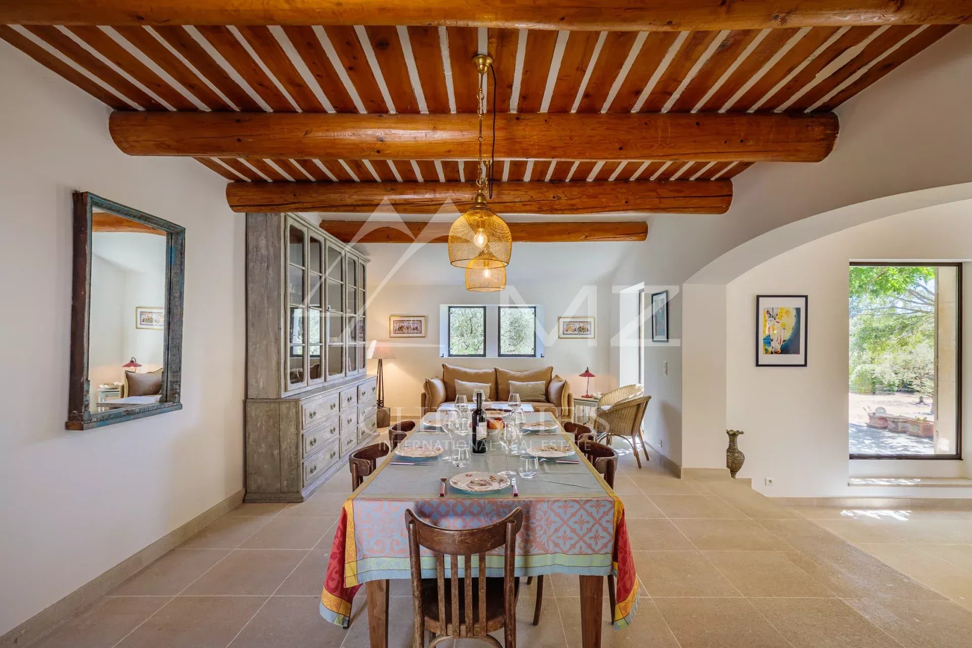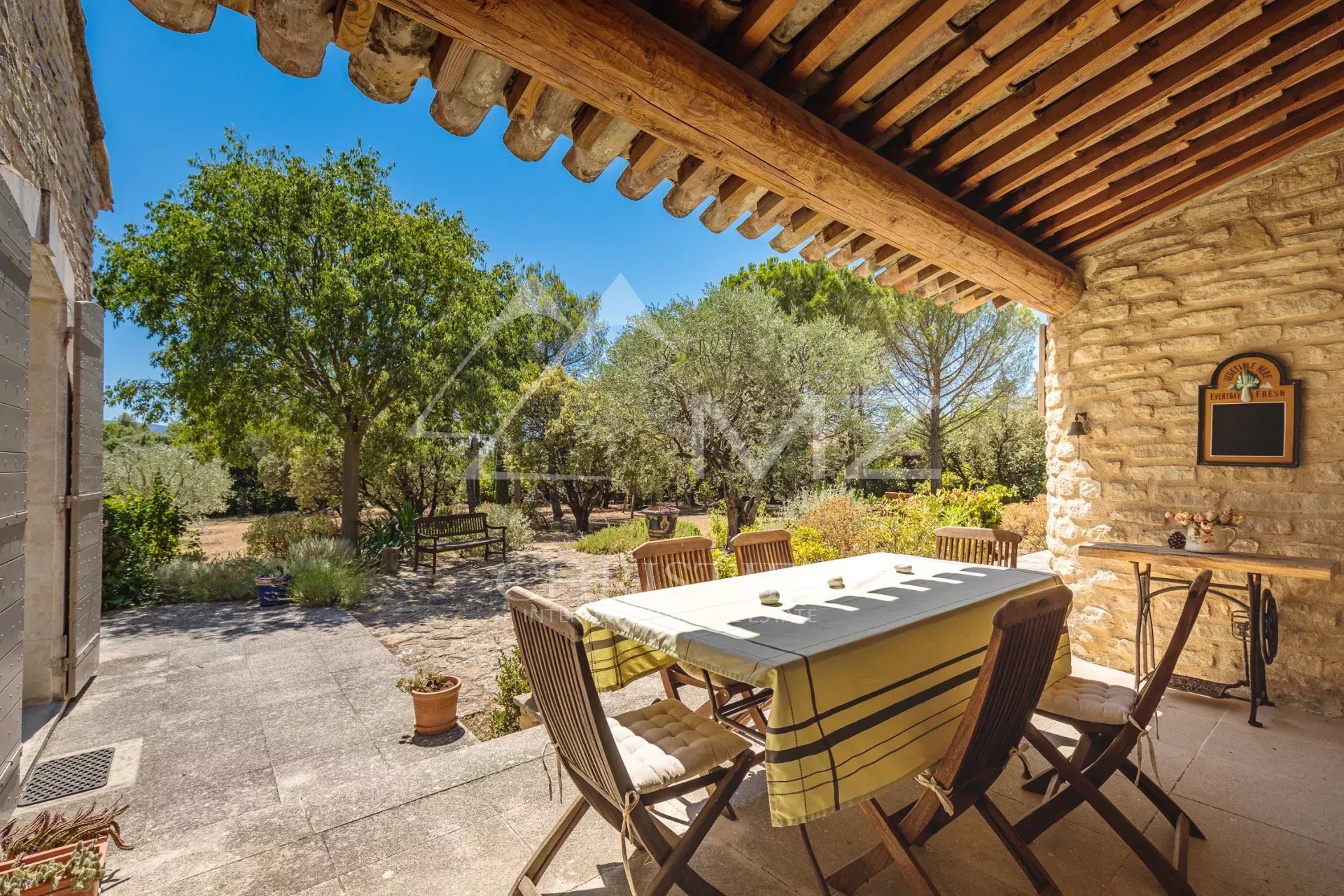 Discreetly nestled on the edge of the charming village of Cabrières d'Avignon, out of sight, this beautiful property awaits you for an enjoyable and relaxing stay. Beautiful flat garden planted with around thirty olive trees, white oaks, pines and Mediterranean species, and many shaded areas and terraces. Lovely heated and secure pool with a spacious equipped pool-house.