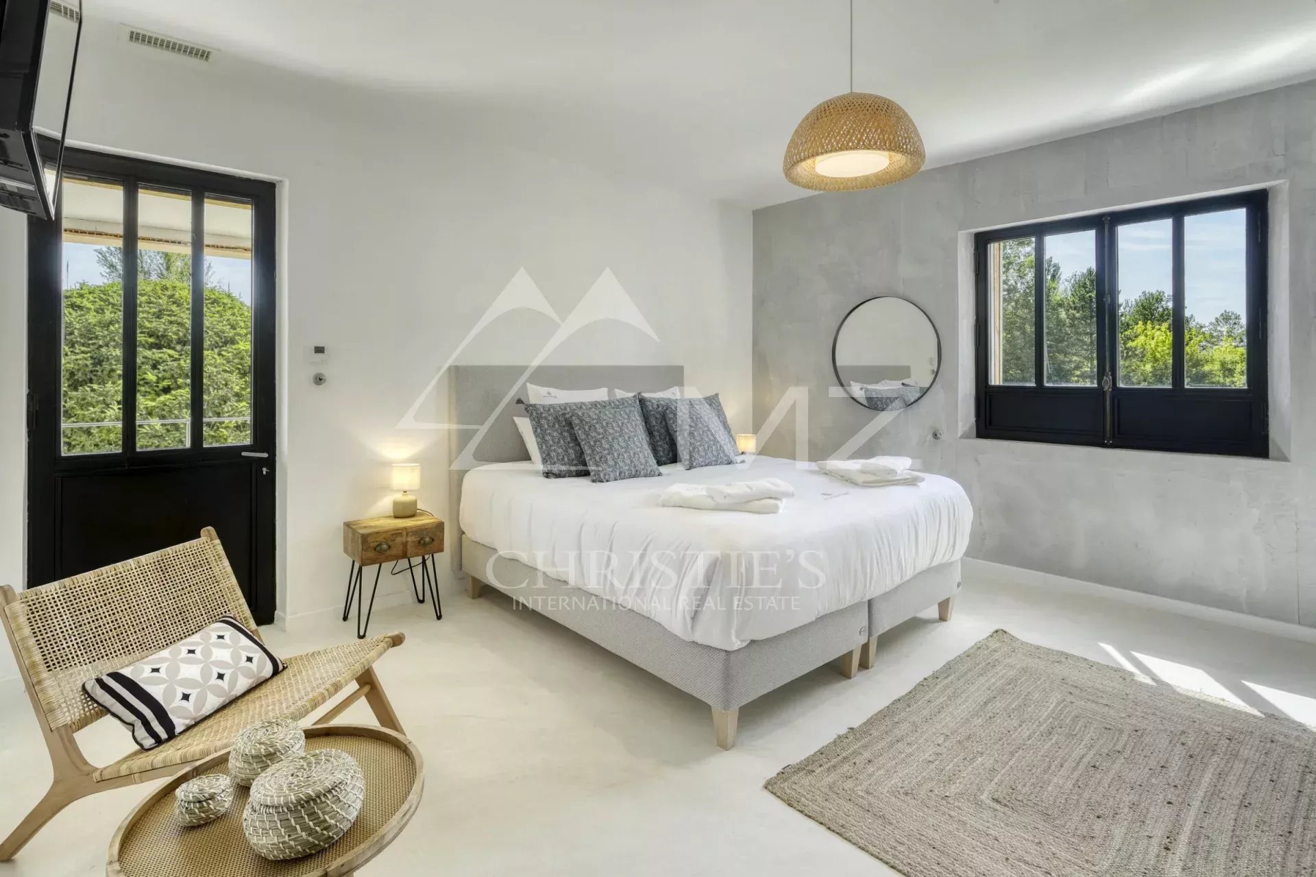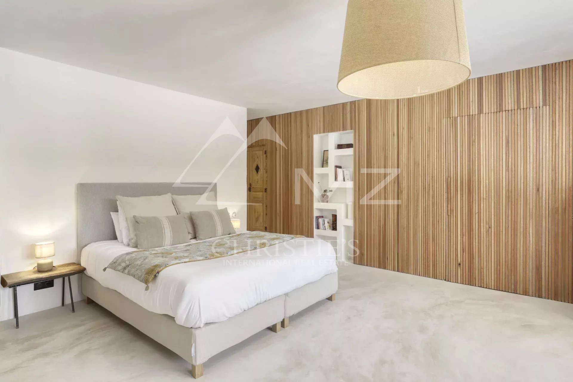 The wooden cladding gives an incredible cachet to the house and reveals its Zen atmosphere. The interior, fully air-conditioned, offers beautiful volumes and a bright and warm living room. A beautiful suite on the ground floor and four other en-suite bedrooms upstairs, some with exterior access, can accommodate up to ten guests for a relaxing holiday.