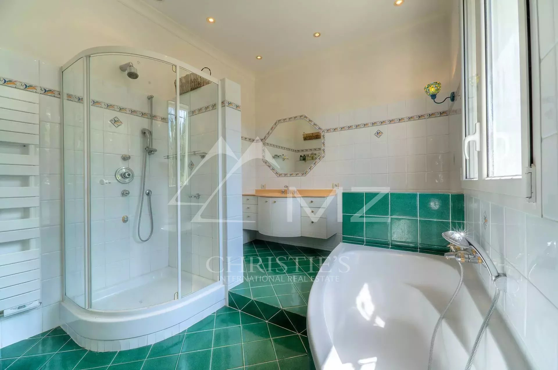Situated in a lush green setting of approx. 7 acres, within walking distance from shops, this rare and charming domain enjoys total peace and serenity. A 5 bedroom house of approx. 250 sqm is in a very good condition and enjoys a pleasant pool area. A few minutes from Mougins and only 20 minutes' drive from La Croisette and its fancy beaches.