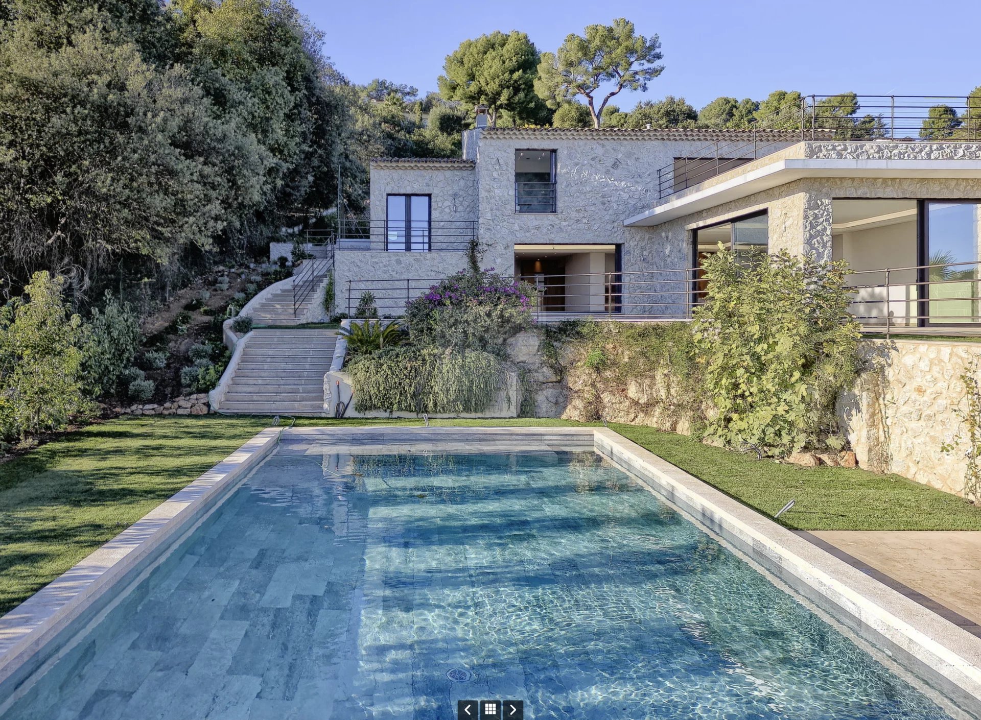 Located in a dominant position, in a quiet and closed domain, this property completely renovated with quality materials benefits from a superb panoramic view onto the sea, the village of Saint-Paul-de-Vence and the Cap d'Antibes.