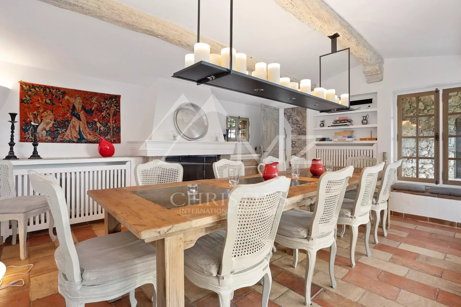 Sole agent. In total calm, in a dominant position with a fantastic view on the sea and the Cap d'Antibes, this completely renovated Bergerie with a unique atmosphere offers beautiful outdoor living spaces and a flat garden. It is composed of a main villa of approx. 340 smq with 5 bedrooms and generous living spaces, a large independent guest house of approx. 111 sqm with 3 bedrooms, ideal for guests and an annex of approx. 84 sqm to be renovated. In addition, there is a large heated swimming pool (17 x 6), a pool-house, a petanque court, a summer kitchen, all facing south-west to enjoy all day long. Closed garage for two cars and numerous parking spaces.