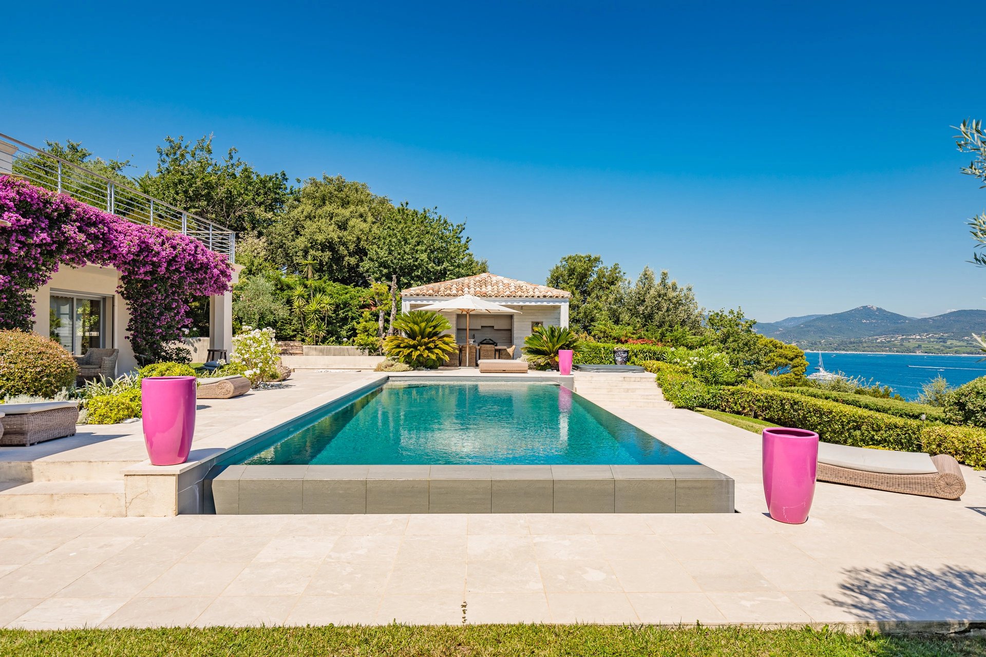 Spacious villa offering six bedrooms and bathrooms perched on top of a sunny hill overlooking the bay of Saint-Tropez, located in a residential area just minutes from the village of Saint-Tropez, it enjoys an incredible view of the Bay.