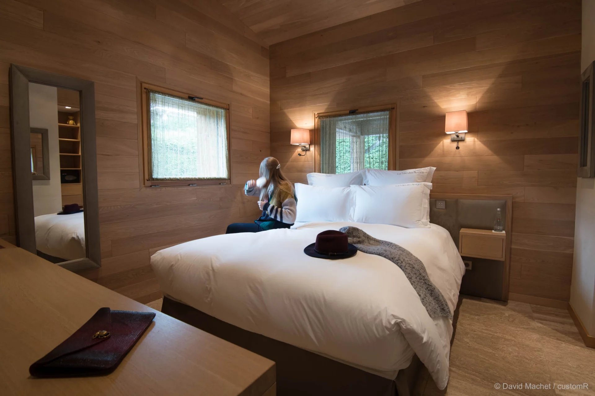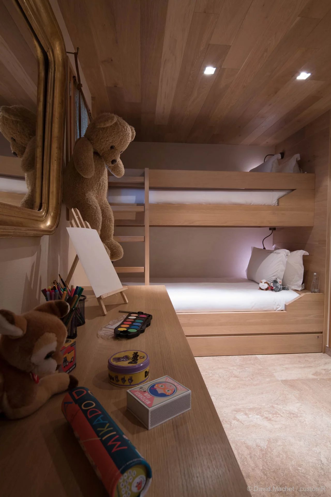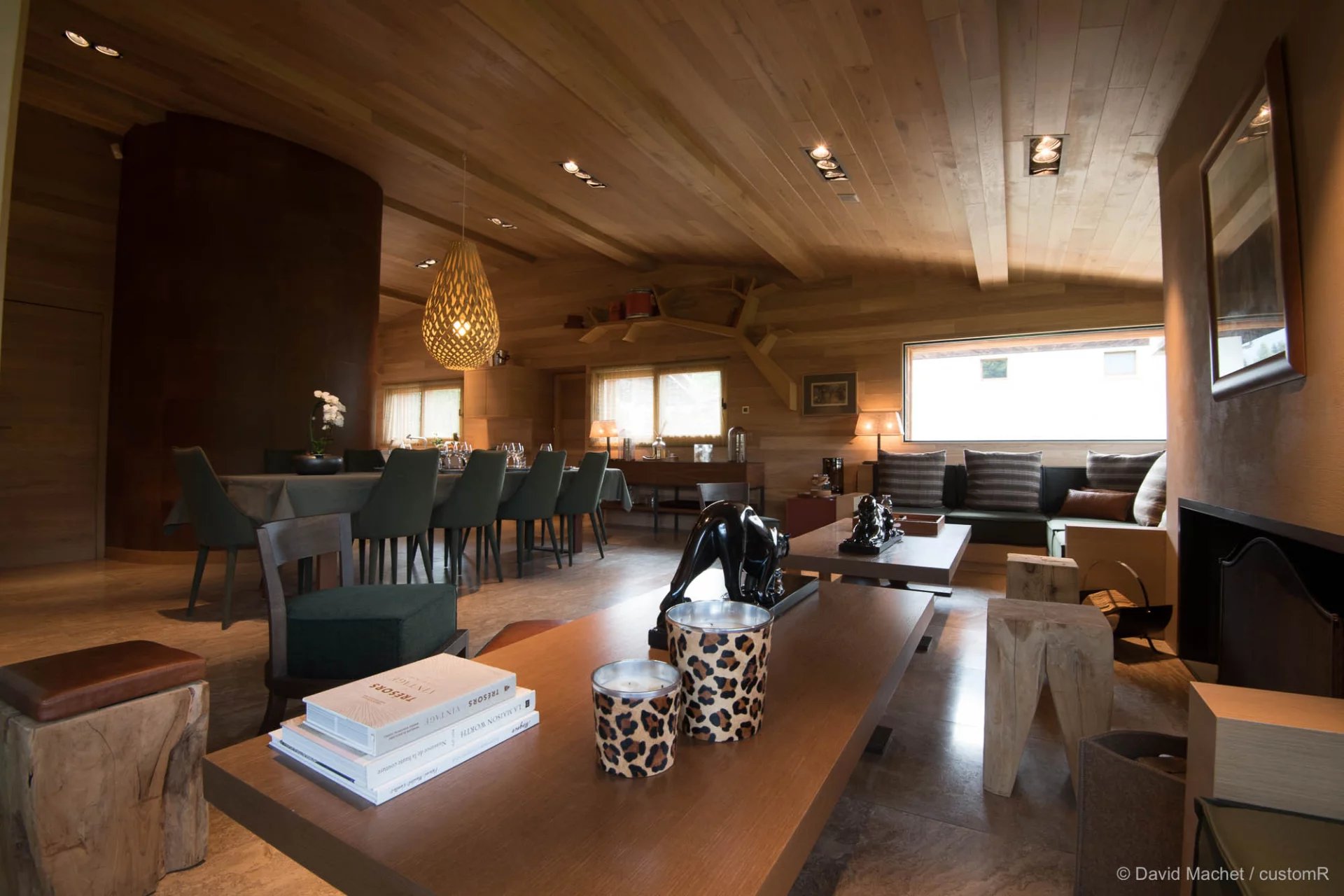This 200 m² family chalet is equipped to accommodate 8 adults and 4 children in four suites and a four-bed dormitory suite. Its strategic location, close to the village centre and the slopes, means you can combine sporting pleasure with after-ski chic.