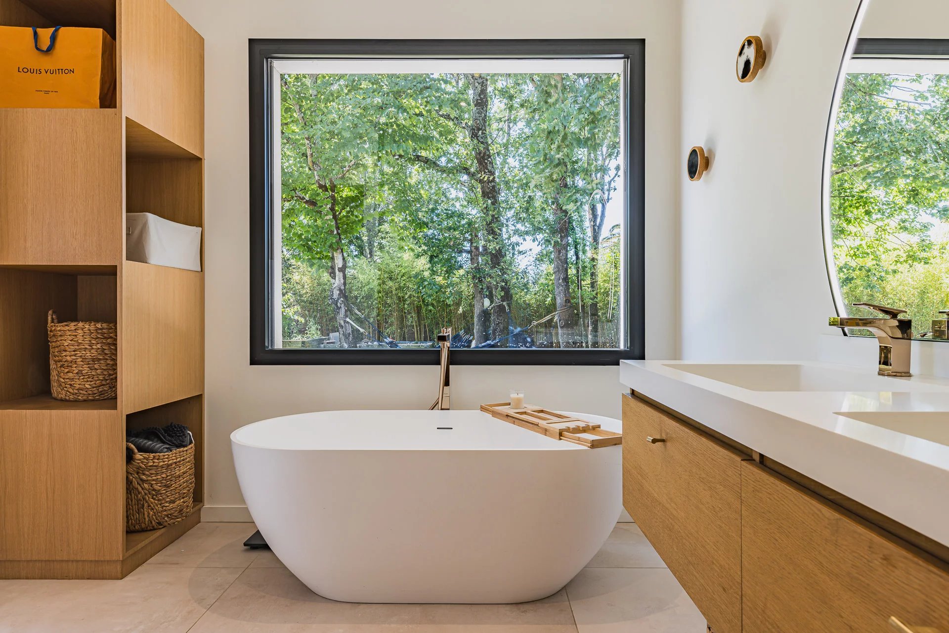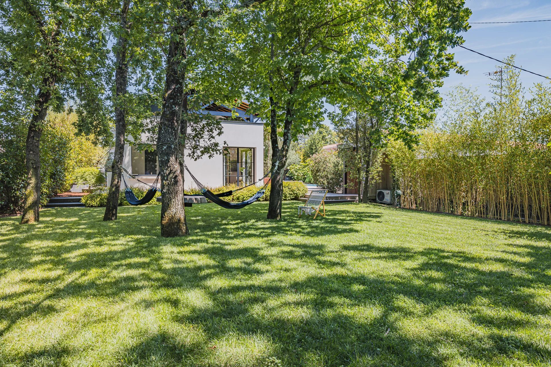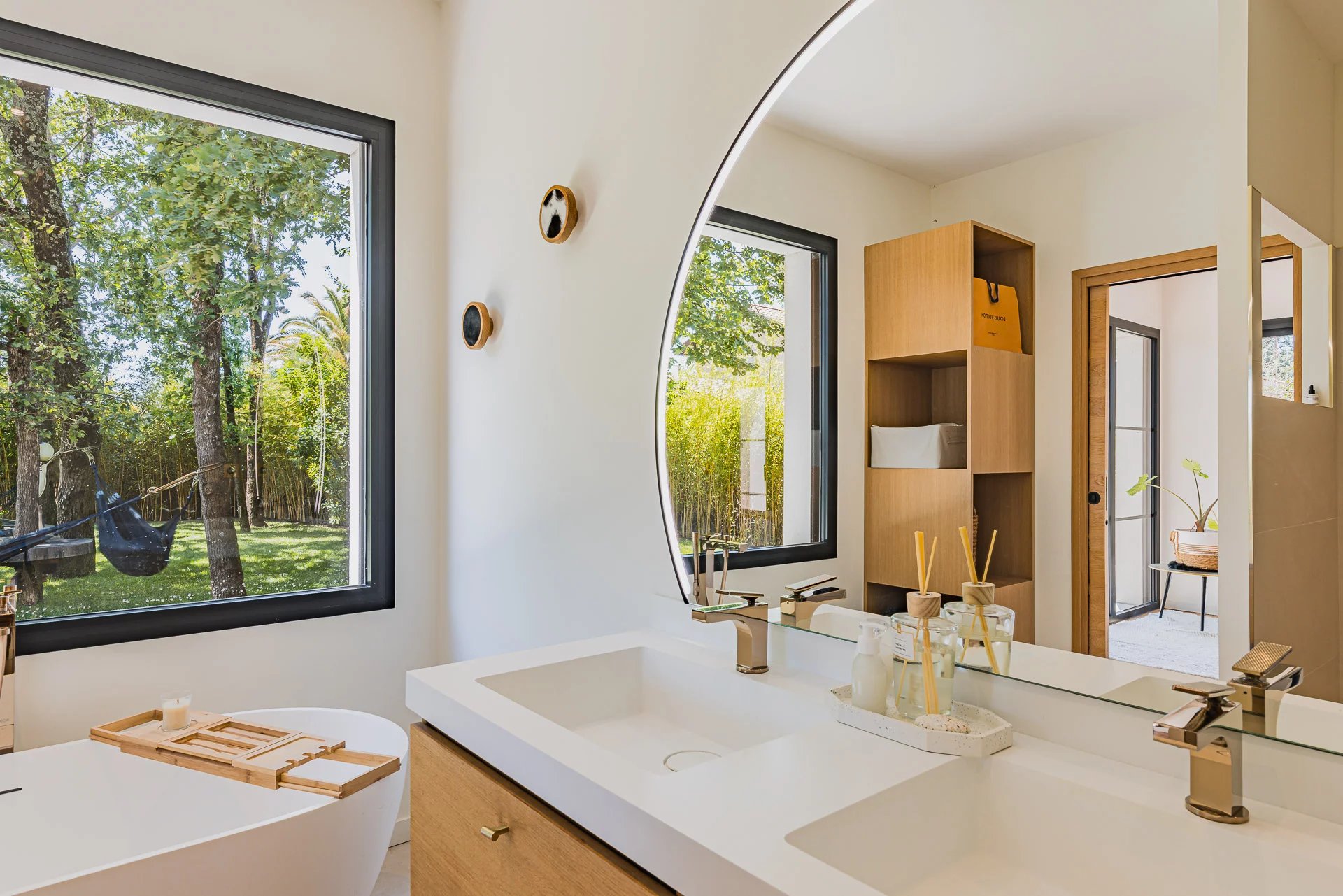 Technical comfort is absolute: the house is fully air-conditioned with a discreet, reversible system. Every detail has been carefully chosen — from smart home controls to door handles, from light switches to wall finishes, each component reveals a quiet commitment to quality. Even in the bathrooms, subtle features reflect the same concern for comfort and use.