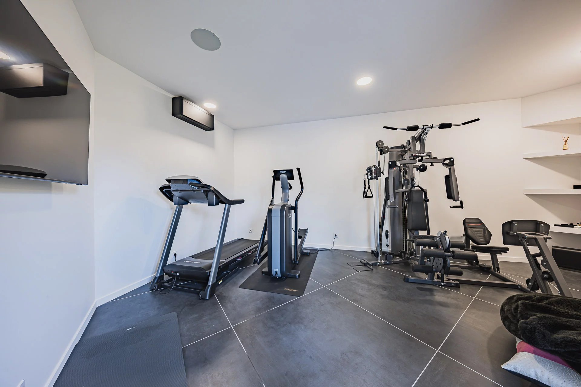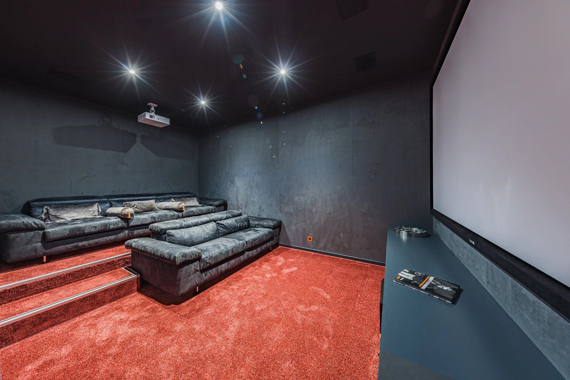 Annex spaces maintain the same standard: a dedicated cinema room, a fully equipped gym, a study, a two-car garage with space for bicycles or motorcycles, and additional outdoor parking.