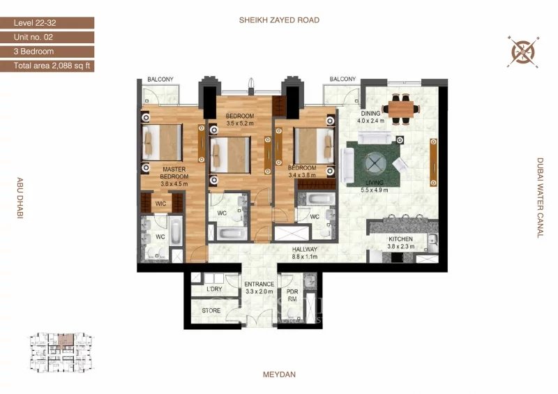 - Booking amount of AED 1,373,749/- (USD 373,809/-), which is 35% of the selling price.