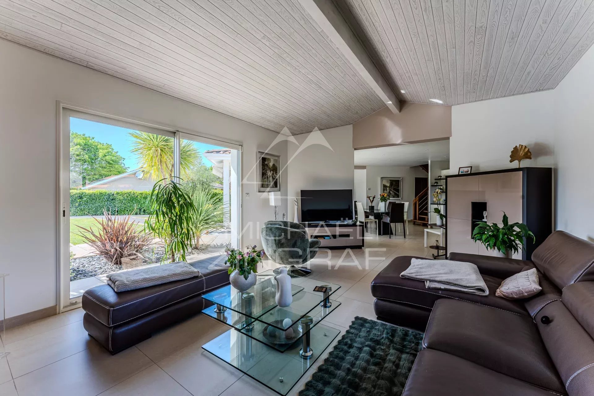 Ideally located just 5 minutes from shops, schools, train station and motorways, this villa combines all the criteria for comfortable living in the heart of the Arcachon Basin, in a preserved environment without compromising on accessibility.