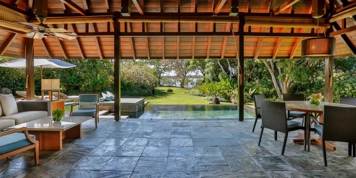 The 288 sqm villa has three en-suite bedrooms as well as a living and dining room with tropical design touches that opens onto a beautiful covered terrace adjoining the infinity pool. The perfect spot to enjoy outdoor living in the tropics.