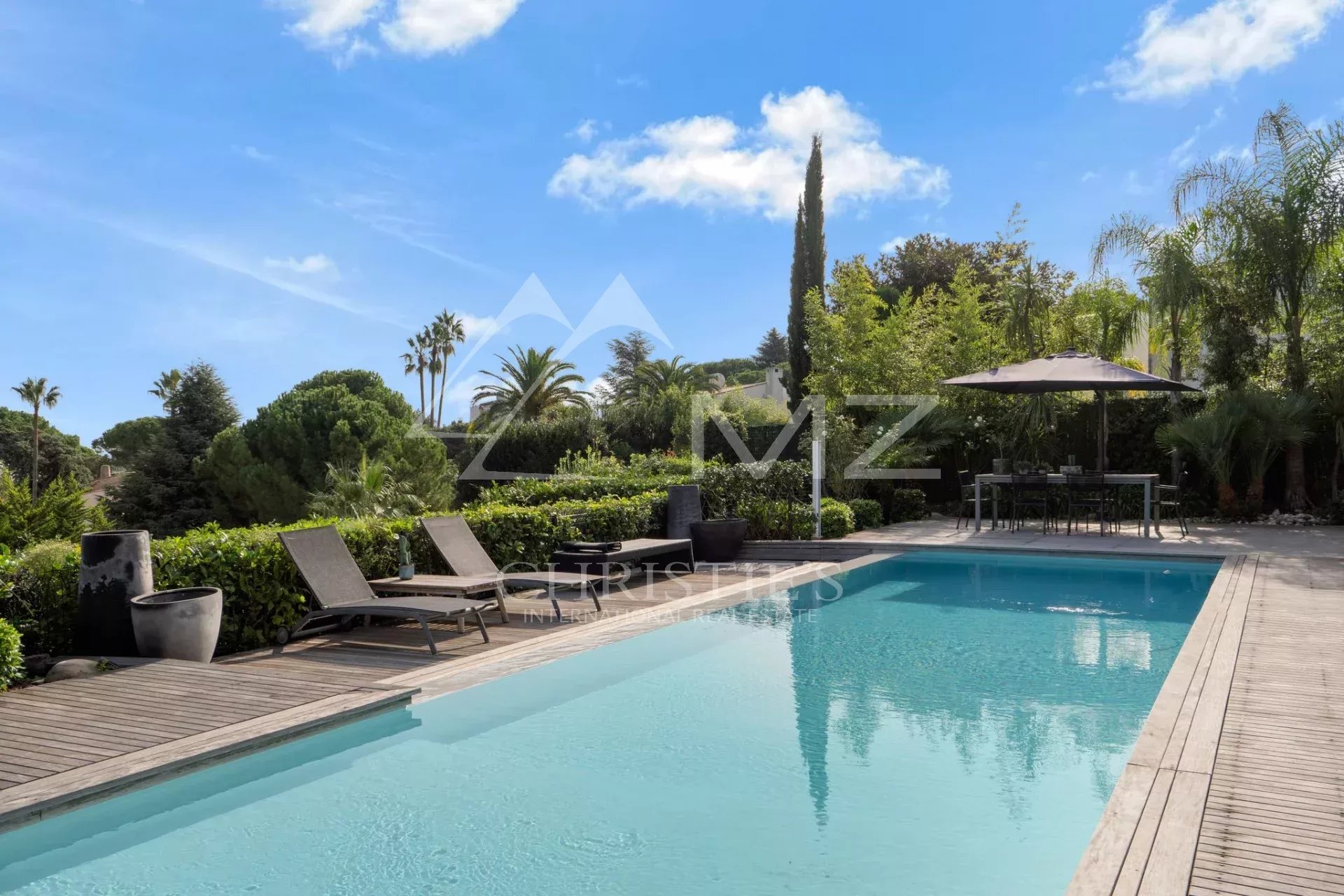 Nestled in the heart of the renowned private estate of Hauts de Vaugrenier in Villeneuve-Loubet, this stunning villa offers an exclusive and secure lifestyle, surrounded by greenery and absolute tranquility. The estate boasts premium amenities, including tennis courts, an Olympic-sized swimming pool, and a convenient shopping center. Located just minutes from the Mediterranean beaches, you will enjoy breathtaking views of the sea and the surrounding hills. This unique property combines comfort, elegance, and functionality in a privileged environment.