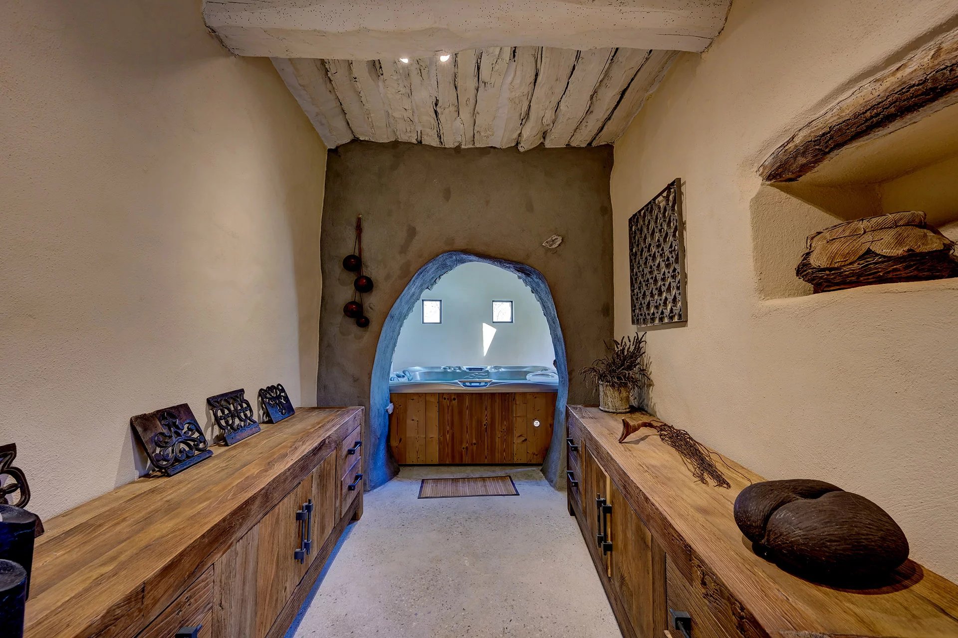 On the ground floor, the restored mill, with its vaulted rooms, leads to a relaxation area equipped with a spa, perfect for unwinding after a day exploring the natural wonders of the surroundings. A summer kitchen, designed as an orangery, harmoniously completes this authentic part of the property.