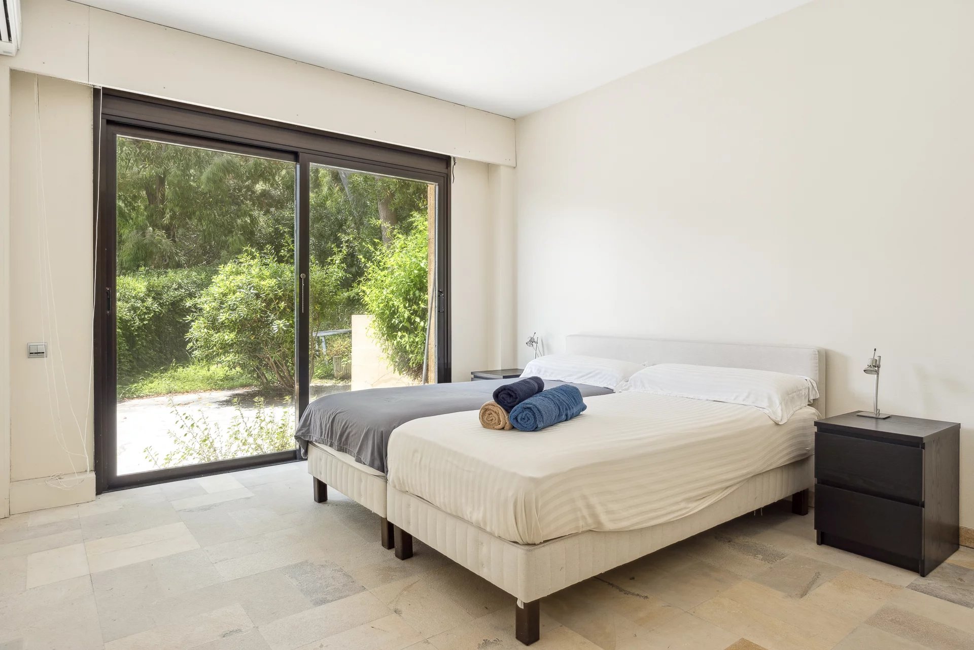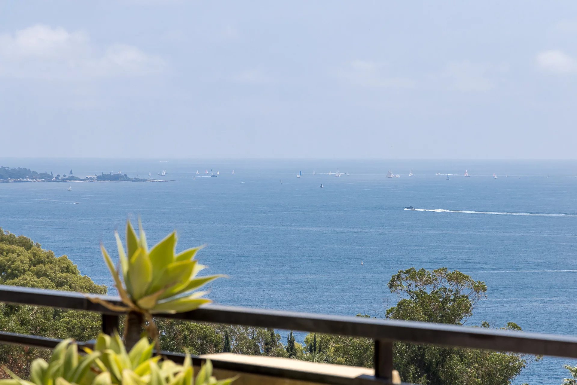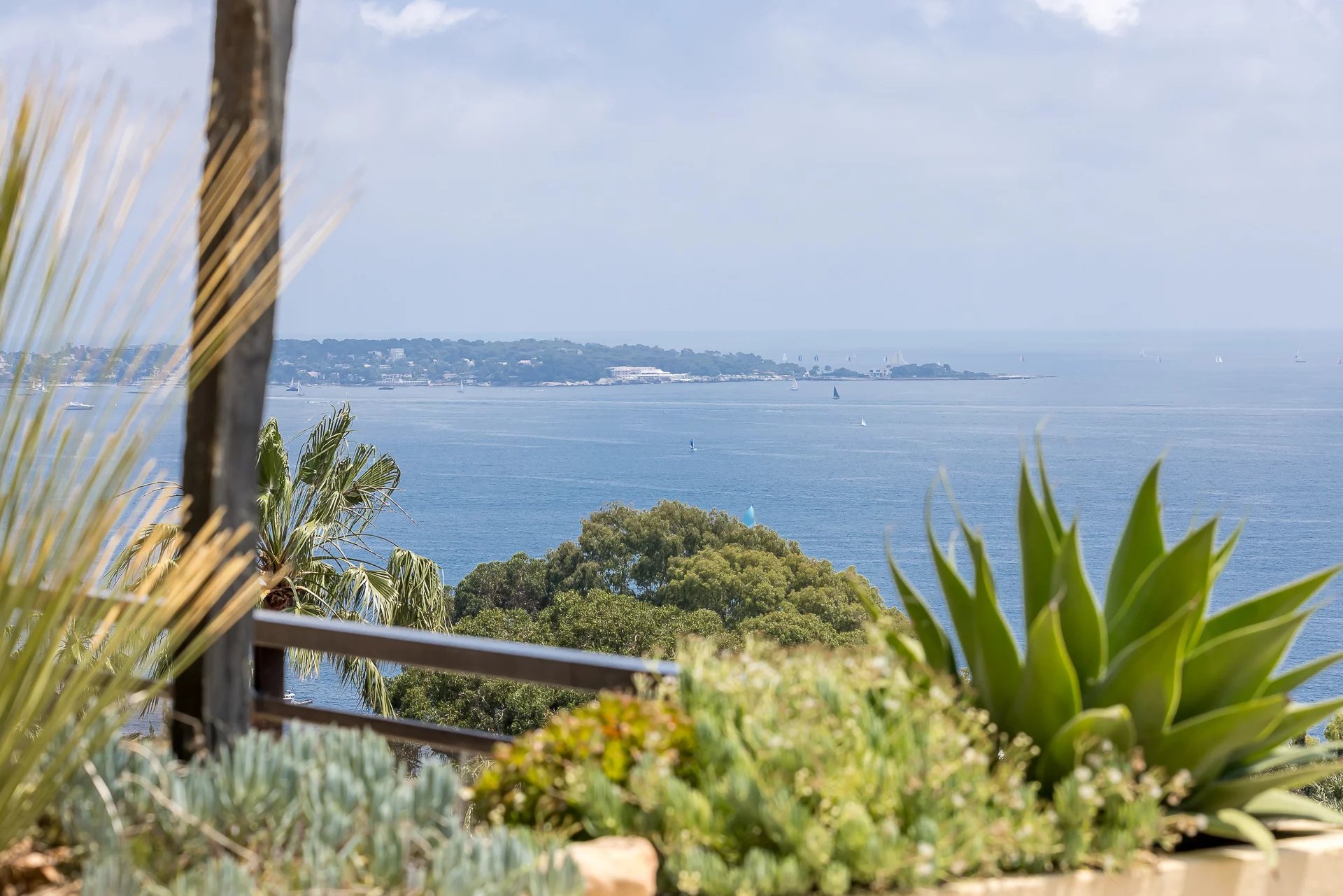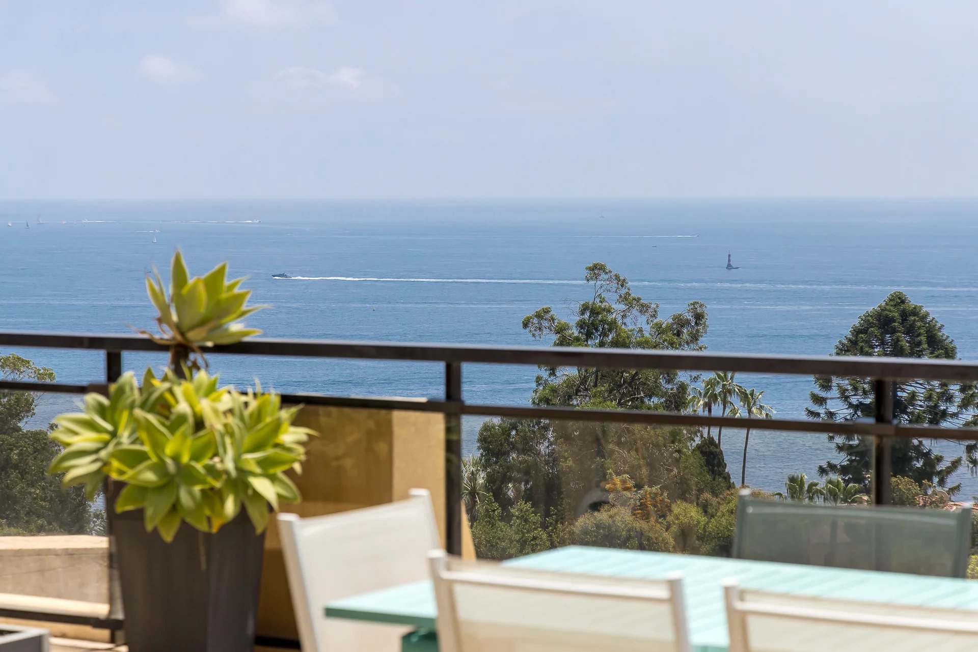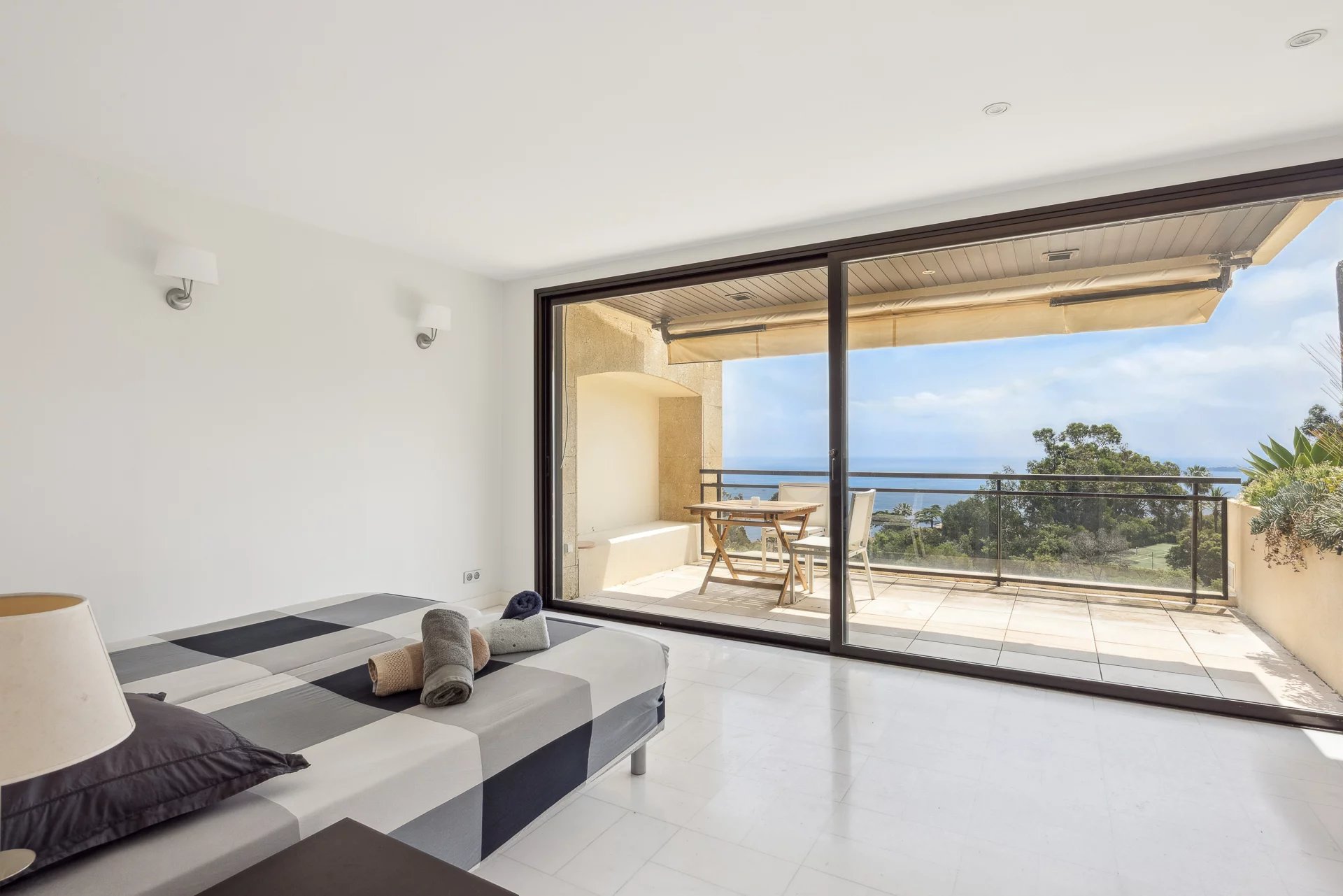 This exceptional property stands out for its contemporary style and excellent condition. The spacious 70 m² living-dining room opens onto a terrace with breathtaking panoramic views of the Mediterranean Sea and the Lérins Islands, creating an idyllic living environment.