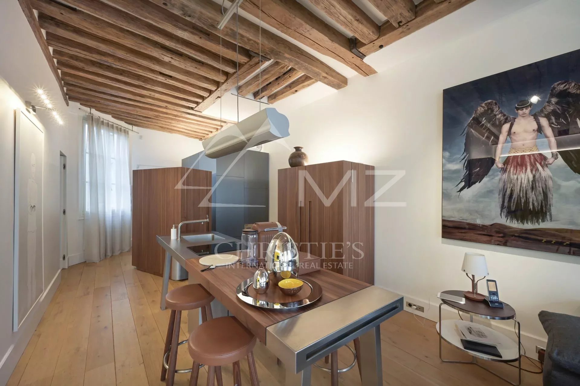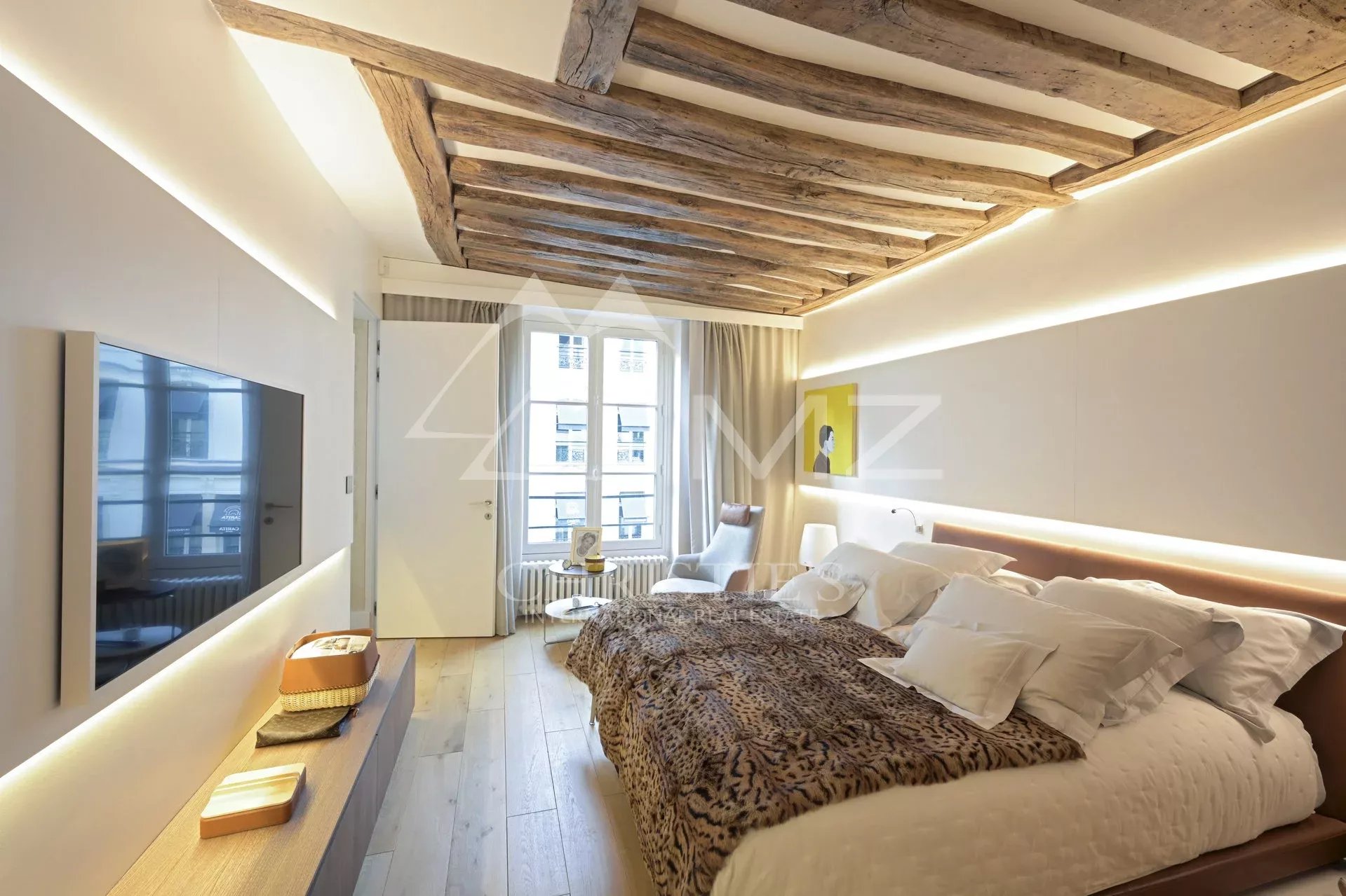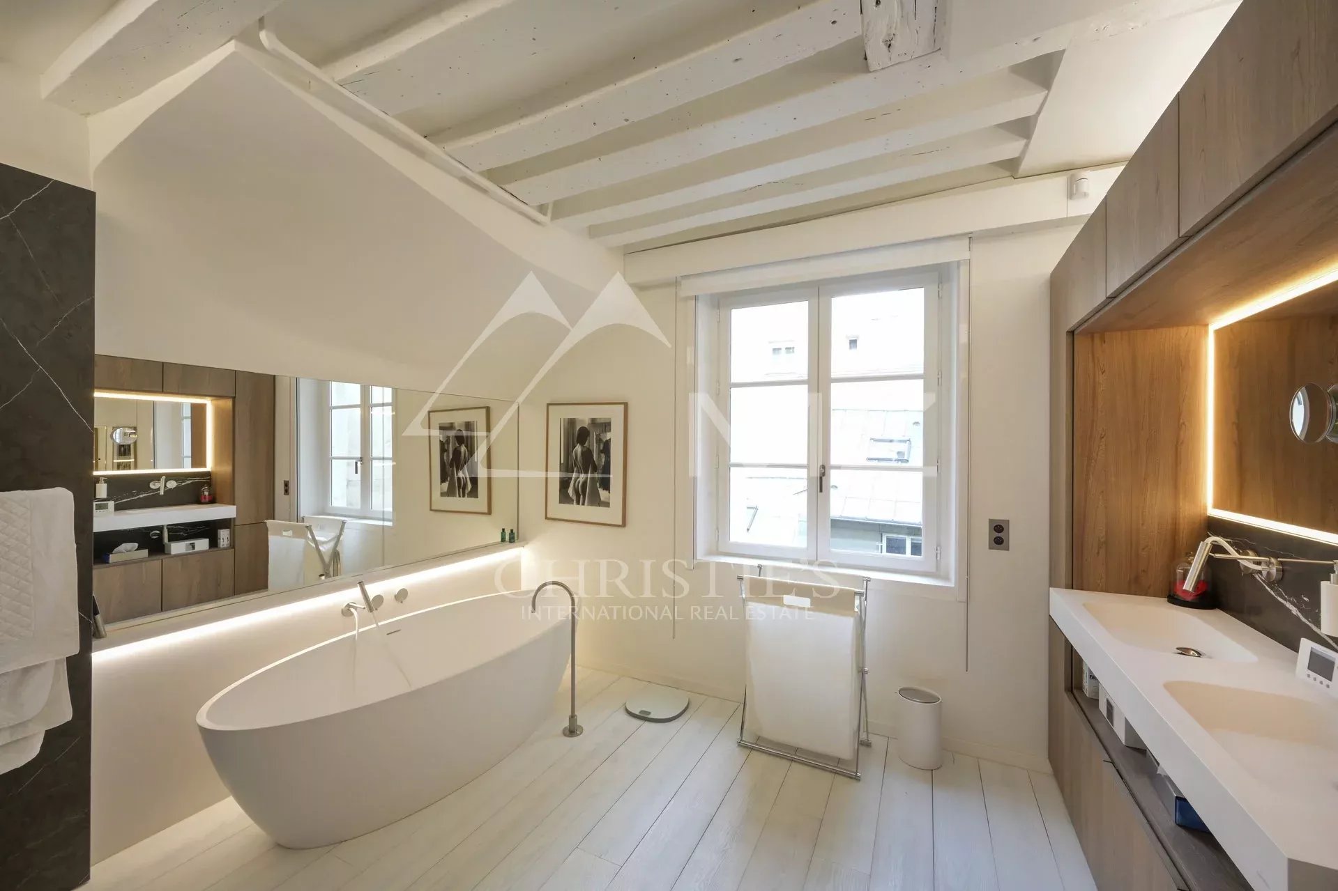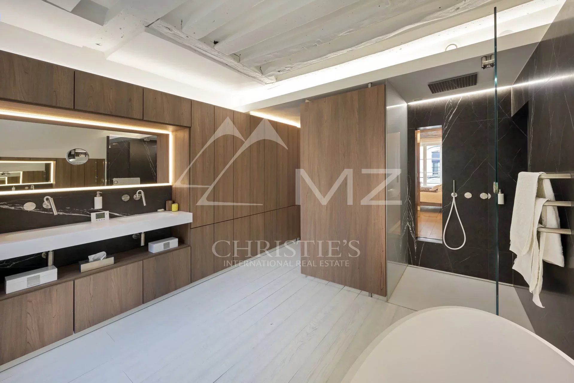 This beautiful apartment offers a large double living room (54 m2) with an open-plan Bulthaup kitchen; a spacious master suite (25 m2) with a large dressing room, bathroom, shower room and toilet; and a guest suite leading onto the courtyard.