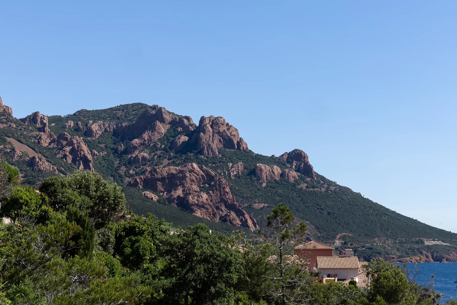 In Anthéor, in an exceptional setting between the red rocks and unspoilt vegetation of the Massif de l'Estérel and the Mediterranean, this family property boasts incomparable sea views, just a few steps from the beach.