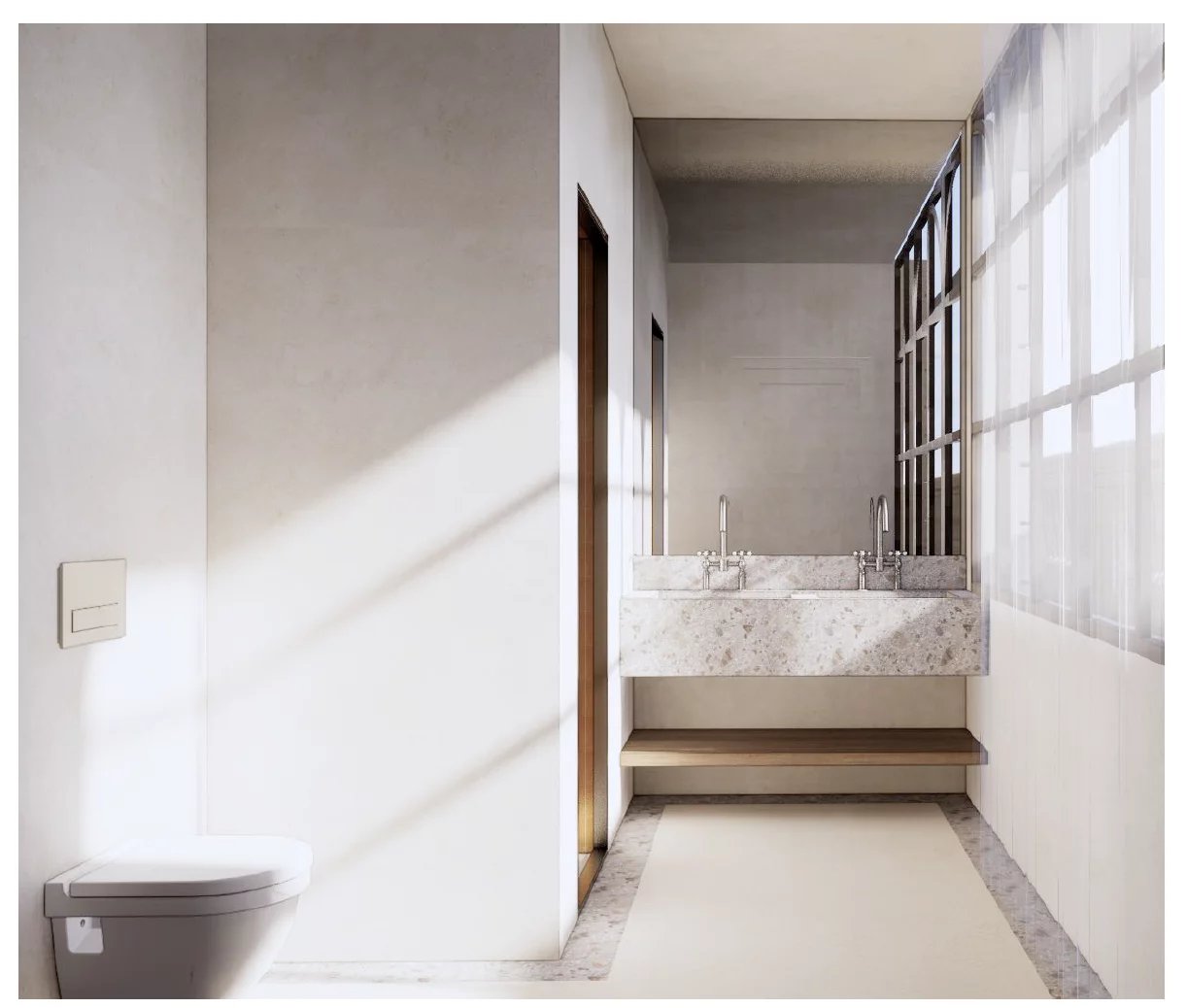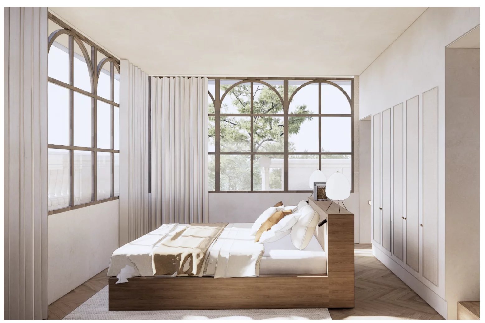The penthouse has been designed with an elegant modernity, combining noble materials and clean lines. The project was led by Atelier Delphine Carrère, who skillfully balanced respect for the architectural heritage with contemporary requirements. The result is an exceptional living environment, where luxury, comfort, and incomparable panoramic views come together.